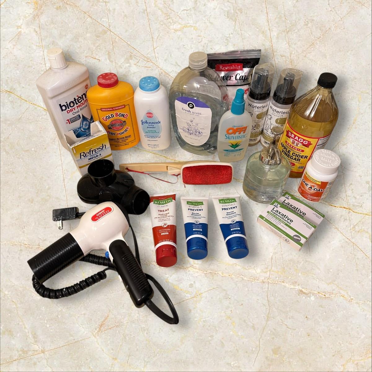 Assorted Bathroom Personal Care Items & Blow Dryer (tested/works) - all are at least half full and not out of date