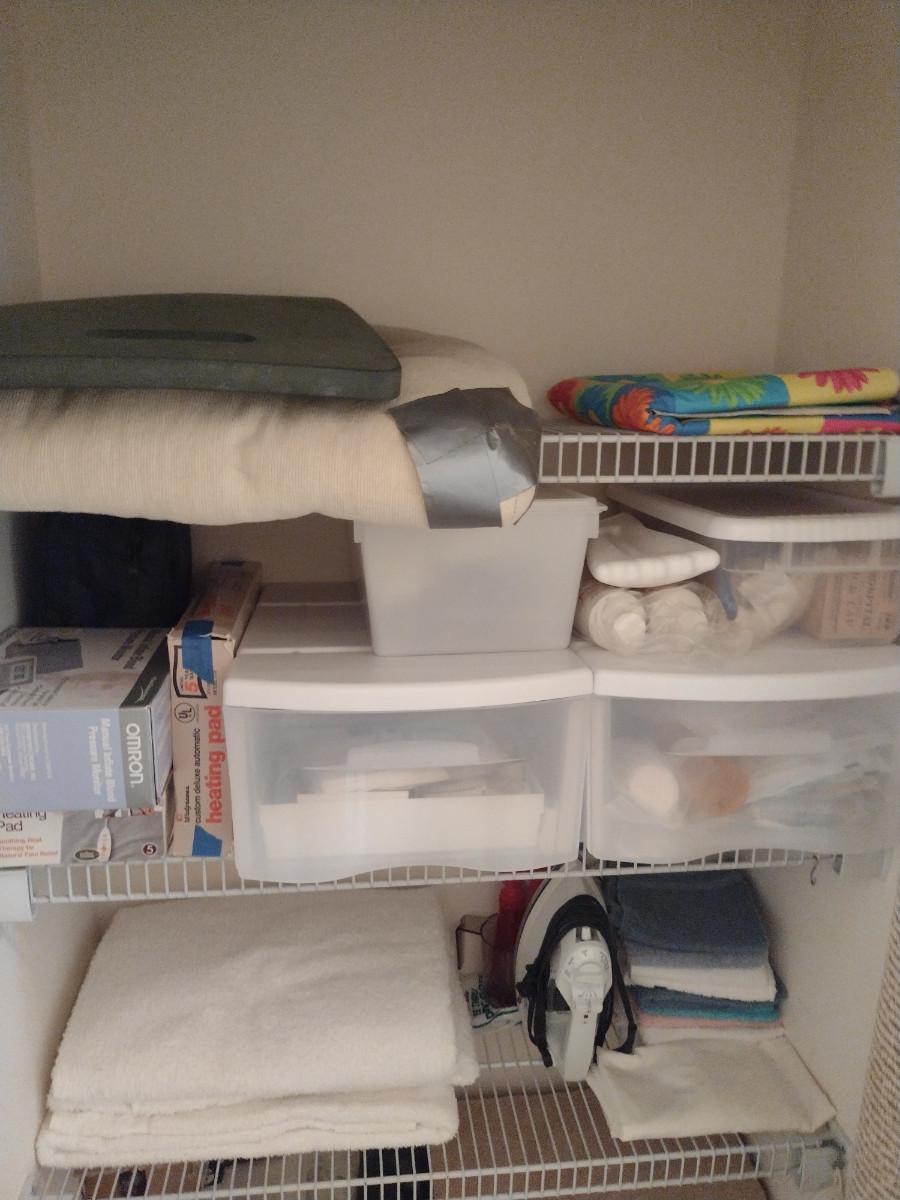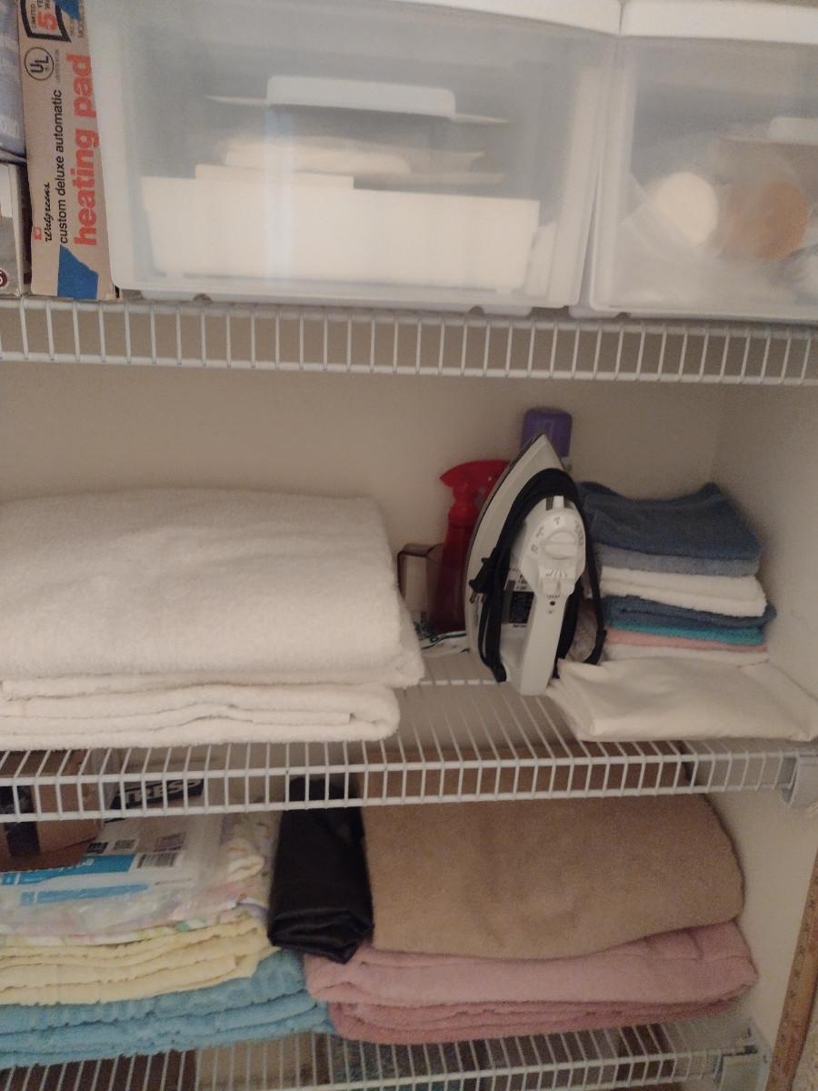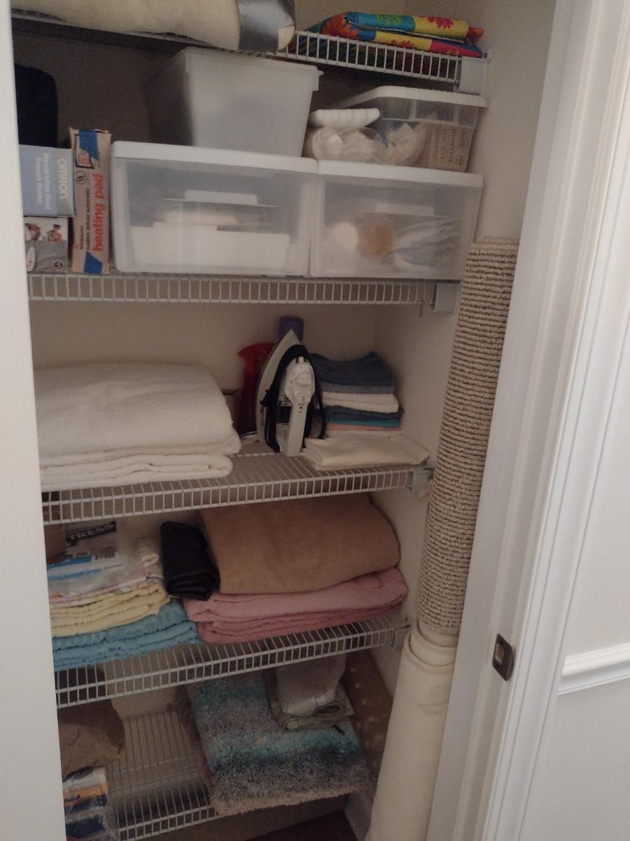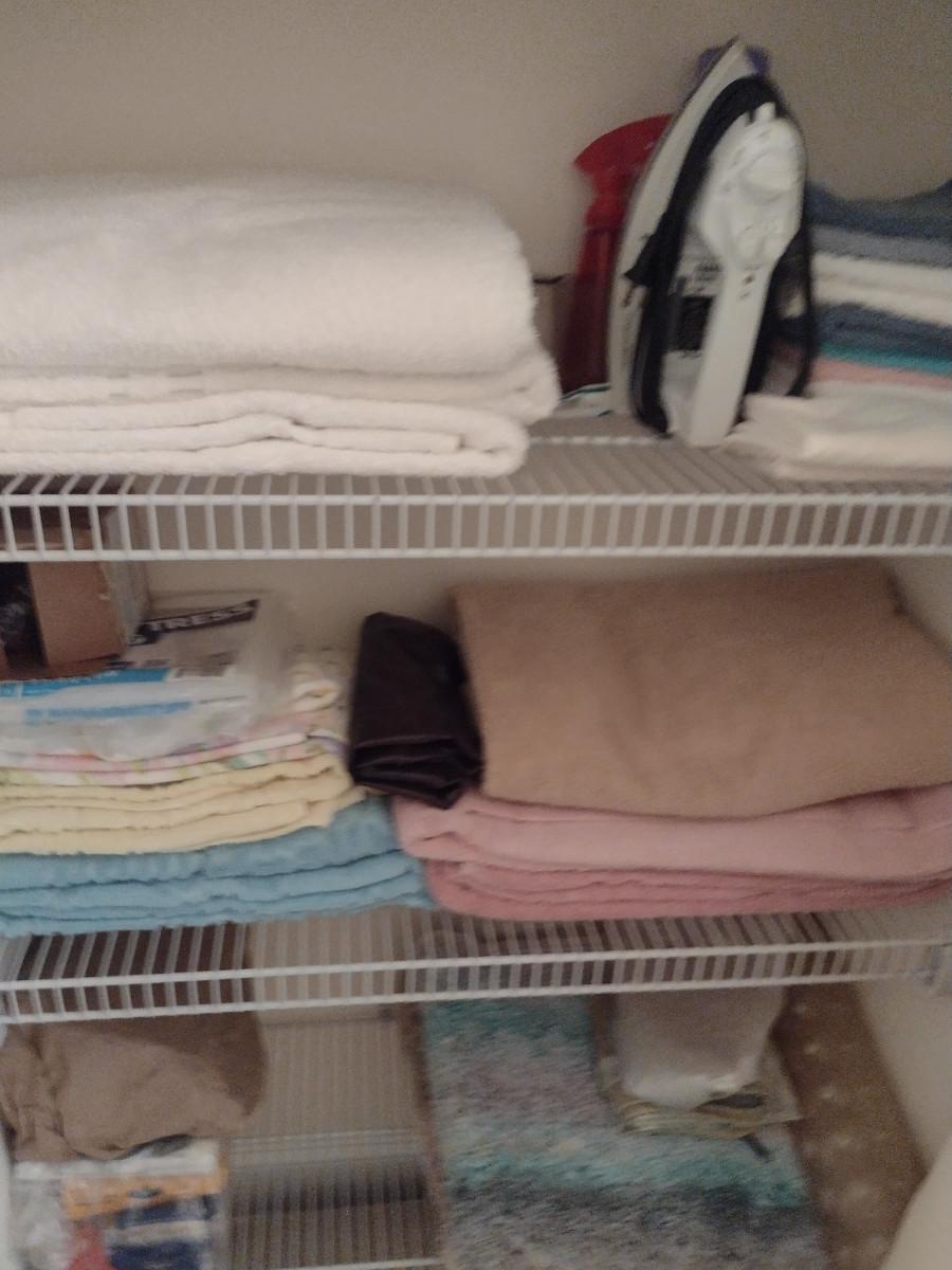 Assorted Bedding, Linens, and Contents of Closet. Please see all pictures for selection.