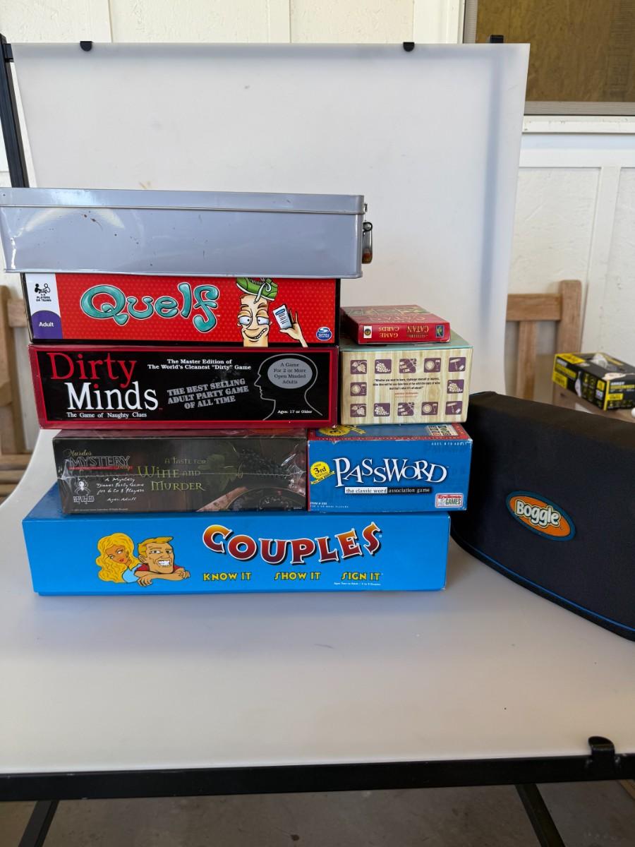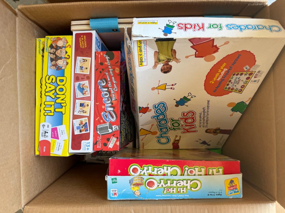 Large bundle of family and kids’ board games including Codenames, Catan Junior, No Stress Chess, Pictionary Jr, and more. Gently used, some new in box.