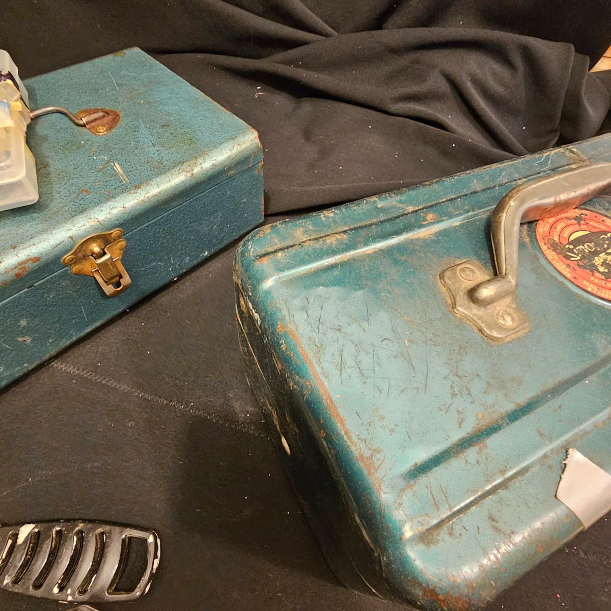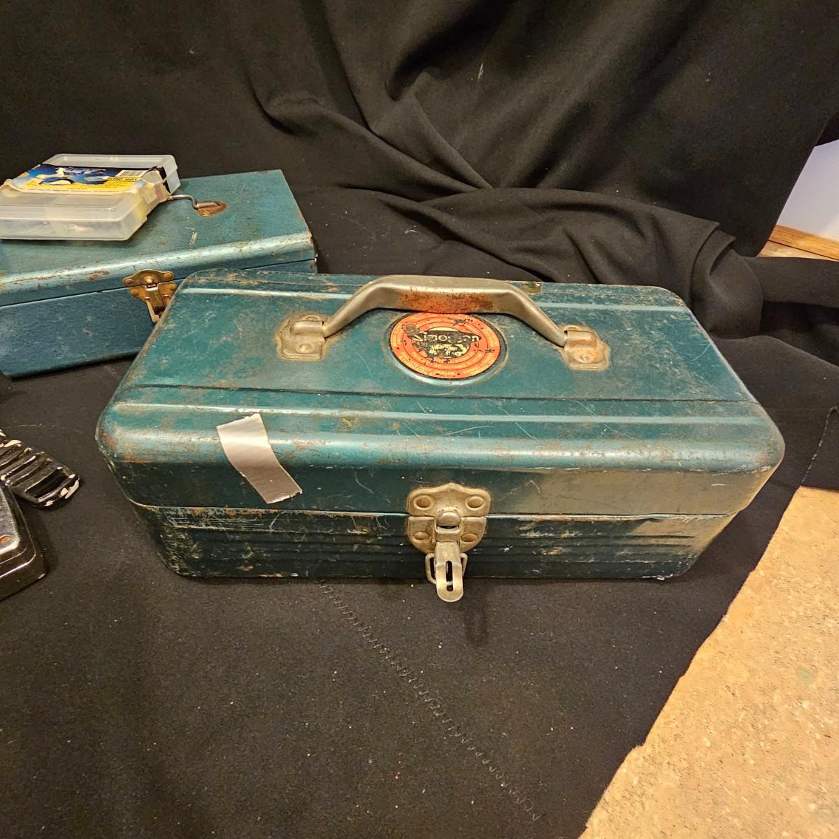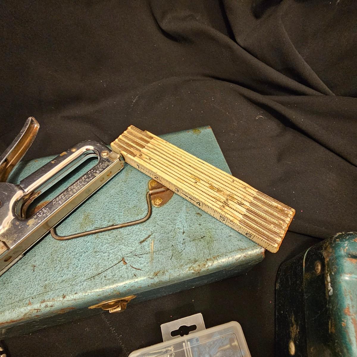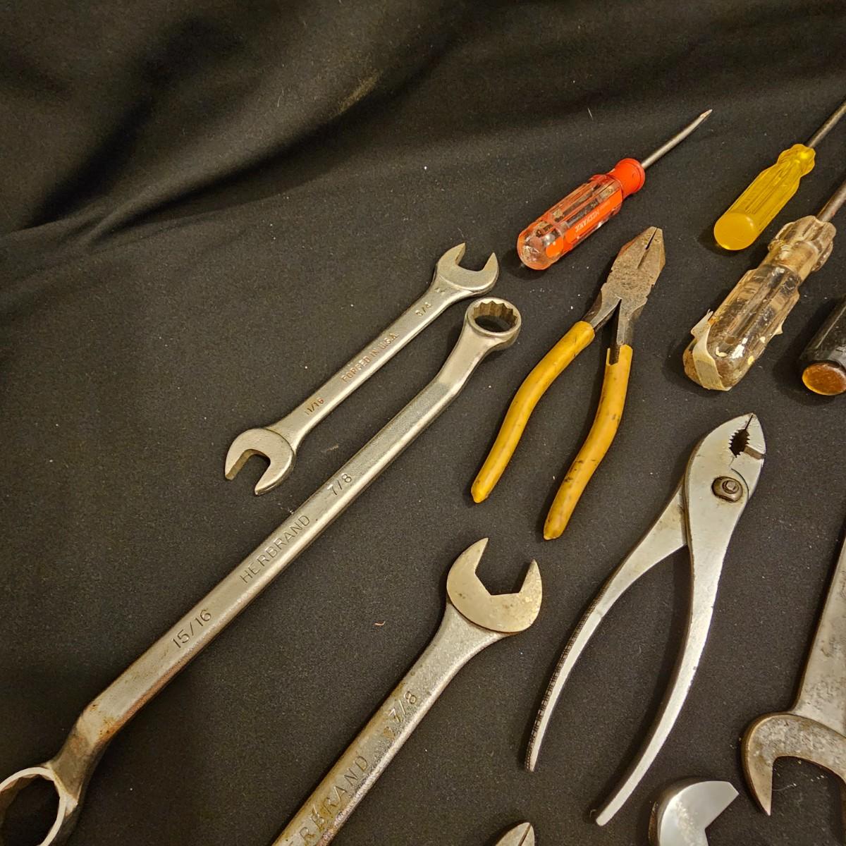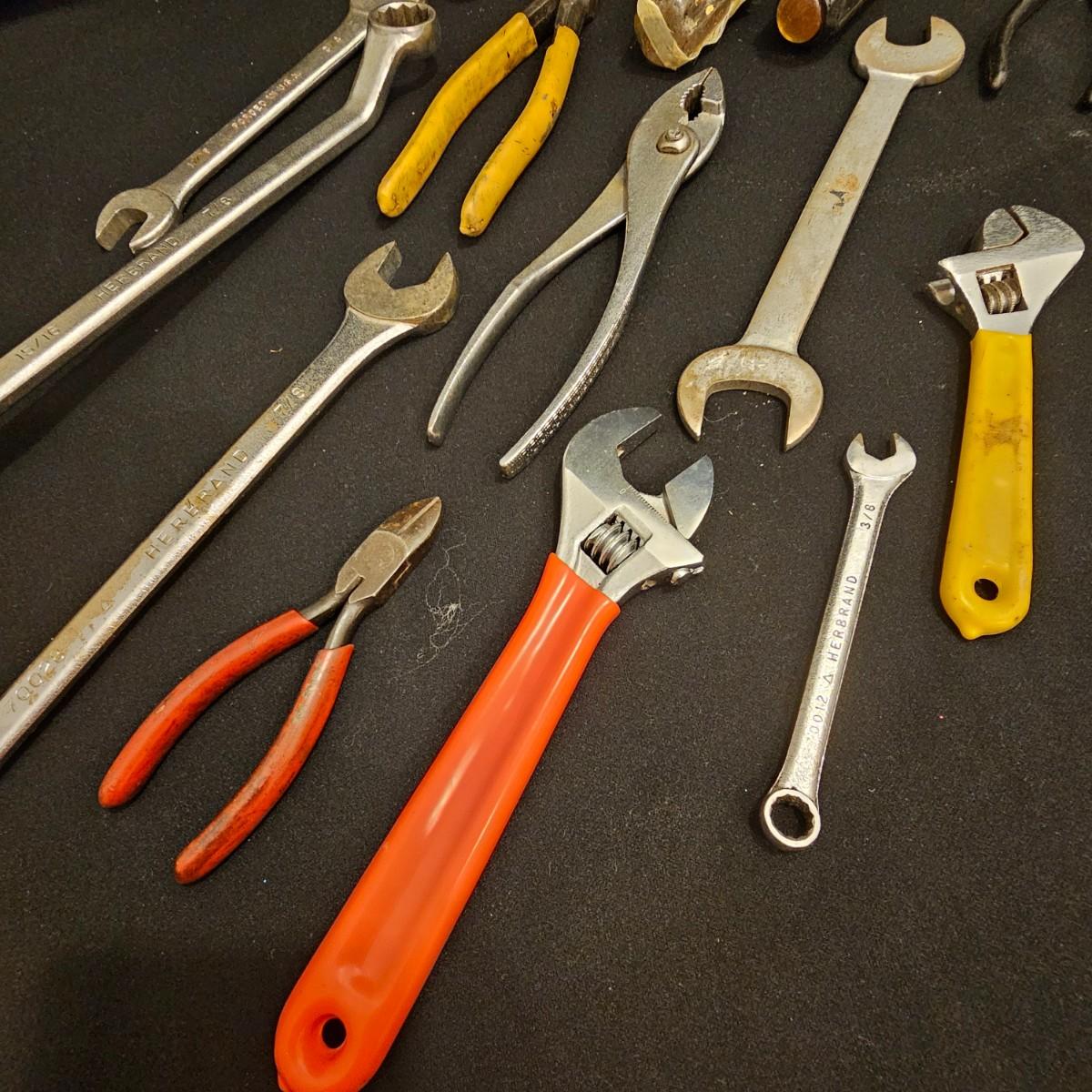 Metal toolbox, small assorted handtools, wrenches, screwdrivers and more. Drill bits, pliers, hacksaw, 24" level. All items used. See photos for details. Local pickup only.