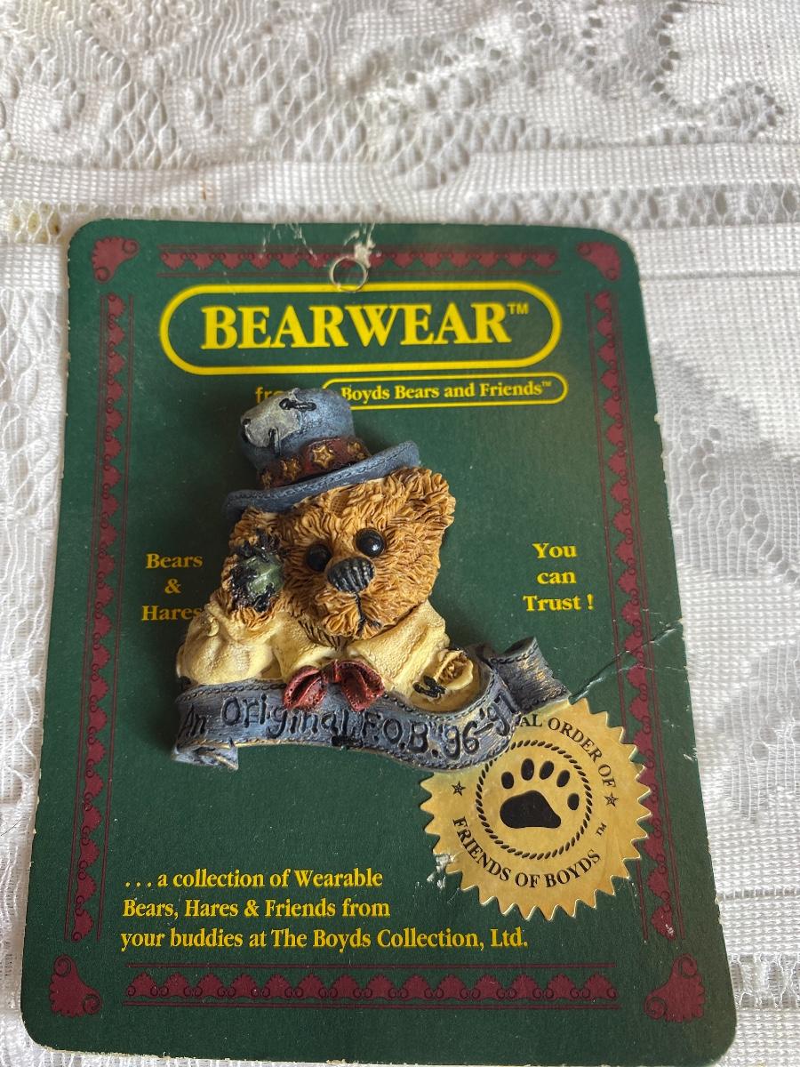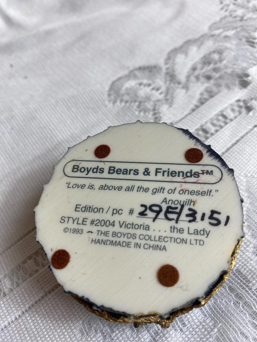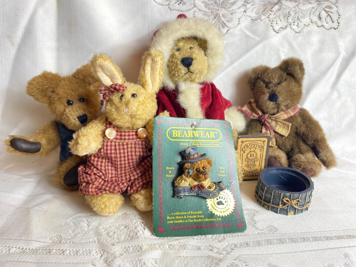 4 bears, a bearwear pin, base for Victoria the lady and ticket card