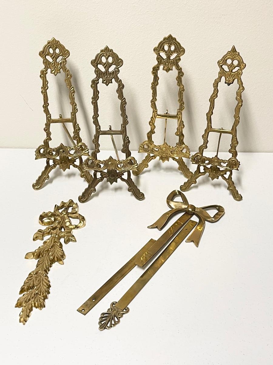 4 Plate/Picture Stands ~ One (1) Decorative Wall Hanging ~ One (1) Brass Bow Picture Hanger = Bow measures 5” x 4.5” see photos