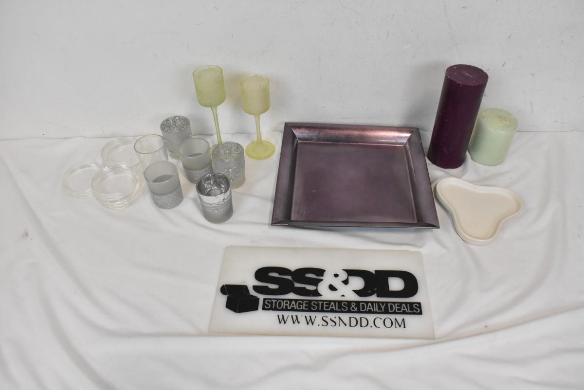 Assorted Candle Holders and Candles, Candles, 6 Small Candle Holders