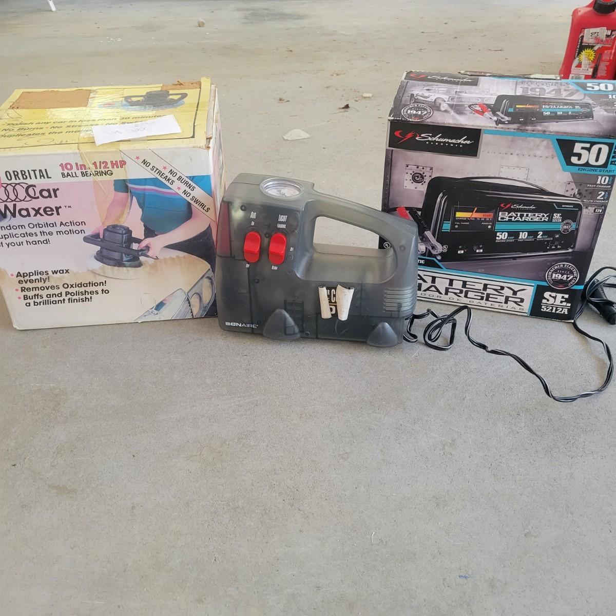 Assorted Car Care Items incl. Compressor, Waxer, Battery Charger, & More (G-JS)