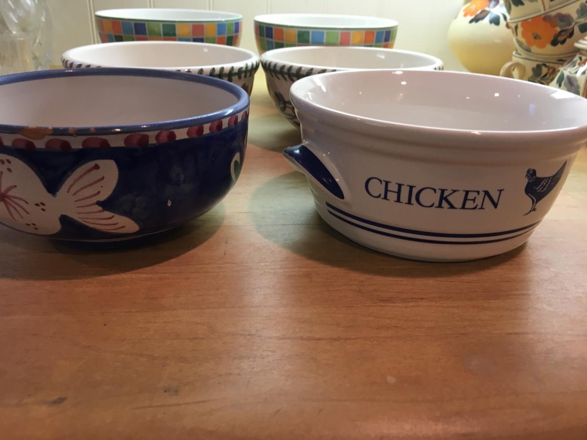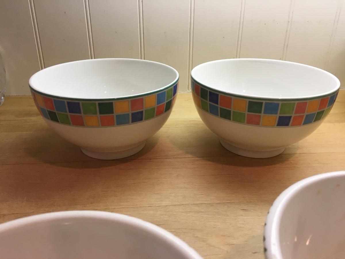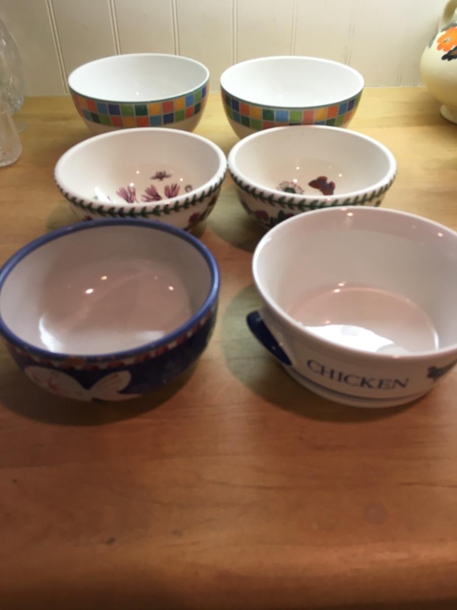 6 bowls, 2 sets that match. Includes Villeroy and Boch.