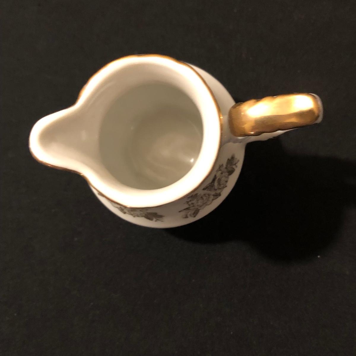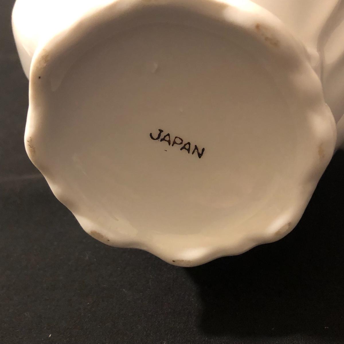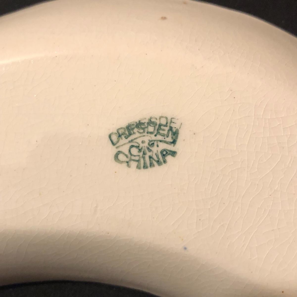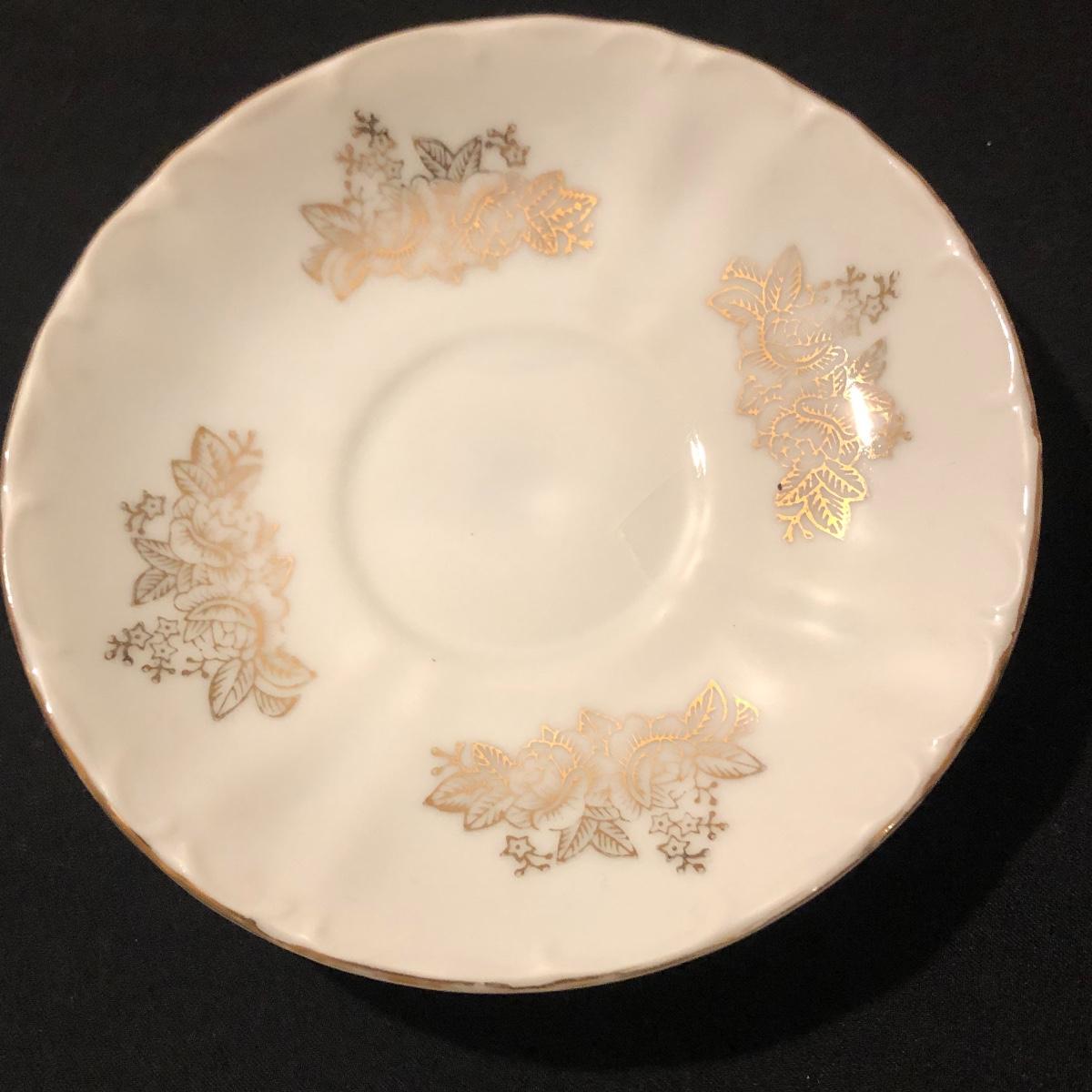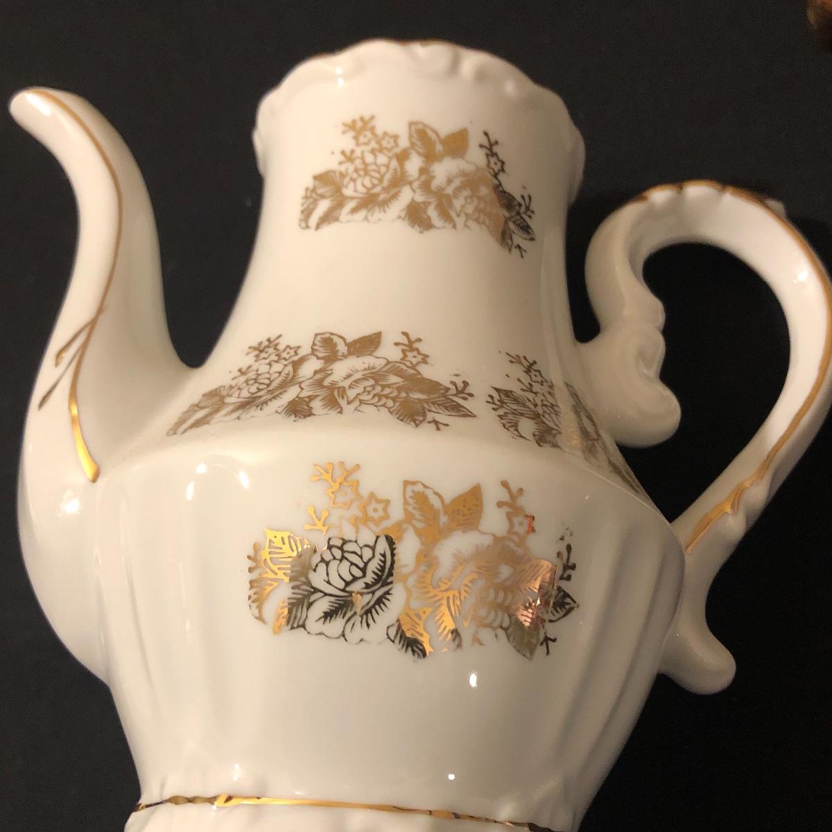 This lot includes three tea cups and two matching saucers, a creamer and teapot from Japan. Note the tea pot is missing its lid. The bone plate is marked “Dresden China.” The rectangle blue plate is from Germany and measures 7.5” x 4.5”. The rose tea pot is from England and measures 9.5” x 4.5” x 7”. Plate stands are not included. Shipping Available.
