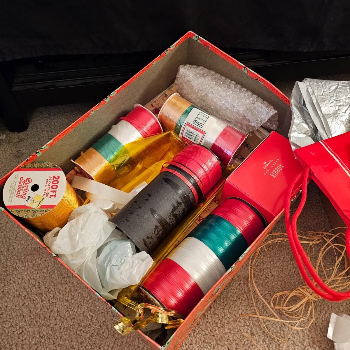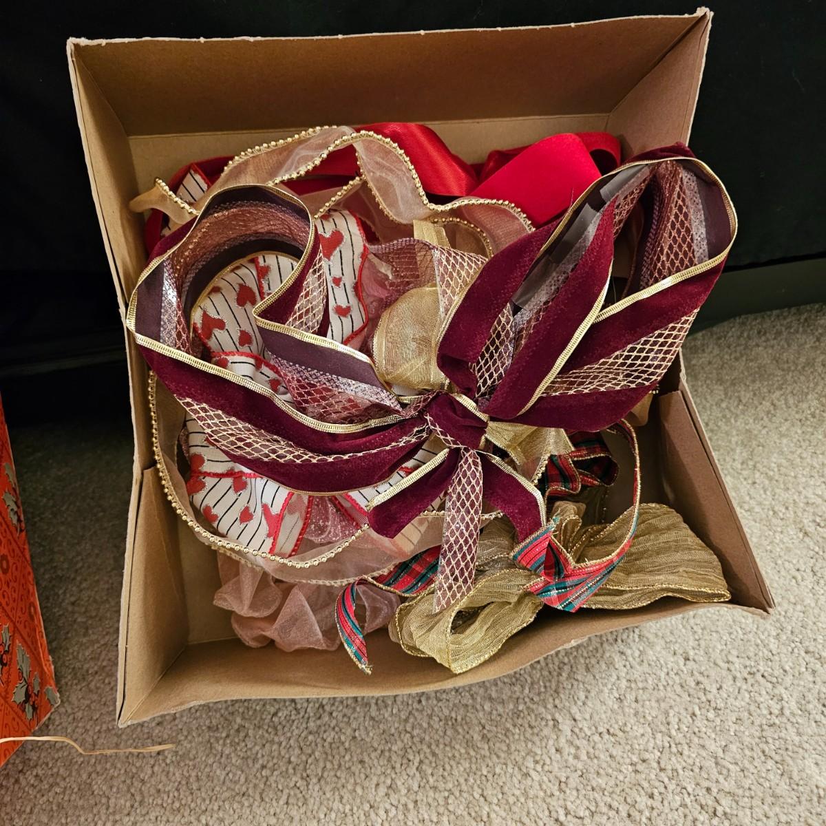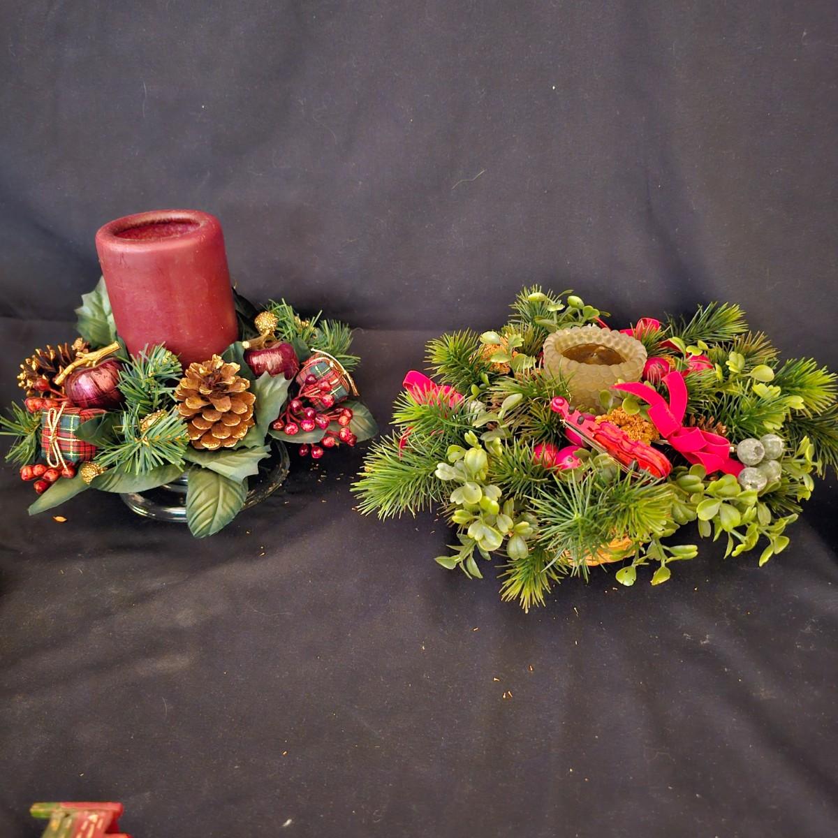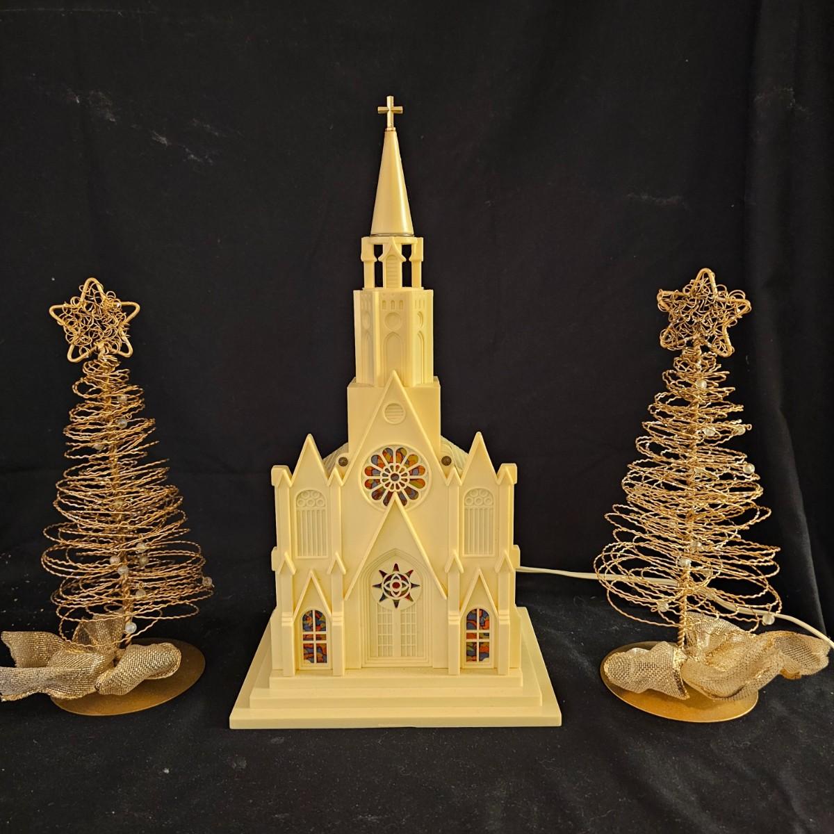 A varied collection of Christmas decor, wrap, ornaments and more. Boxed cards, candles, centerpieces, more. White church powered on when plugged in. Other lights not tested. Includes one fall cornucopia piece, the rest are Christmas. One Limoges porcelain igloo candle holder, one set Goebel nativity figures. See photos for details. Shipping available.