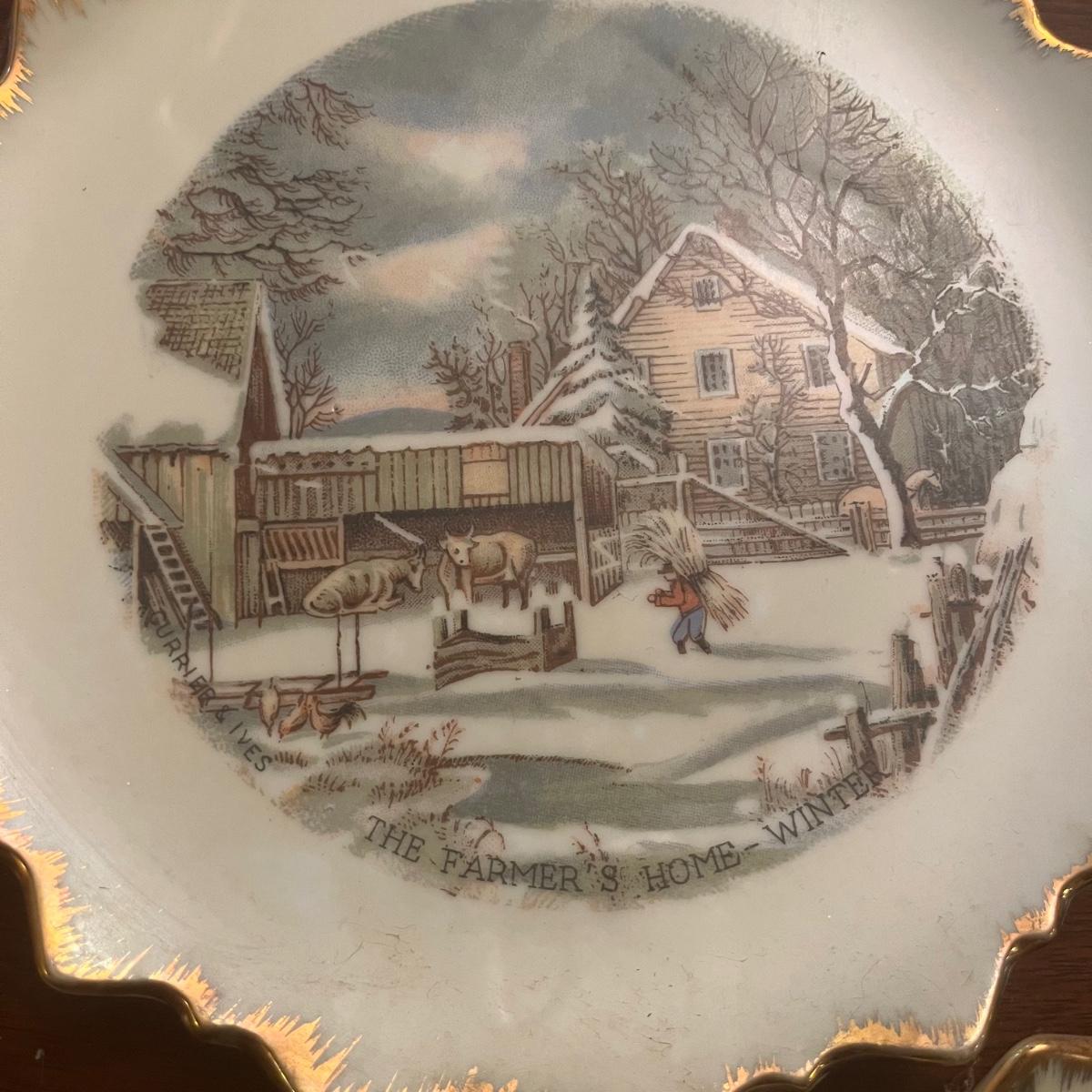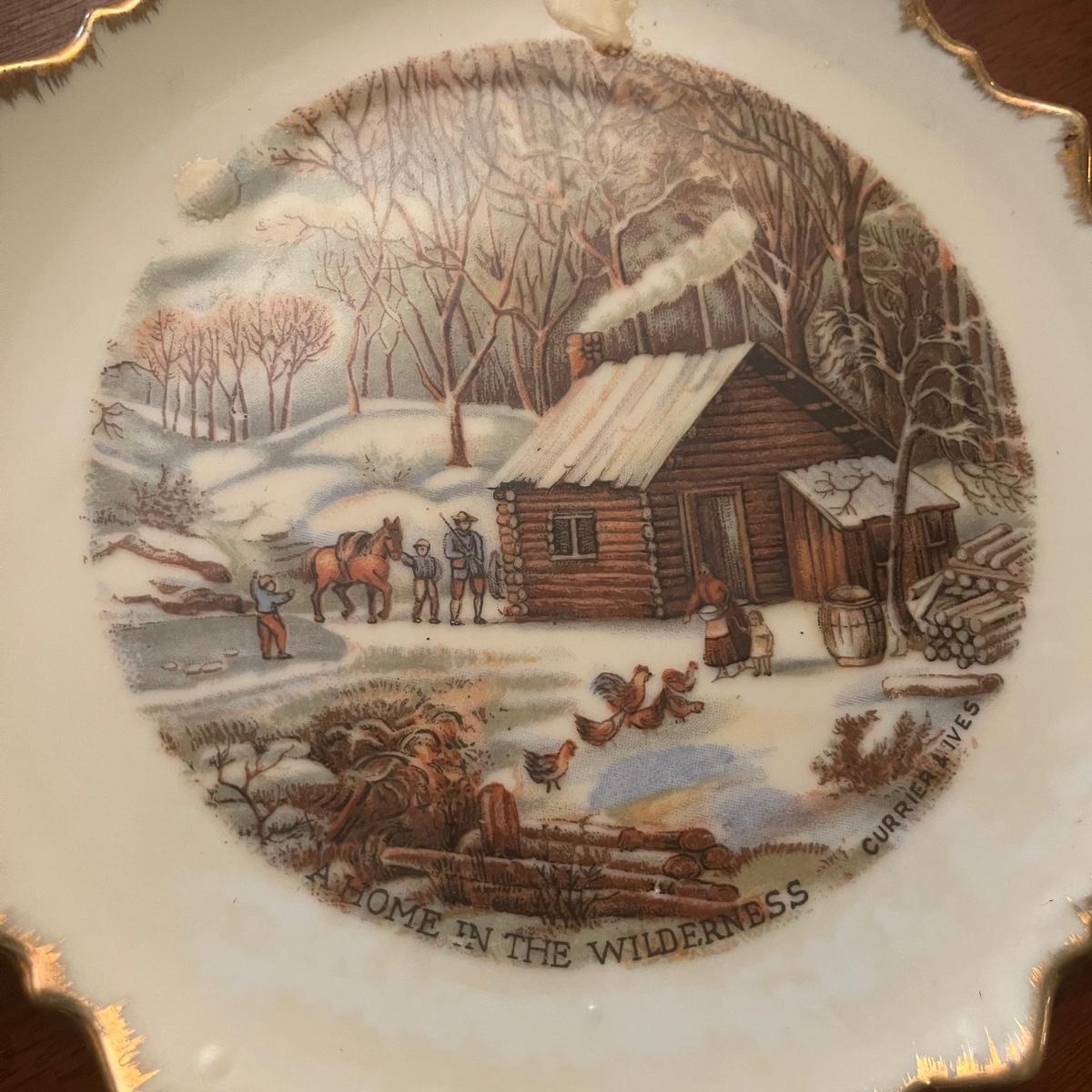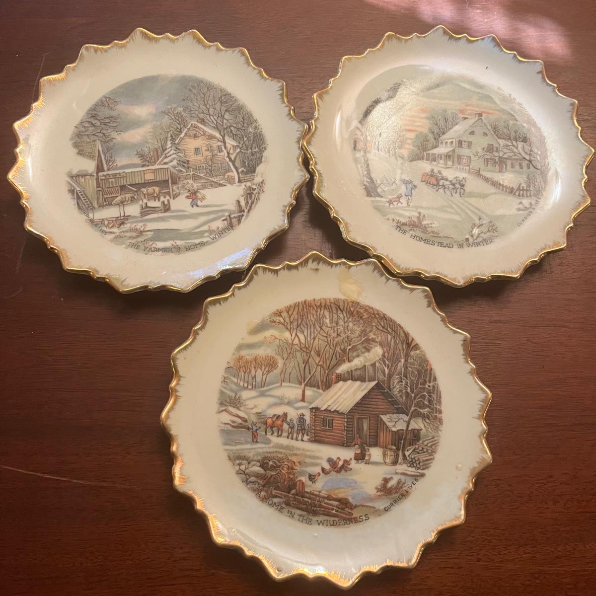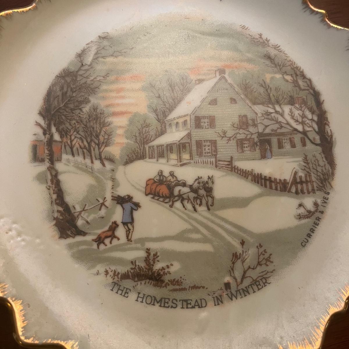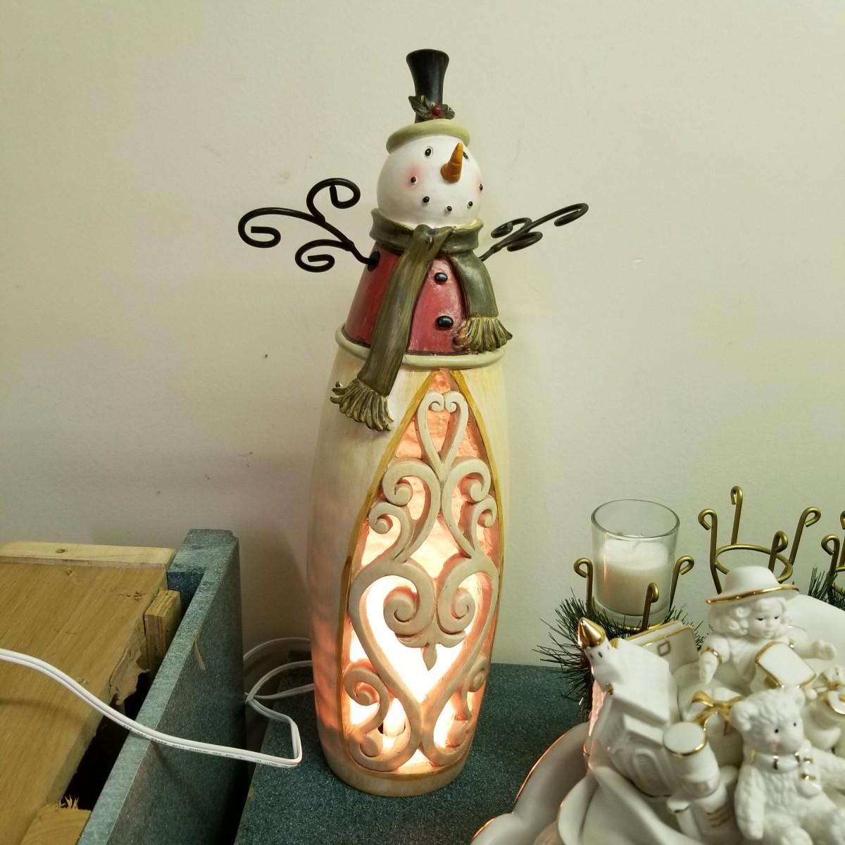 A small collection of joyful Christmas decorations. Two tree stands, 16" and 14", playful angel musician statuettes, a Mrs. Claus tree topper. Also includes two Grandeur Noel pieces, Santa and his sleigh. Trays, stocking hangers, three Currier & Ives plates that are7”D and more. Joyful lighted snowman is 17" high. Longer candle stand is missing some candle holders. See photos for details. Shipping available.