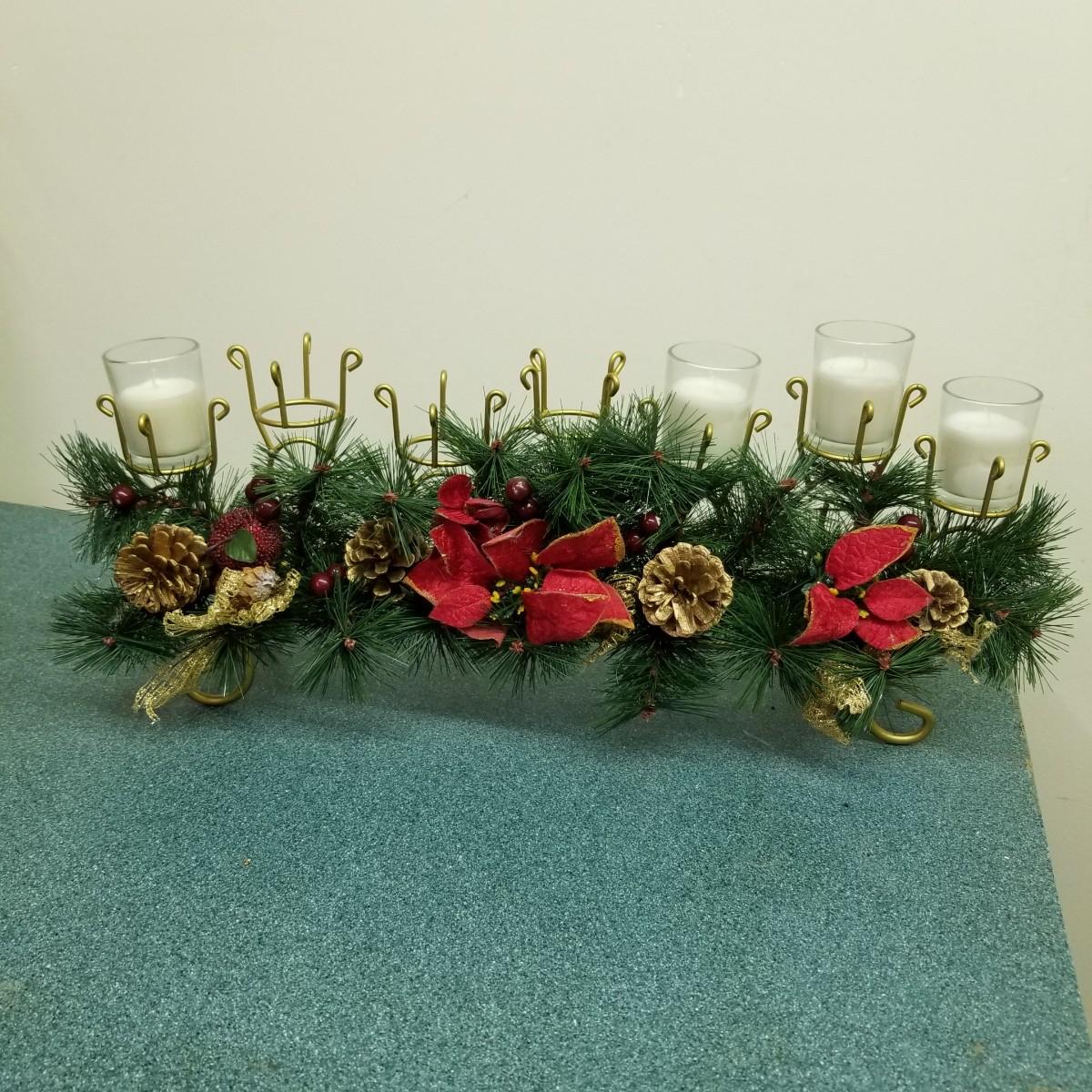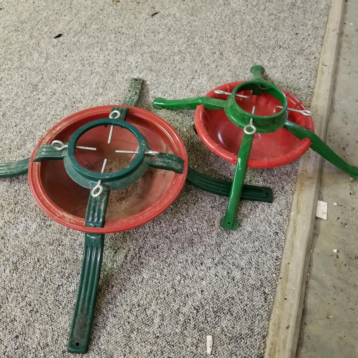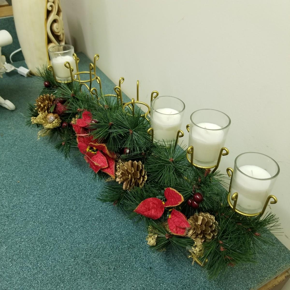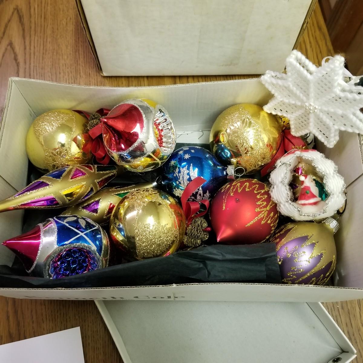 A small collection of joyful Christmas decorations. Two tree stands, 16" and 14", playful angel musician statuettes, a Mrs. Claus tree topper. Also includes two Grandeur Noel pieces, Santa and his sleigh. Trays, stocking hangers, three Currier & Ives plates that are7”D and more. Joyful lighted snowman is 17" high. Longer candle stand is missing some candle holders. See photos for details. Shipping available.