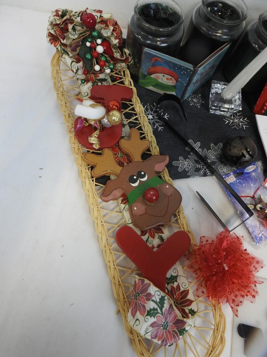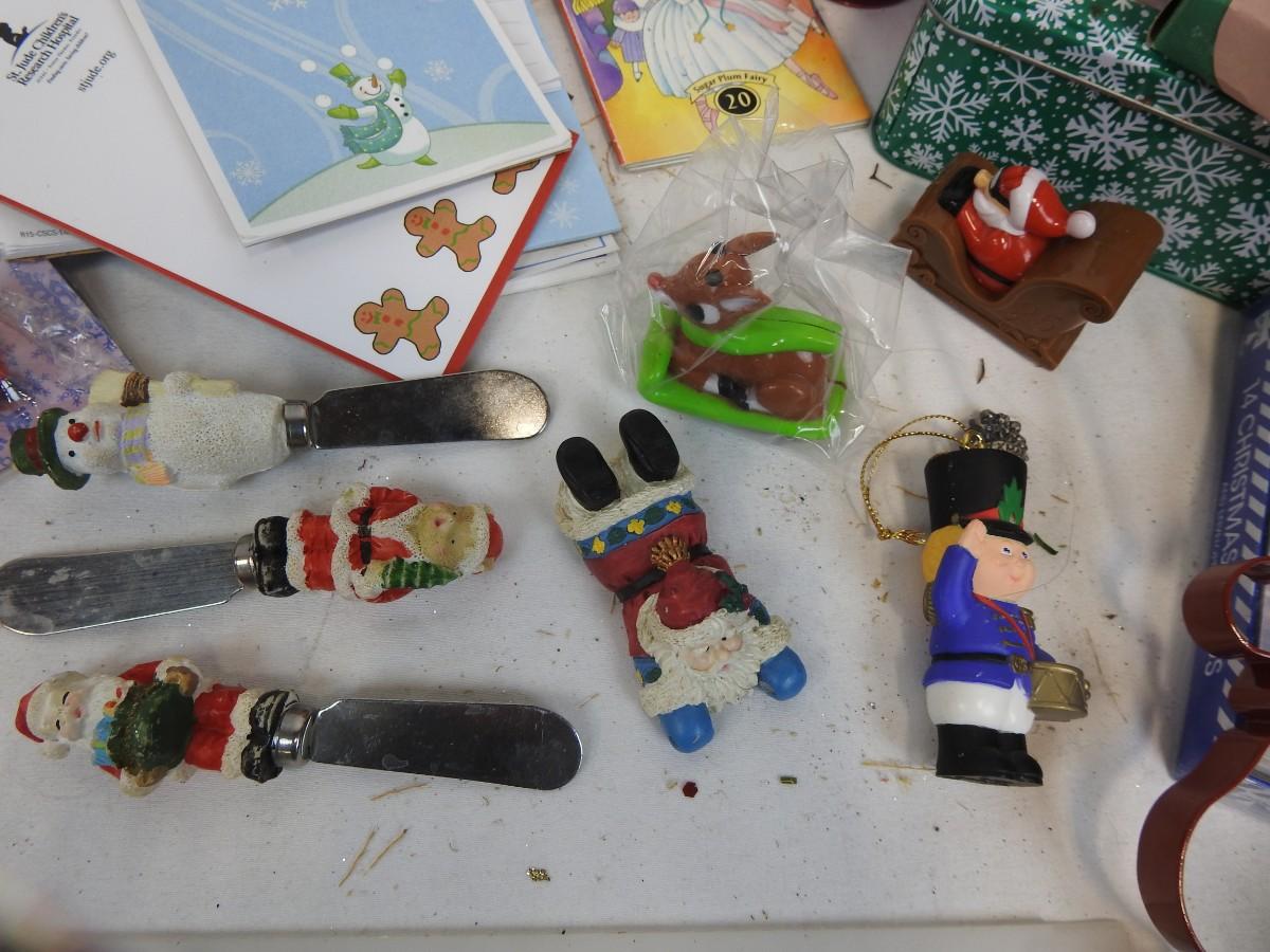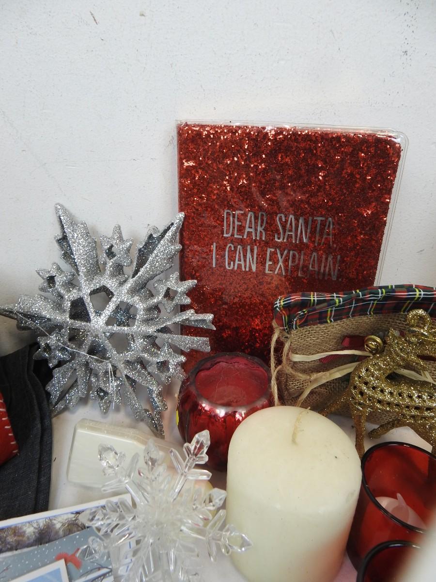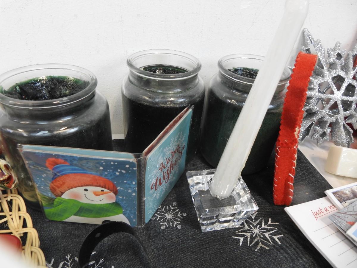 Assorted Christmas Lot: Cookie Cutters, Green Candles, Note Pads, Candle Holders, Stocking Holders