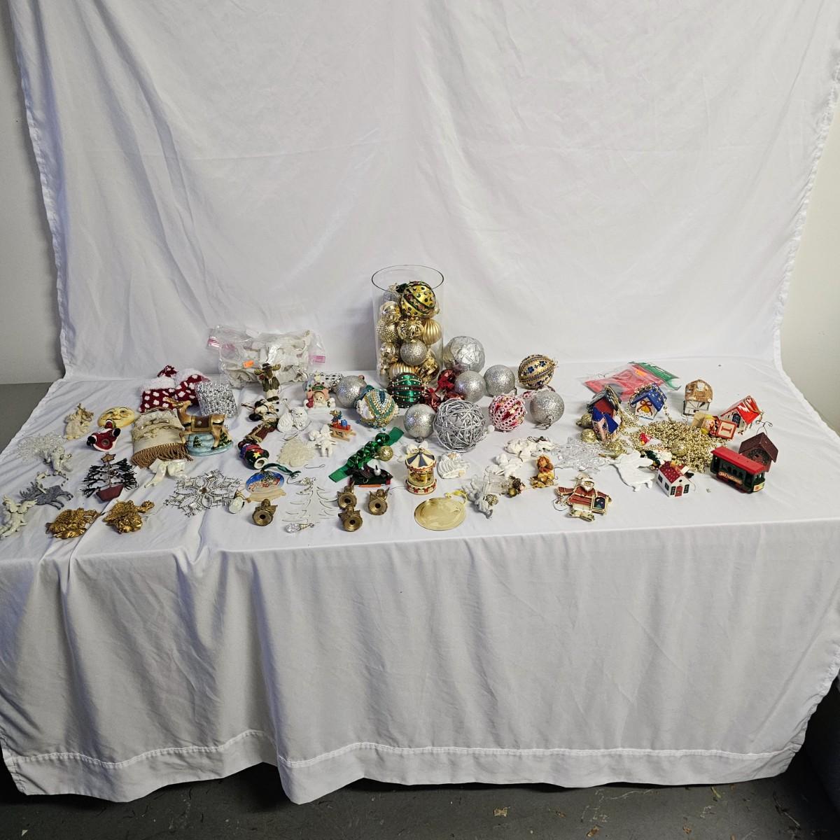 Many different sizes and styles or ornaments. Traditional round, plastic, glass, more. Figures, angels, animals, stars. See photos for details. Shipping available.
