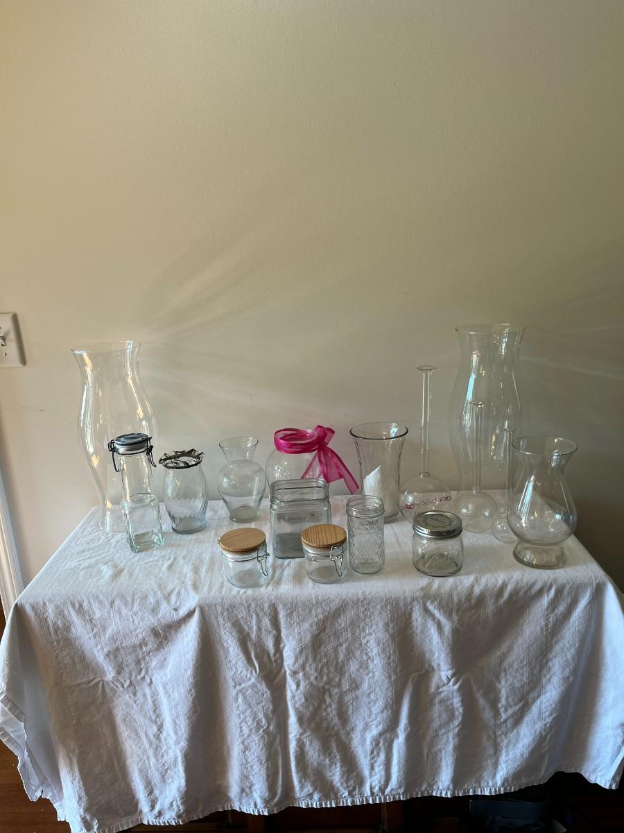 Assorted Clear Glass Jars and Vases Lot of 16