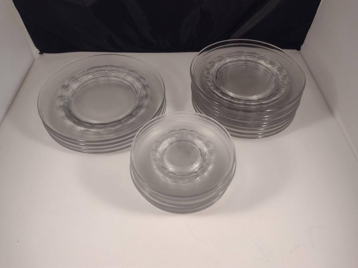 Assorted Clear Glass Plates- Approx 20 Pieces. 6"- 8 pieces, 7 1/2" - 8 pieces, 8 1/2" - 4 pieces.