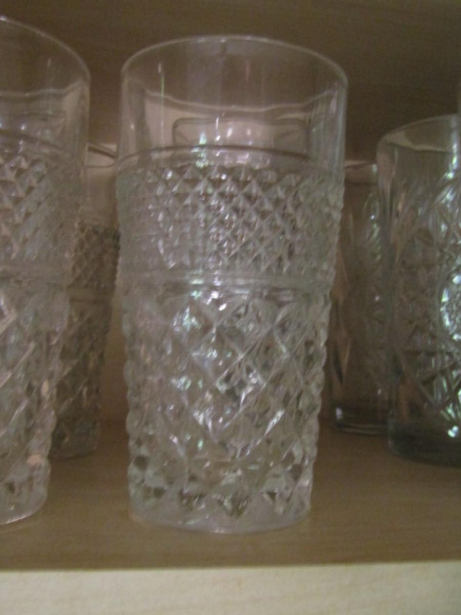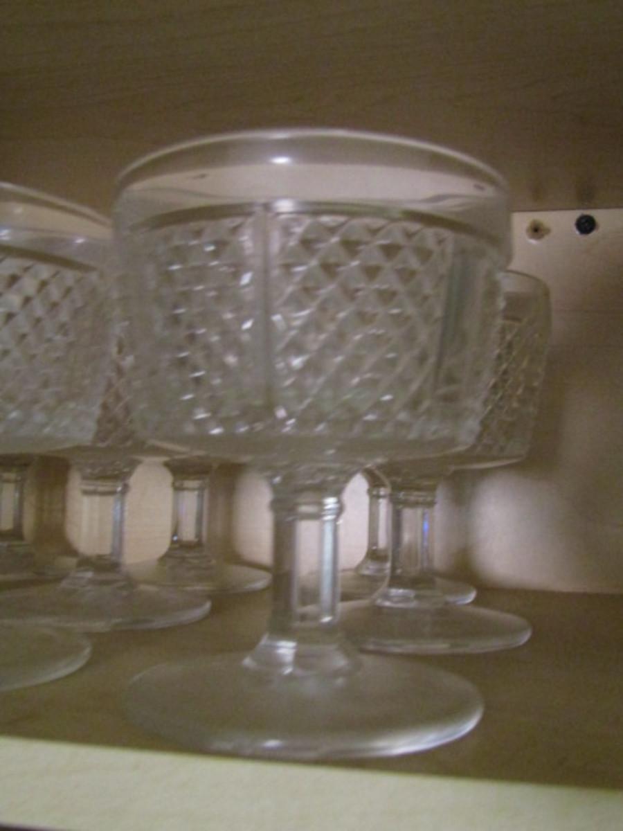 Assorted Clear Glassware. Includes Nine Fostoria Footed Glasses