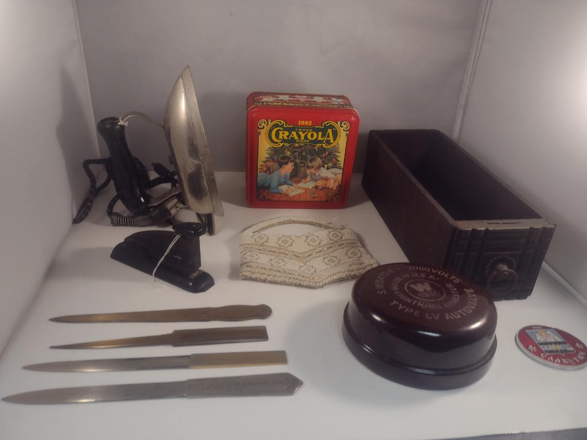 Assorted Collectibles. Iron is Westinghouse. Beaded bag is missing some beads. Please see all pictures for selection and condition.