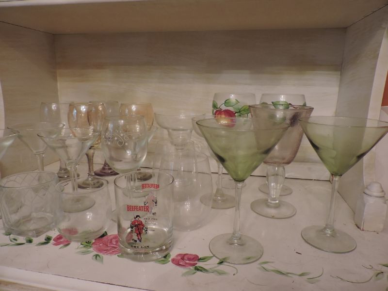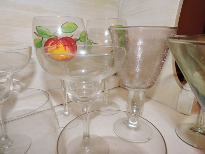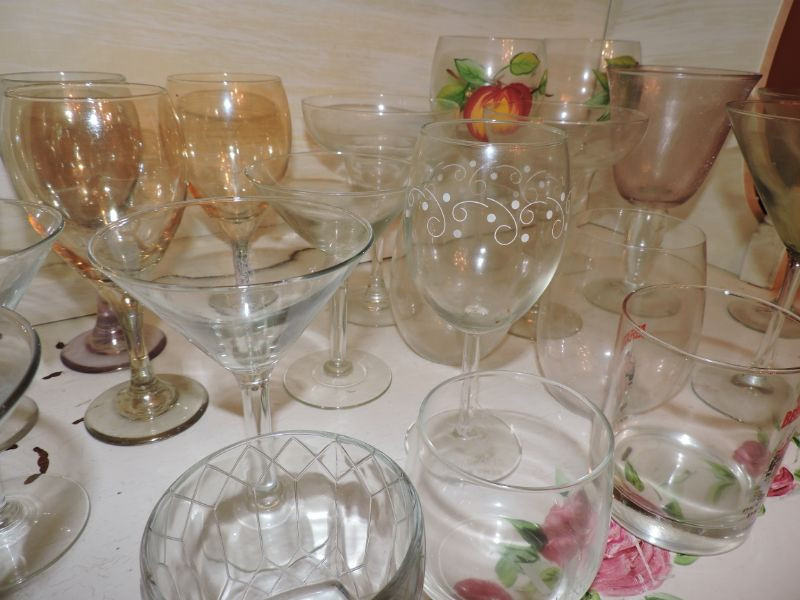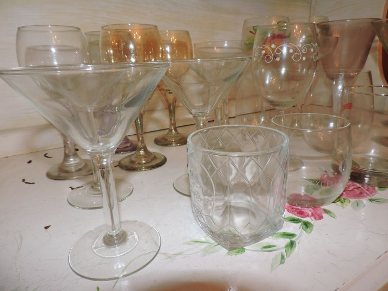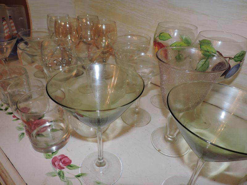 Nice collection of 21 drink glasses including, wine, rocks, and martini glasses.