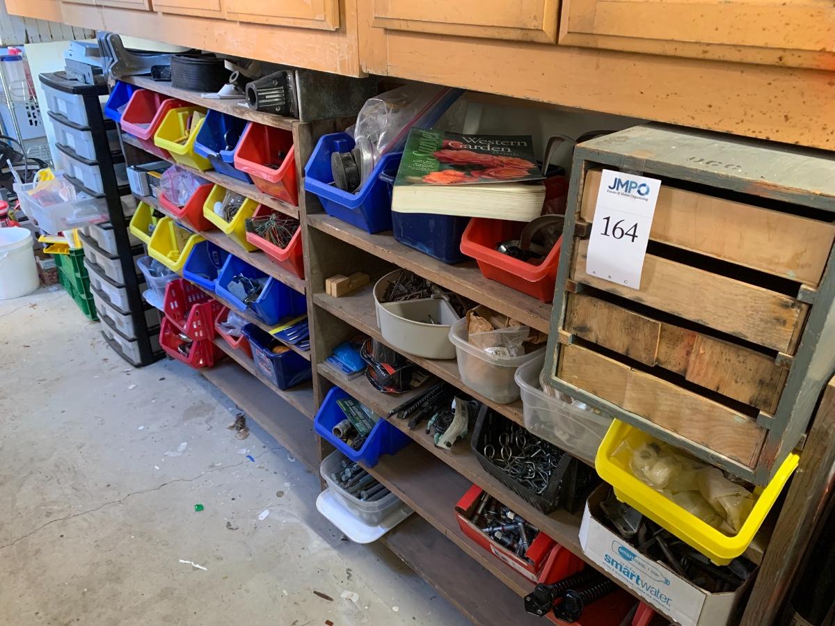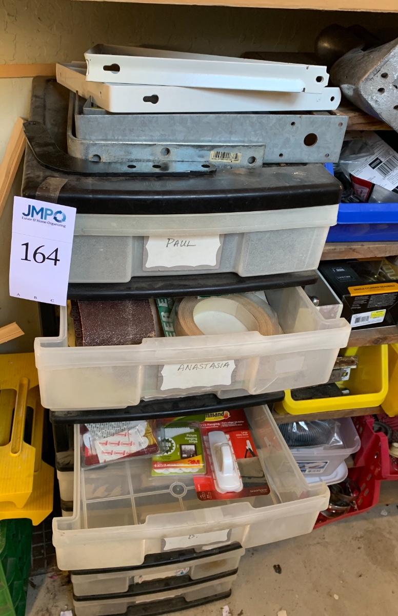 Includes all supplies and materials in shelves under cabinets and plastic drawer unit shown.