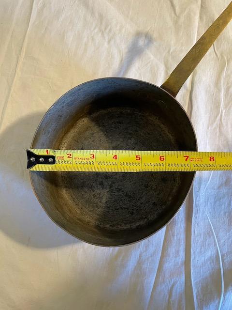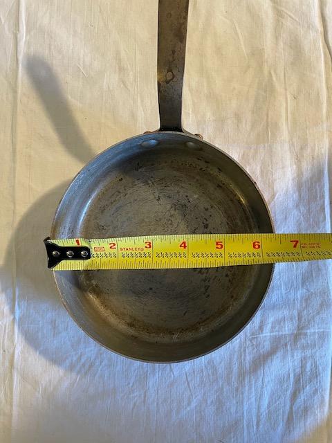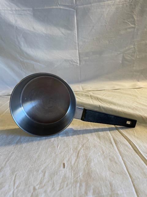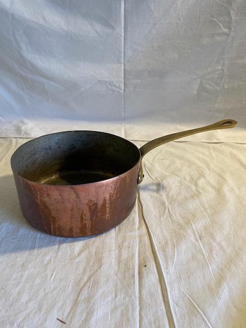 1 camp-style double boiler, 2 copper pans, 1 stainless steel pan, 1 small pan w/lid
