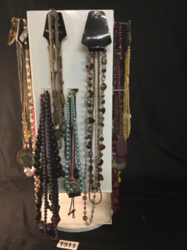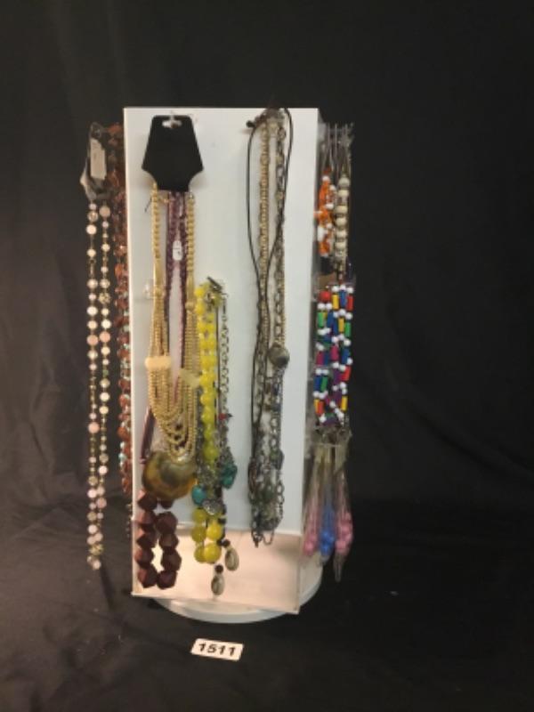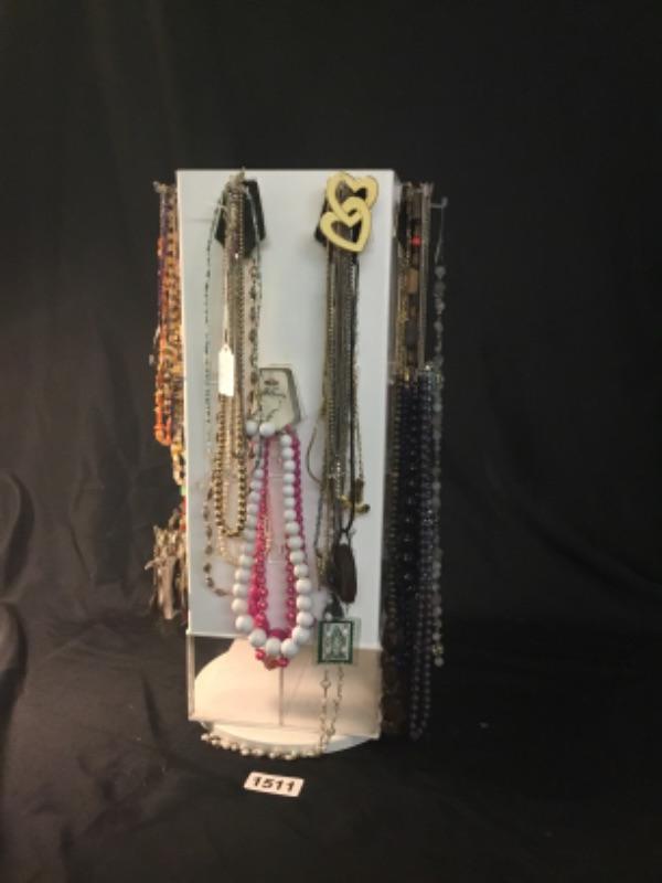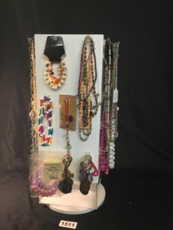 Assorted costume jewelry, necklaces, bracelets, keychains Lot 1511 does not include display