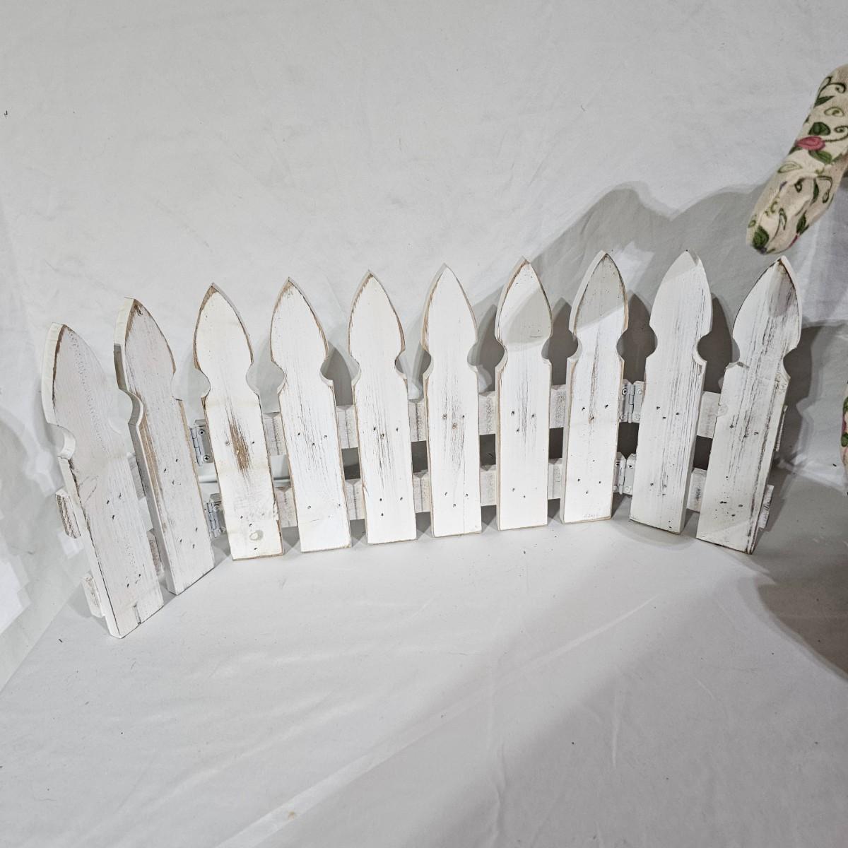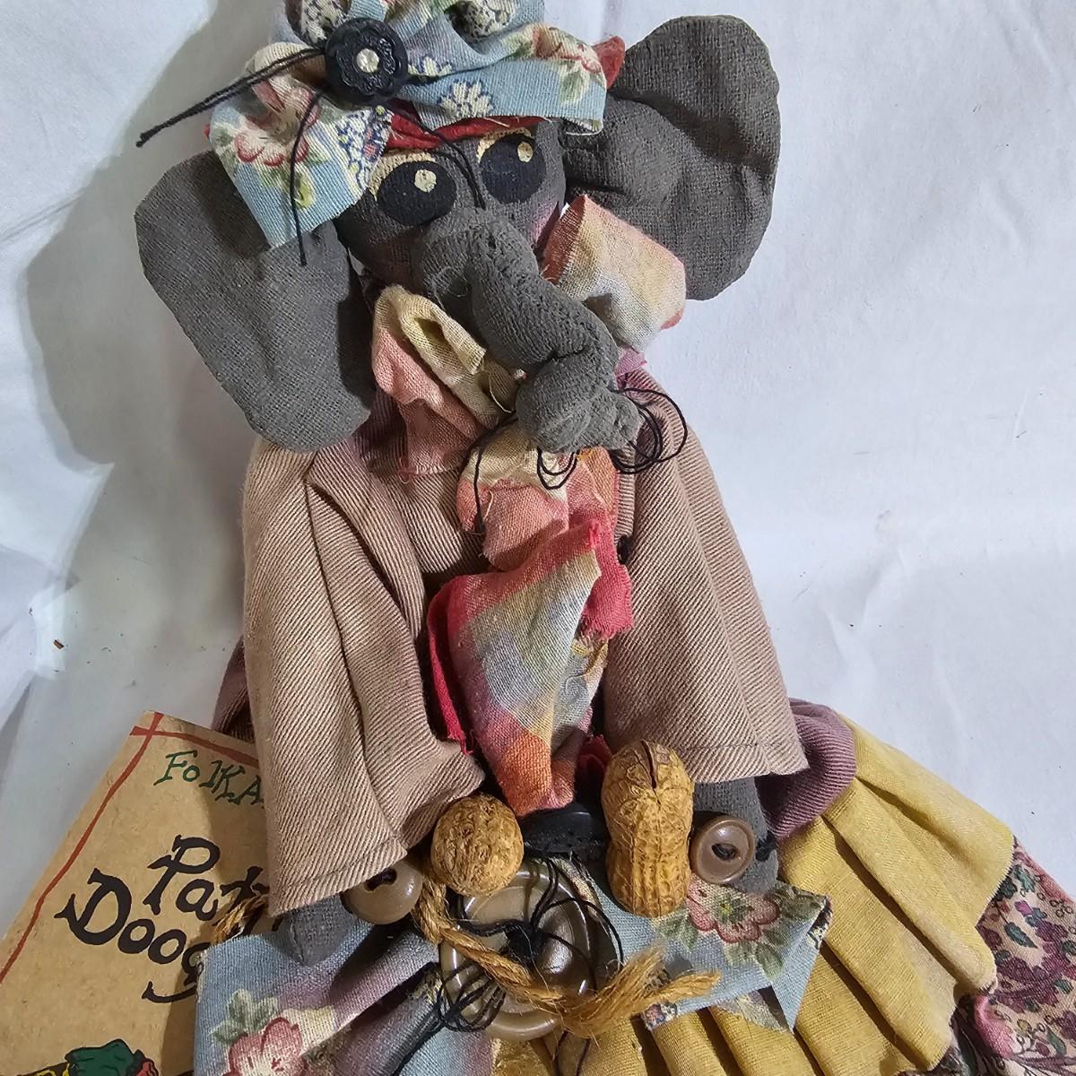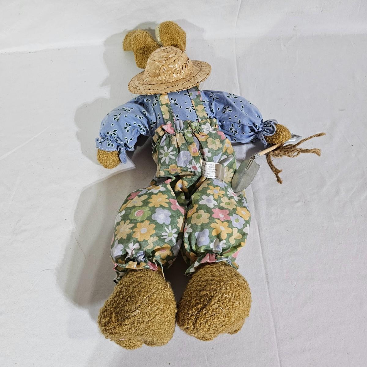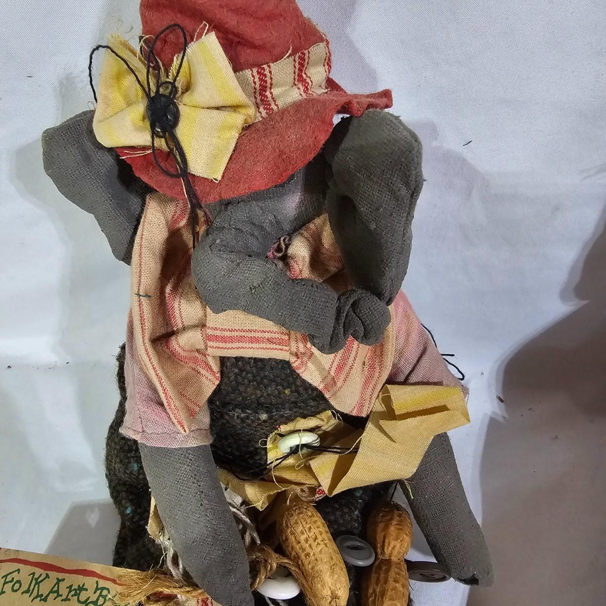 Lots of soft sewn figures here, rabbits, ducks, birds, elephants, angels, more. Most have clothing and adornments to suit. Some old and some newer, have been well loved. Some staining and discoloration on clothes. White fence is hinged, measures 20" x 8". Dolls run from 14"H to 28"H. Bin is included in the lot. See photos for details. Local pickup only.