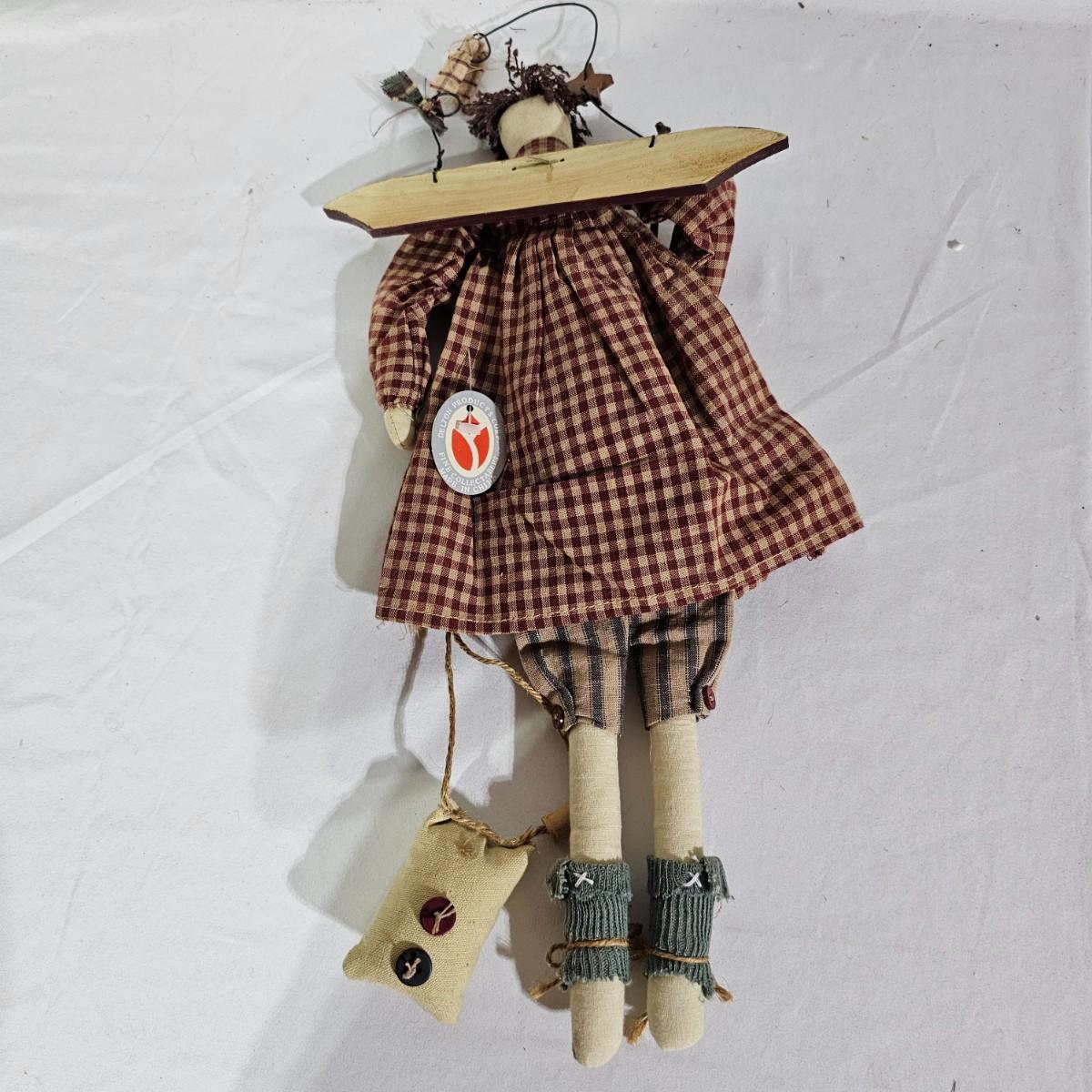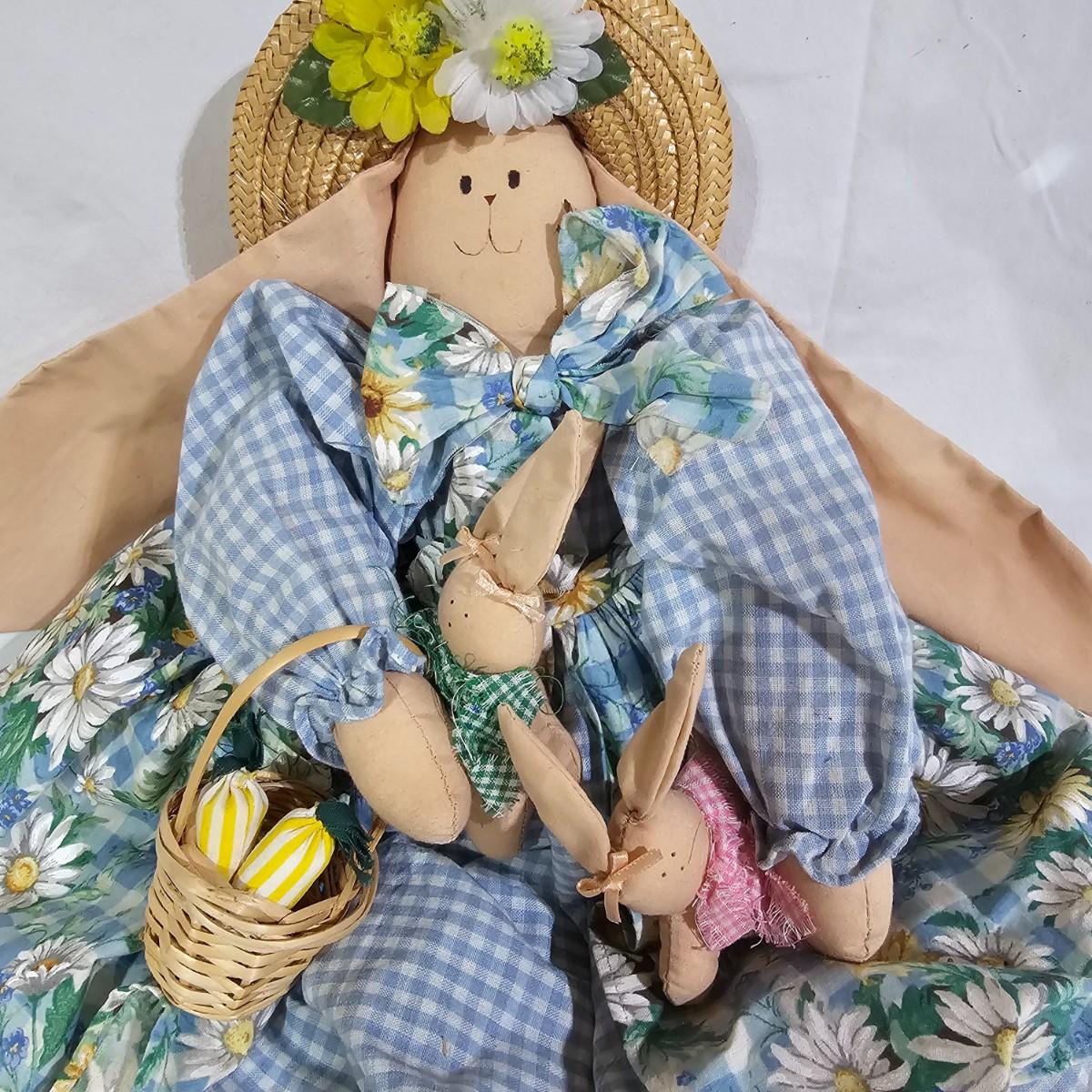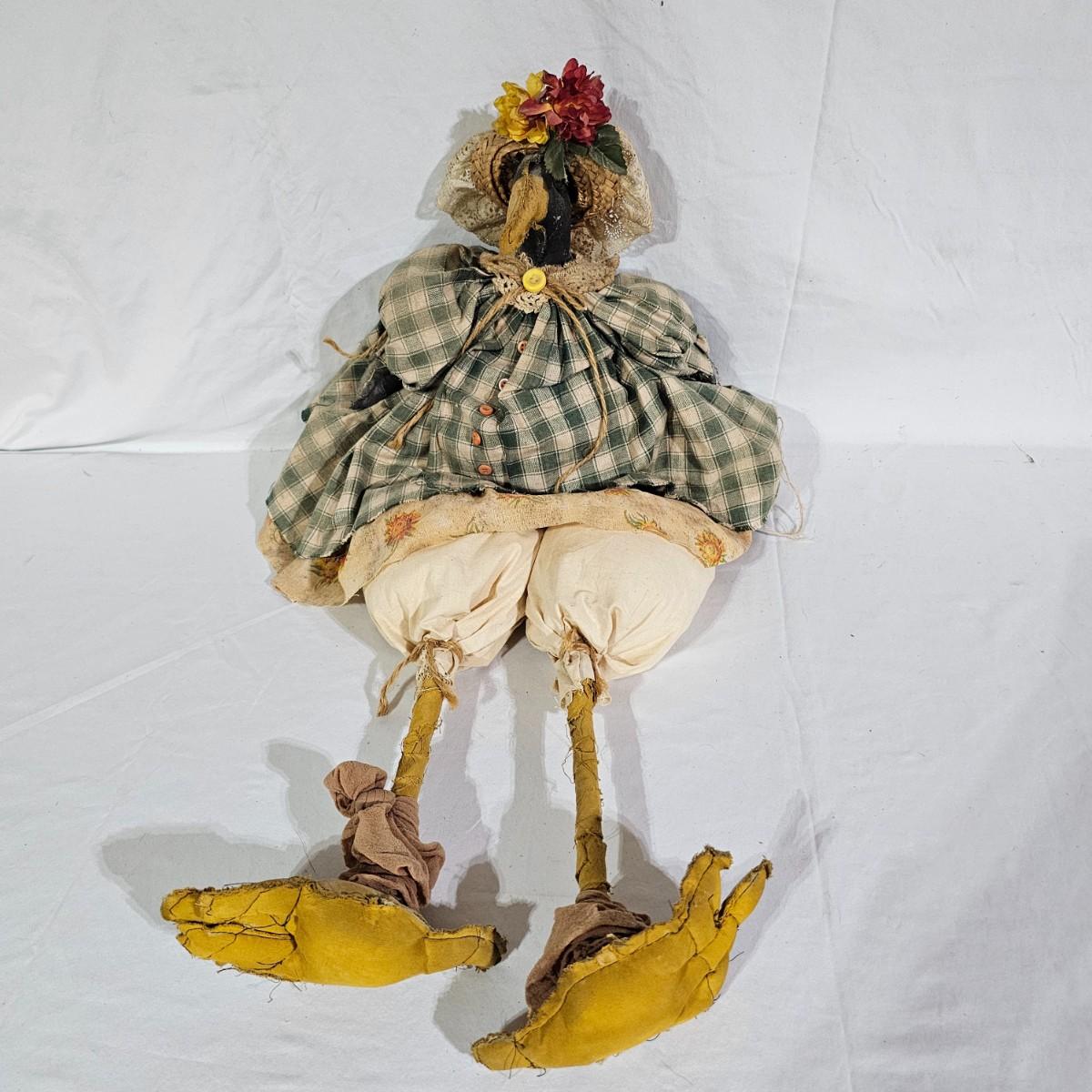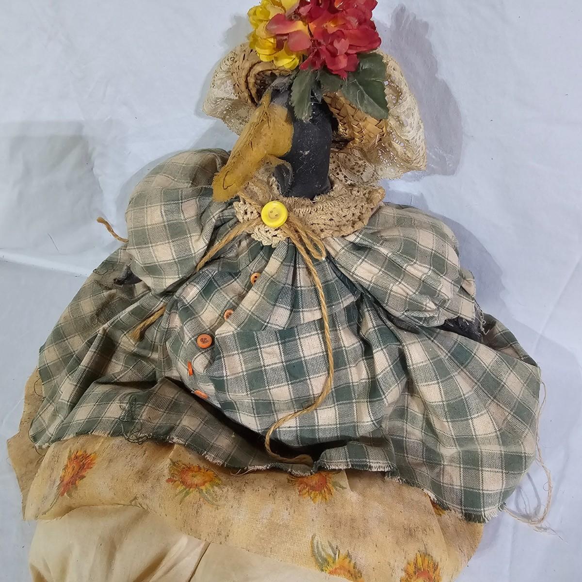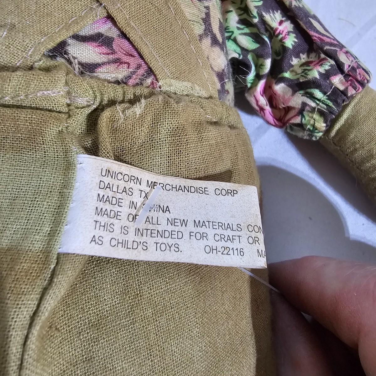 Lots of soft sewn figures here, rabbits, ducks, birds, elephants, angels, more. Most have clothing and adornments to suit. Some old and some newer, have been well loved. Some staining and discoloration on clothes. White fence is hinged, measures 20" x 8". Dolls run from 14"H to 28"H. Bin is included in the lot. See photos for details. Local pickup only.