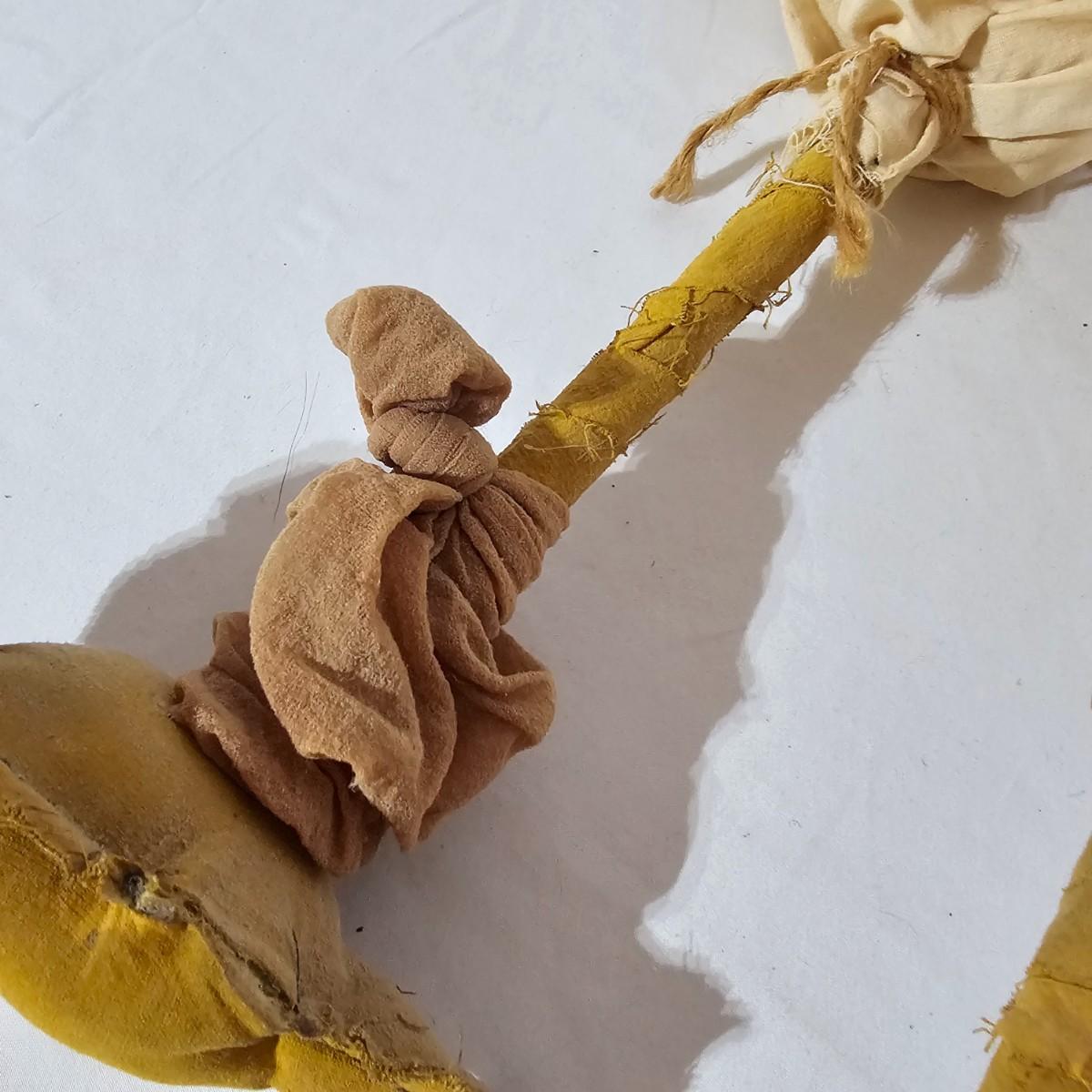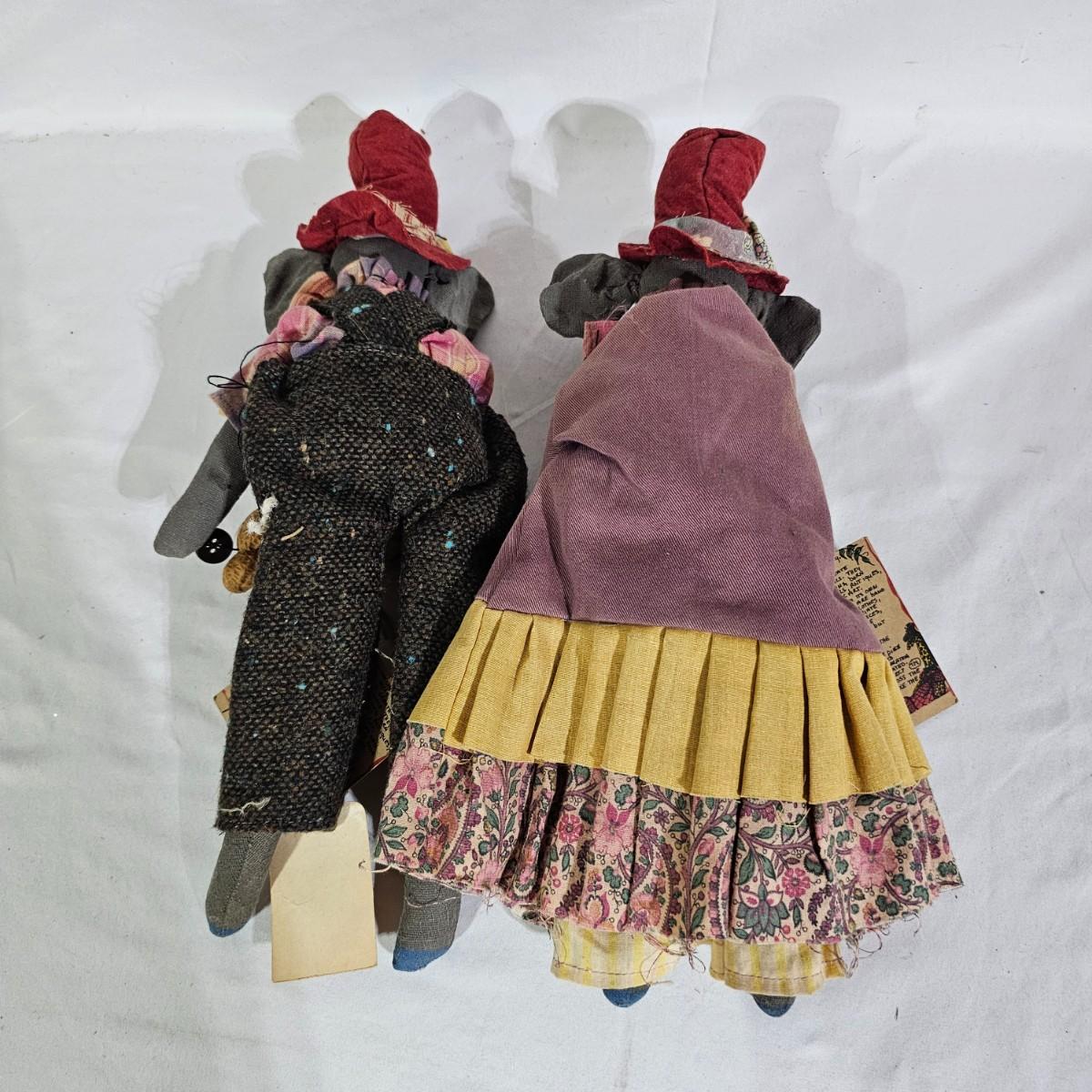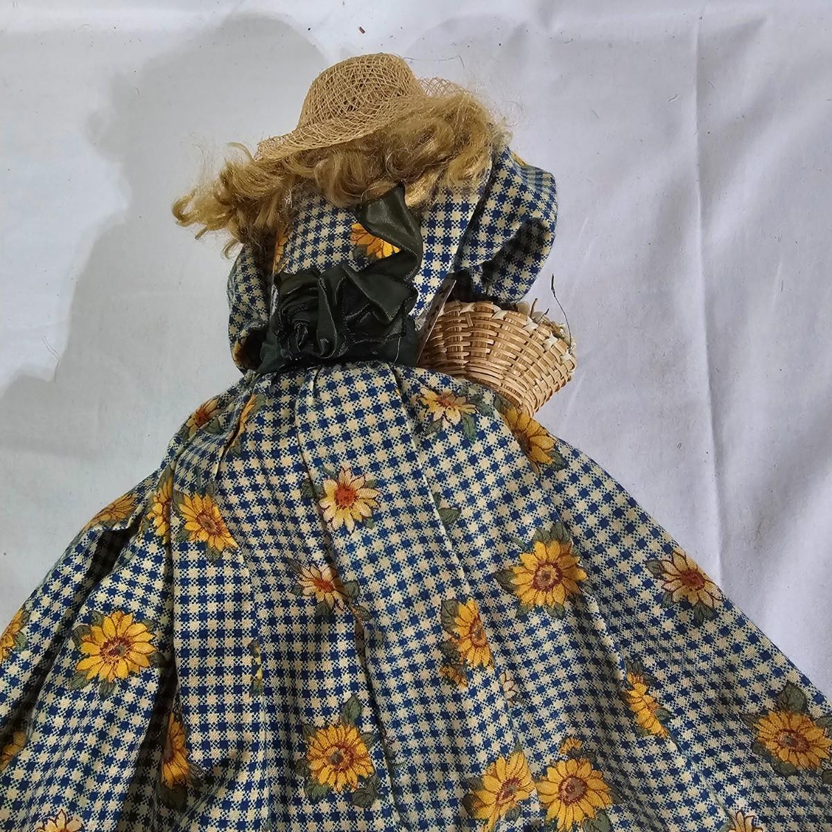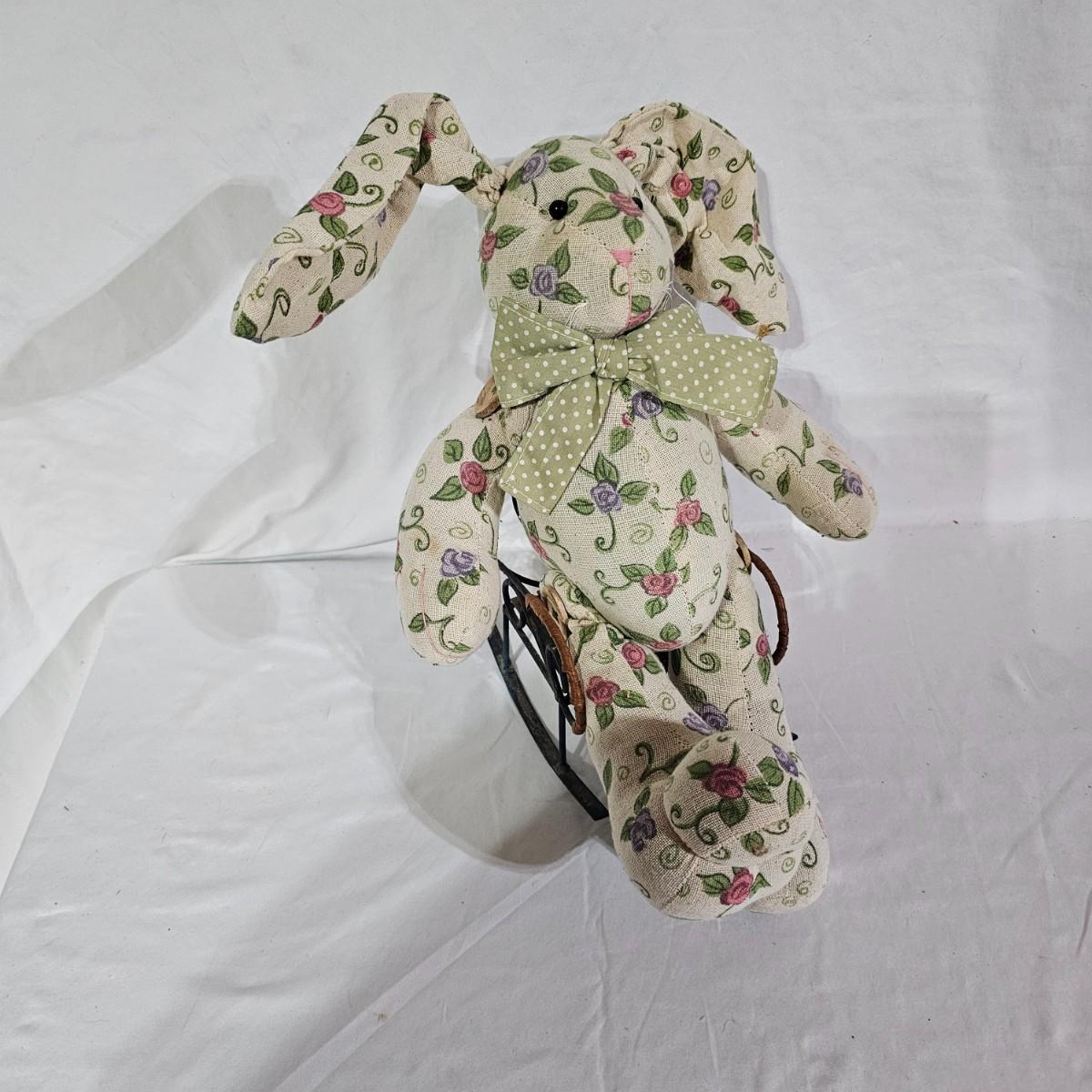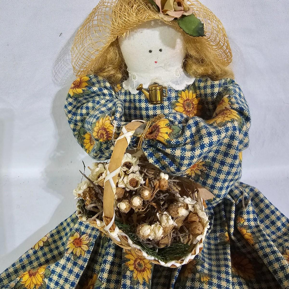 Lots of soft sewn figures here, rabbits, ducks, birds, elephants, angels, more. Most have clothing and adornments to suit. Some old and some newer, have been well loved. Some staining and discoloration on clothes. White fence is hinged, measures 20" x 8". Dolls run from 14"H to 28"H. Bin is included in the lot. See photos for details. Local pickup only.