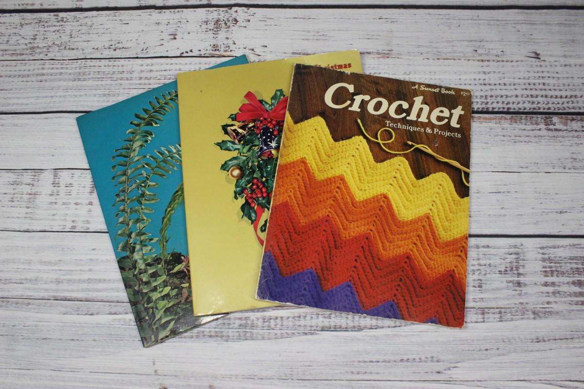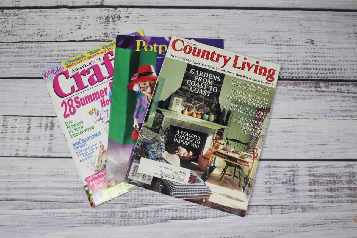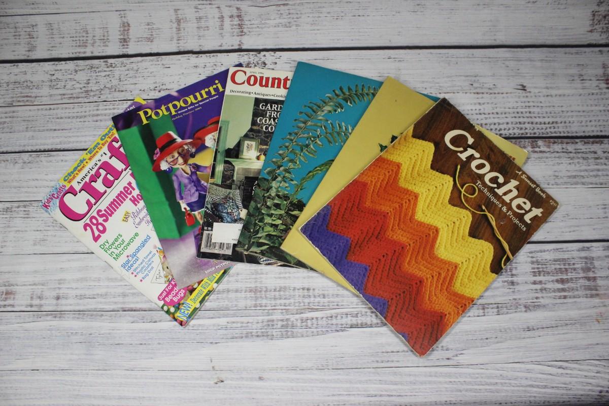 6 crafting magazines, three are vintage, and the other three are modern. There is no significant tears or rips to any of the pages