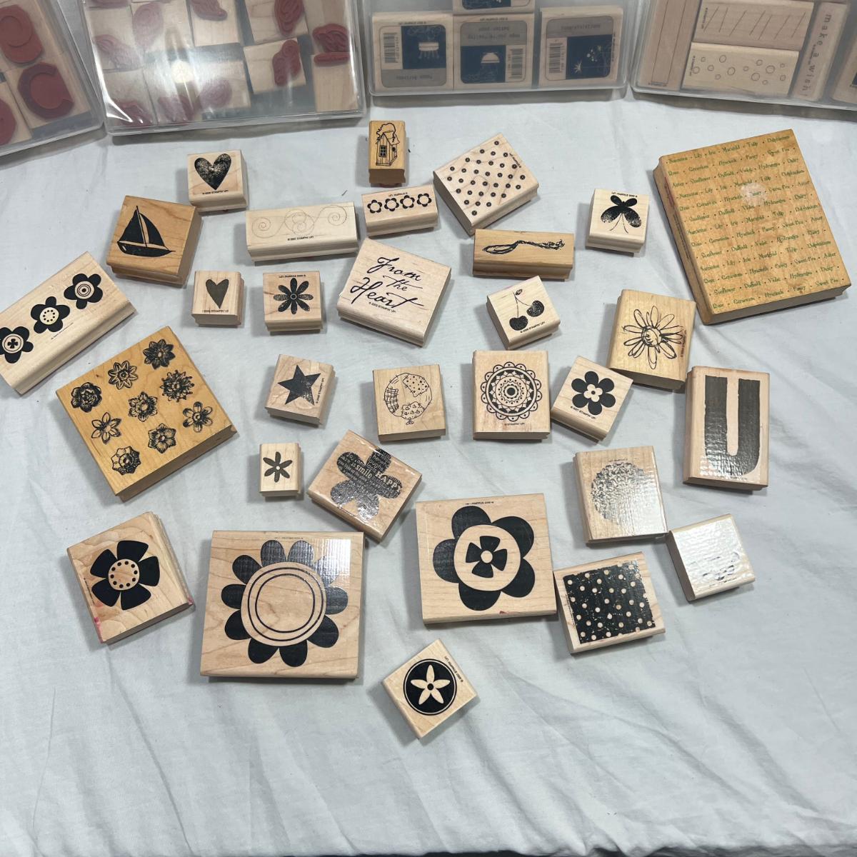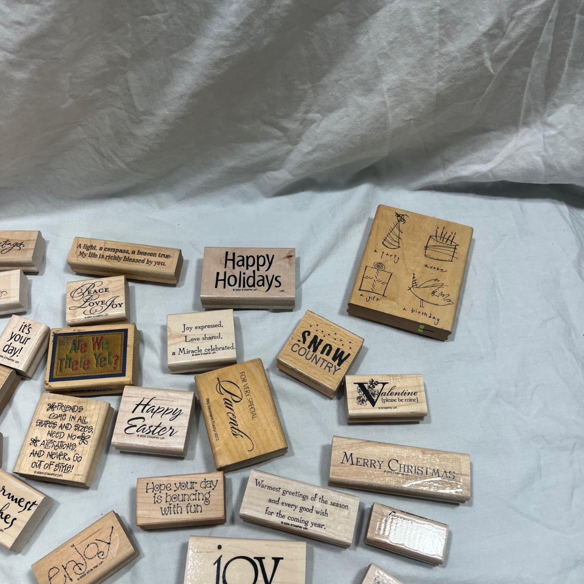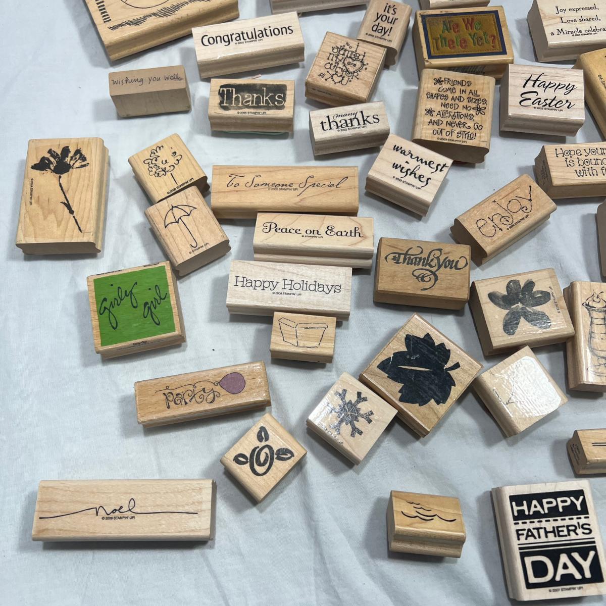 Assorted Crafting Stamps, there is a mixture of designs phrases and Holidays. There are 55 stamps in this Collection.