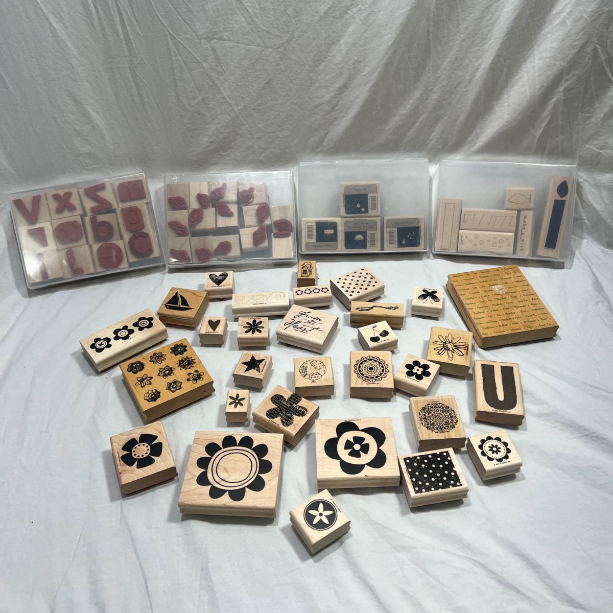 Assorted Crafting Stamps, there is a mixture of designs and 4 boxed sets. one for birthday candles, two for lettering and one as a barcode design set.
