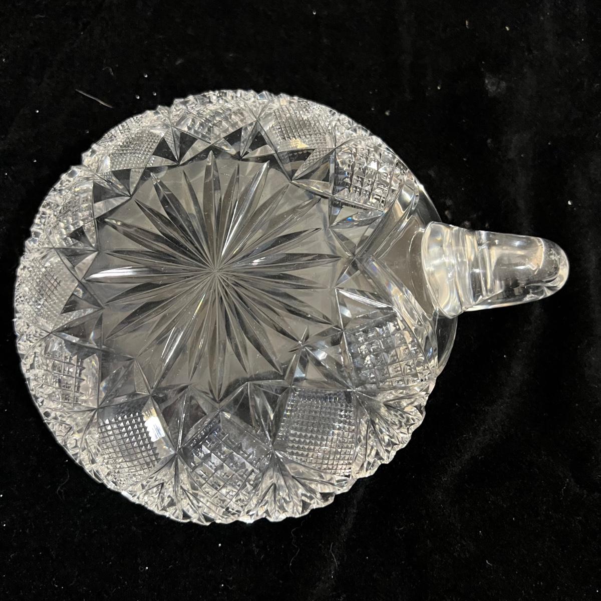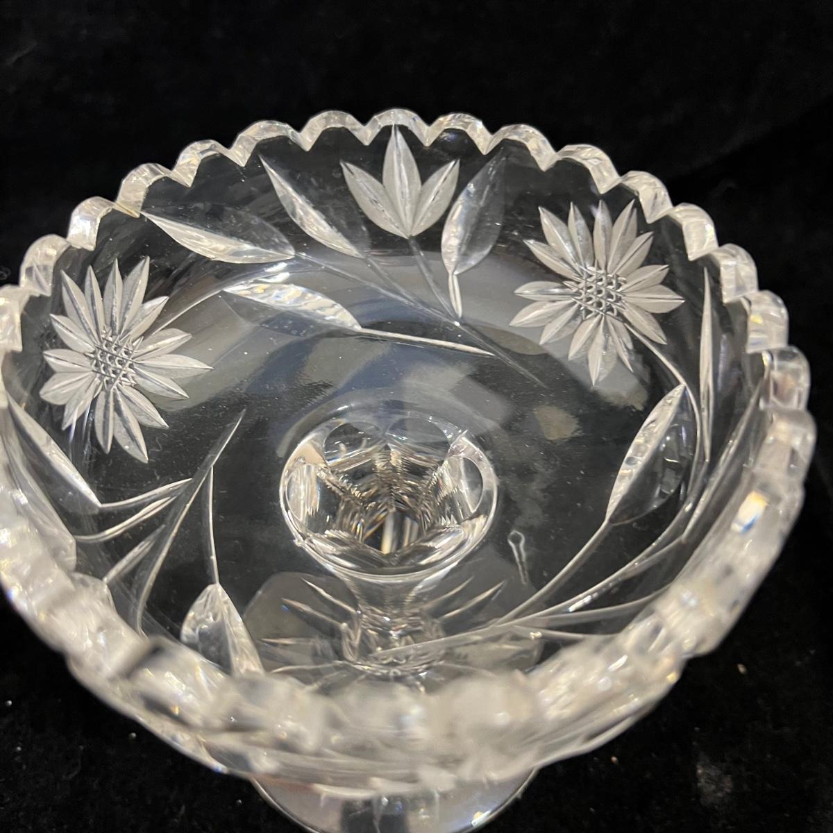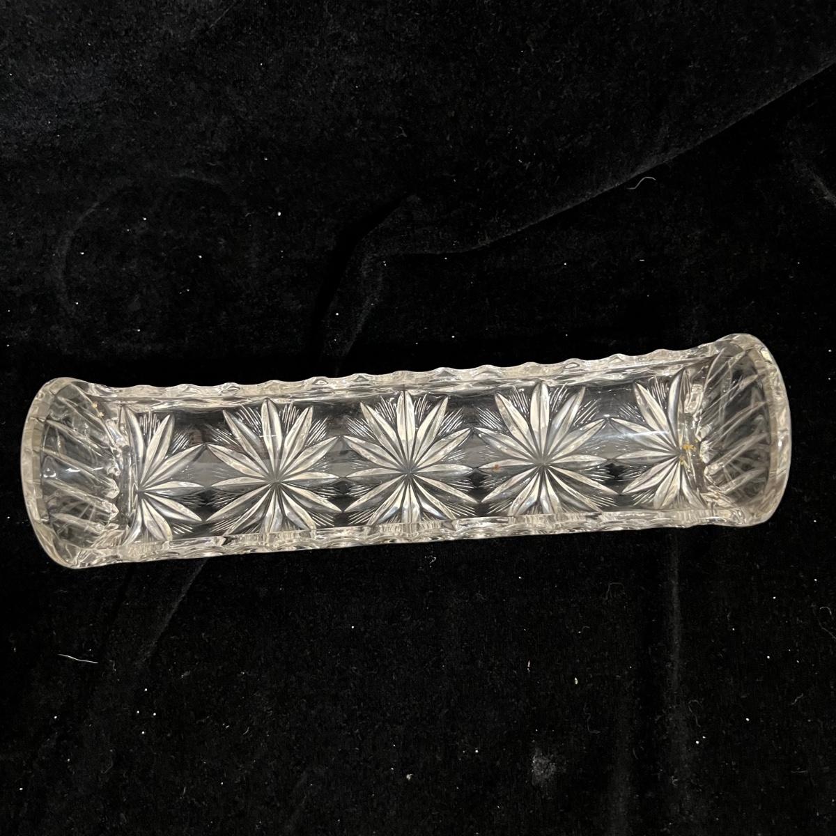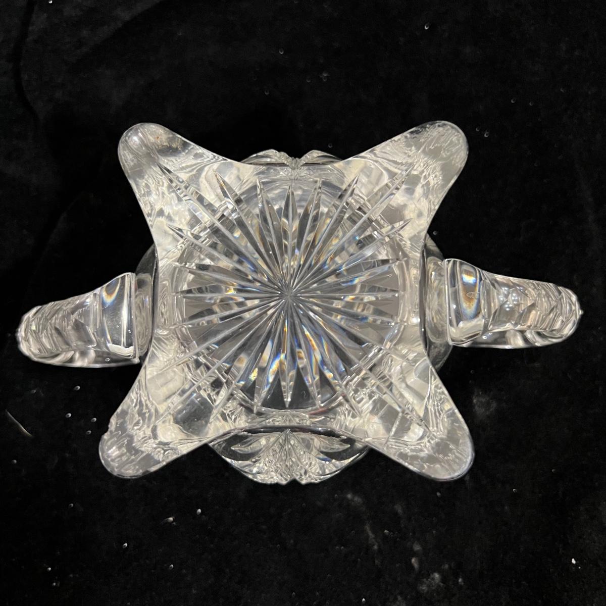 A lovely assortment of crystal and glass entertaining necessities. Four matching glass bowls 5”D x 2.25”H. Sugar and cream matching set both 3”H and the cream pitcher 3.3”D and the sugar bowl 4”D. Glass salt and pepper shakers with rubber stoppers, 3”H x 1.5”D. Low handled serving bowl 6”D x 1.5”H. Stewart lead crystal rose bowl 3”D x 2.75”H with its label still intact. Crystal cracker tray with half-round and high ends makes it a perfect serving tray for round crackers or charcuterie. Made by Crystal Clear is 8.75" long at bottom and 9" long at top, the two end pieces are tapered inward at their foot. The 8" square bowl is 2.5”H and a large serving bowl is 10.5”D x 4”H. Two pedestal bowls, one 4.75”D x 4.75”H and one 6”D x 8”H with a small chip in its round base. Shipping available. Shipping can be costly. We suggest calling our local UPS with dimensions and getting an estimate before bidding: (828) 252-6930.