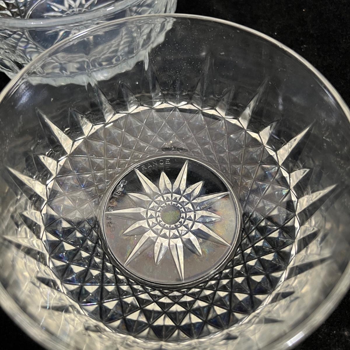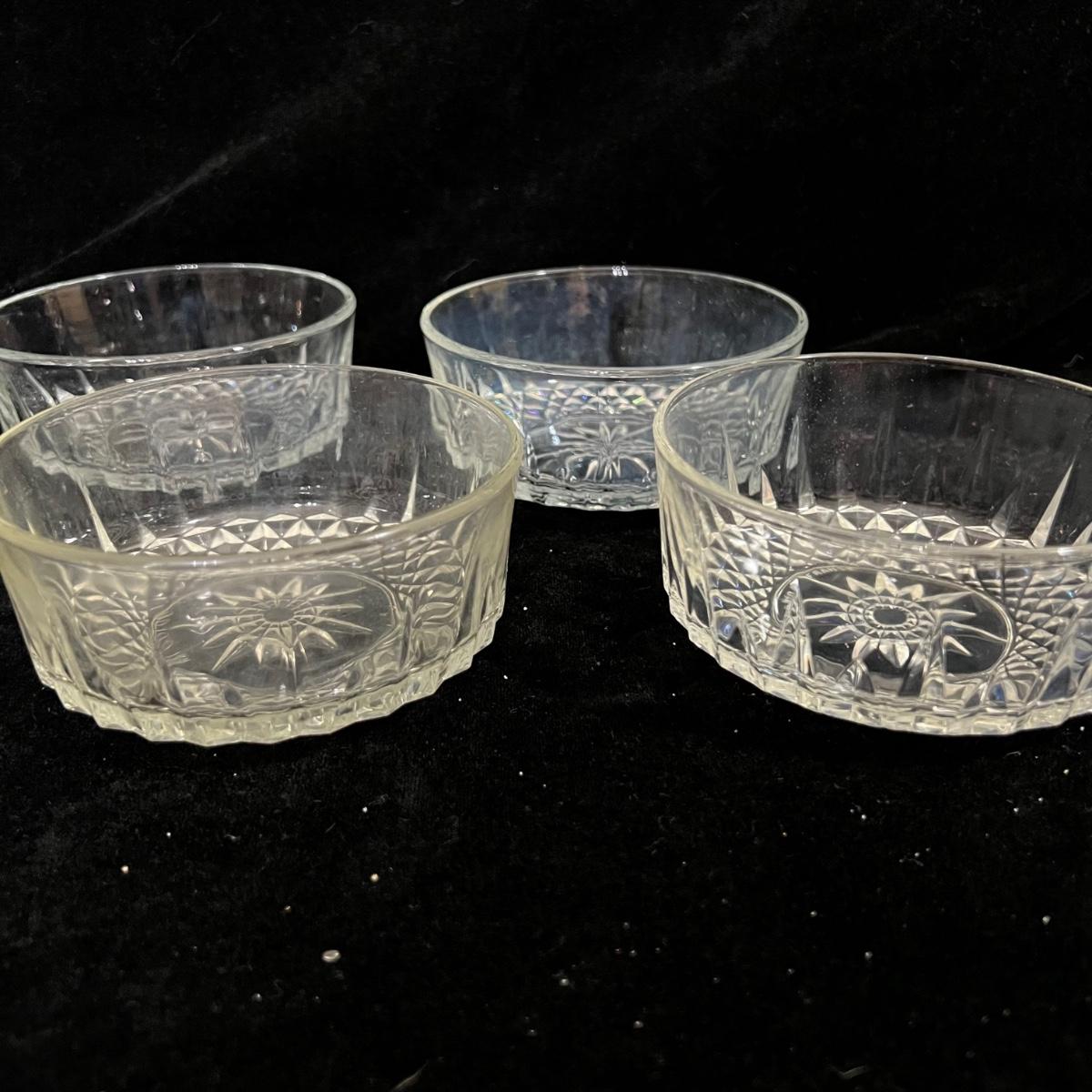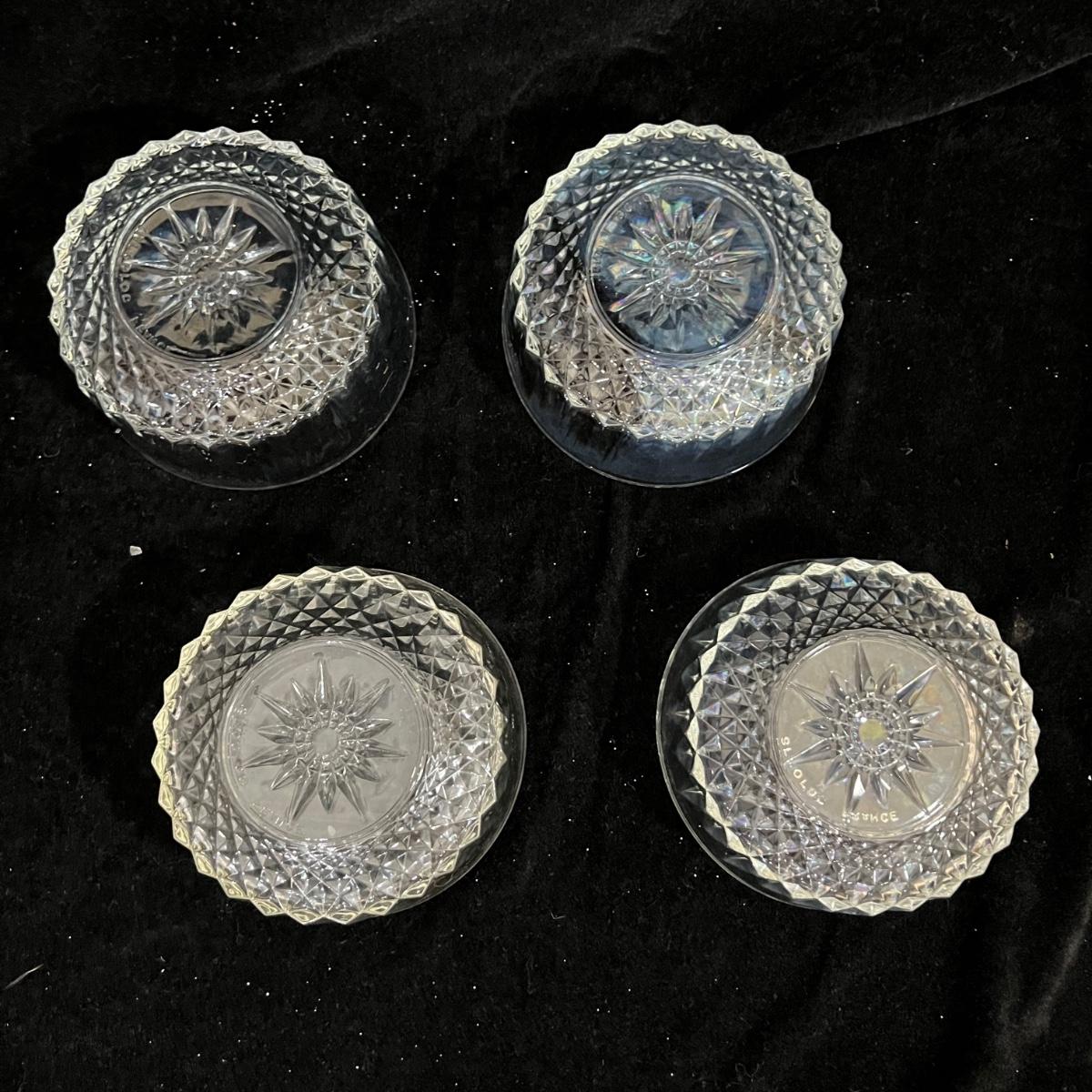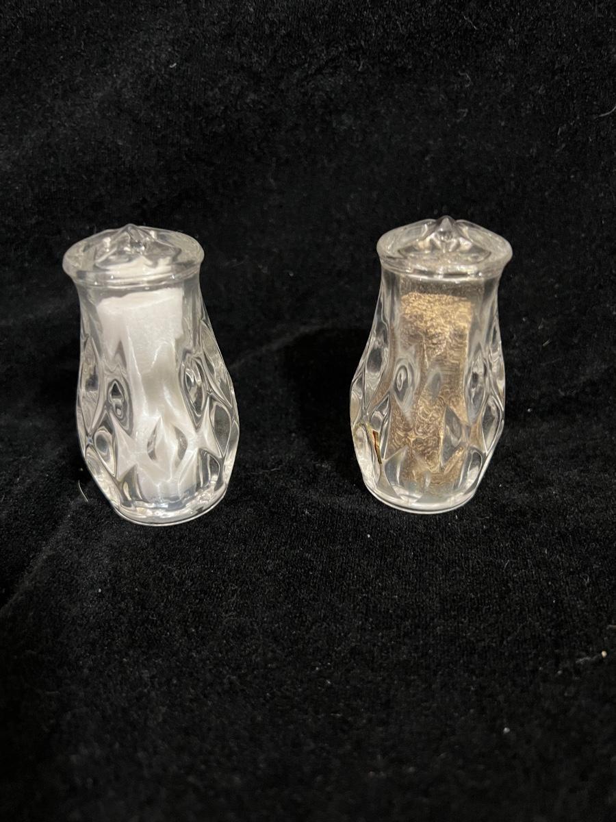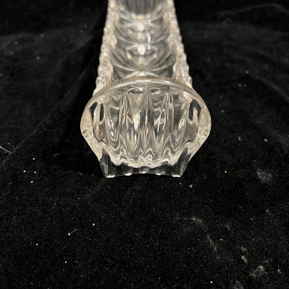 A lovely assortment of crystal and glass entertaining necessities. Four matching glass bowls 5”D x 2.25”H. Sugar and cream matching set both 3”H and the cream pitcher 3.3”D and the sugar bowl 4”D. Glass salt and pepper shakers with rubber stoppers, 3”H x 1.5”D. Low handled serving bowl 6”D x 1.5”H. Stewart lead crystal rose bowl 3”D x 2.75”H with its label still intact. Crystal cracker tray with half-round and high ends makes it a perfect serving tray for round crackers or charcuterie. Made by Crystal Clear is 8.75" long at bottom and 9" long at top, the two end pieces are tapered inward at their foot. The 8" square bowl is 2.5”H and a large serving bowl is 10.5”D x 4”H. Two pedestal bowls, one 4.75”D x 4.75”H and one 6”D x 8”H with a small chip in its round base. Shipping available. Shipping can be costly. We suggest calling our local UPS with dimensions and getting an estimate before bidding: (828) 252-6930.