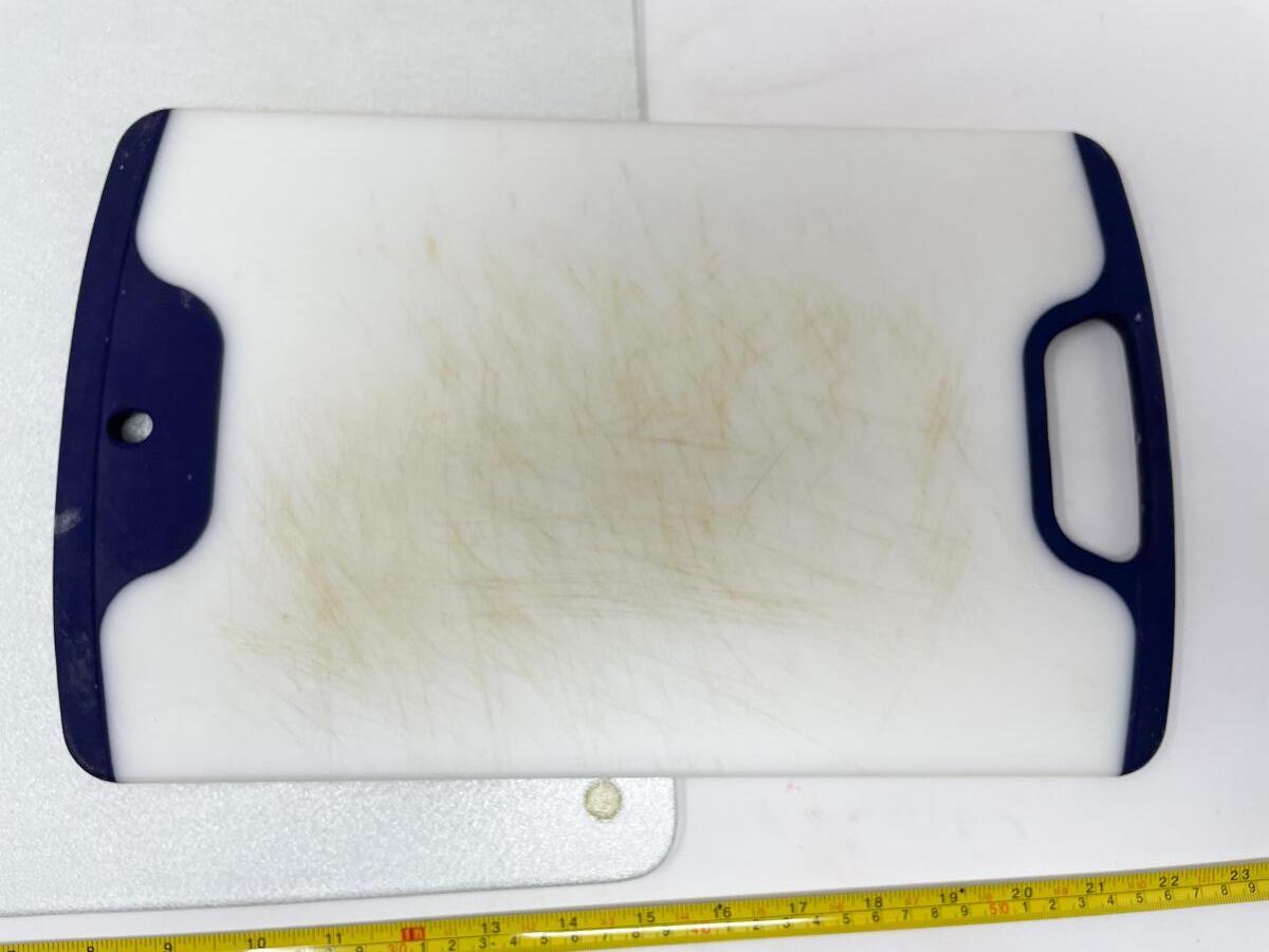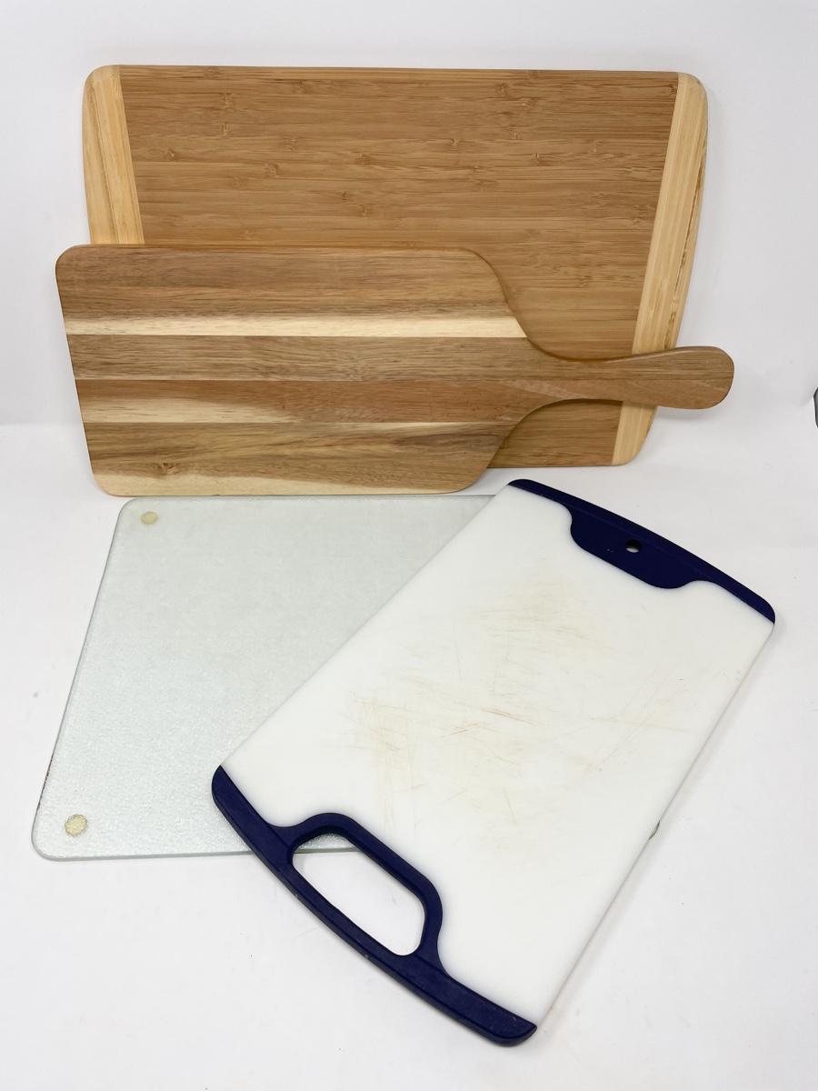 In good condition, plastic cutting board is well used. Others are minimally used.