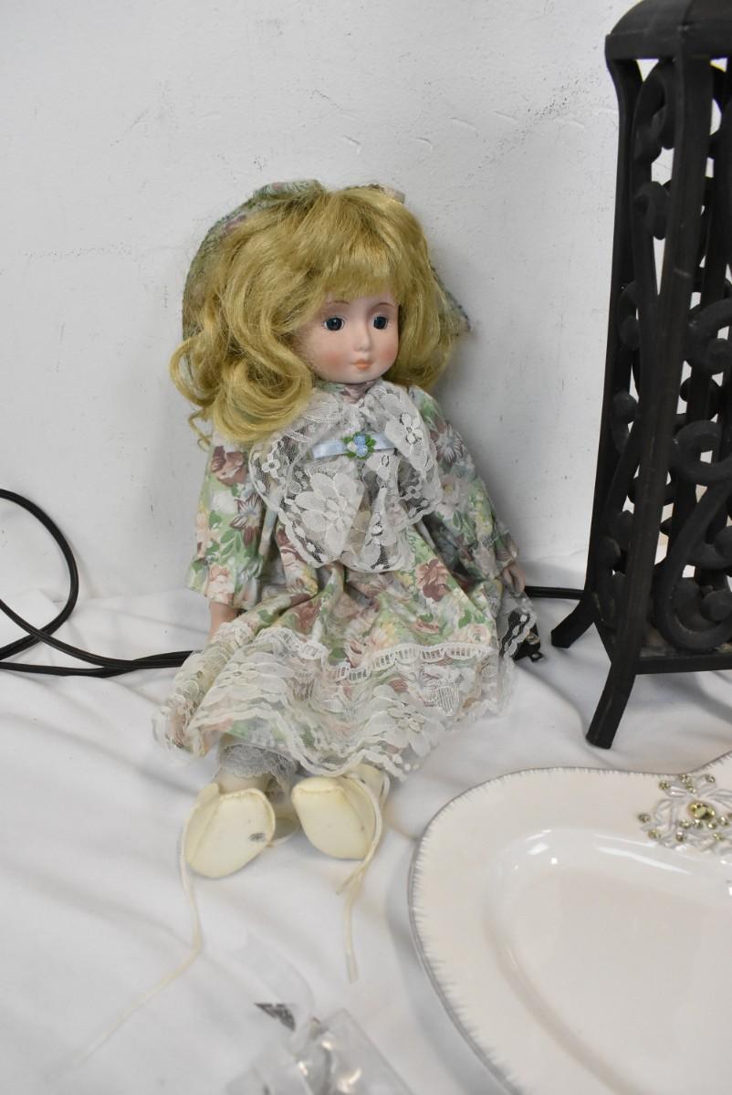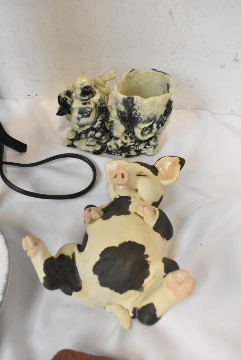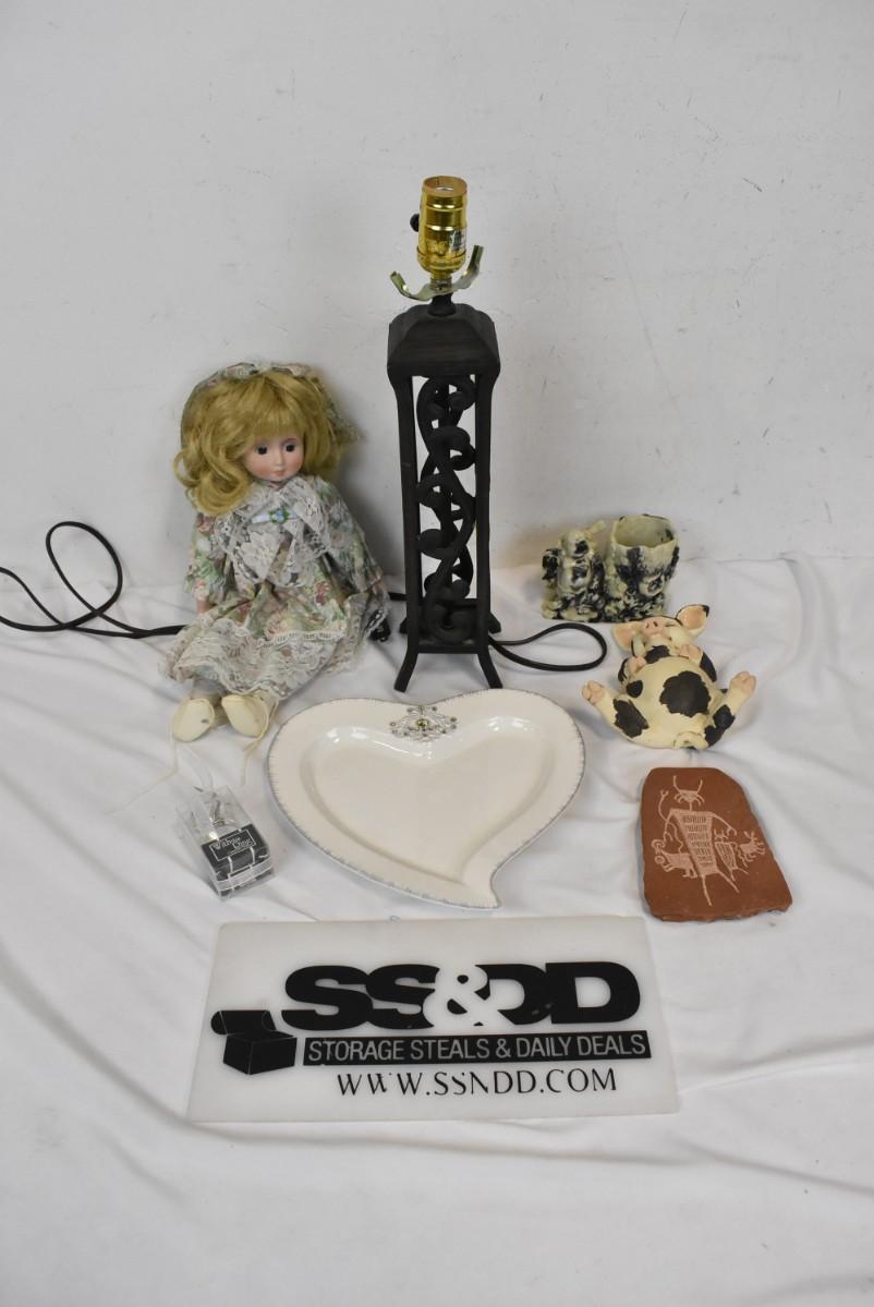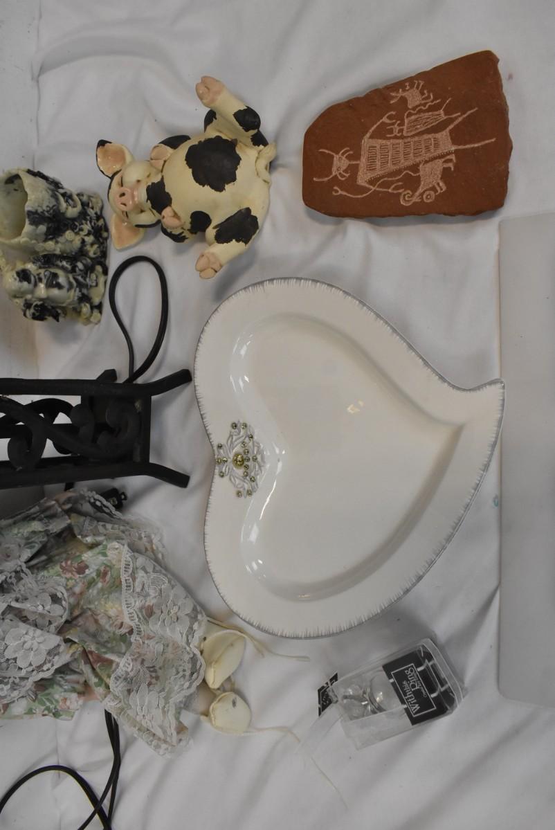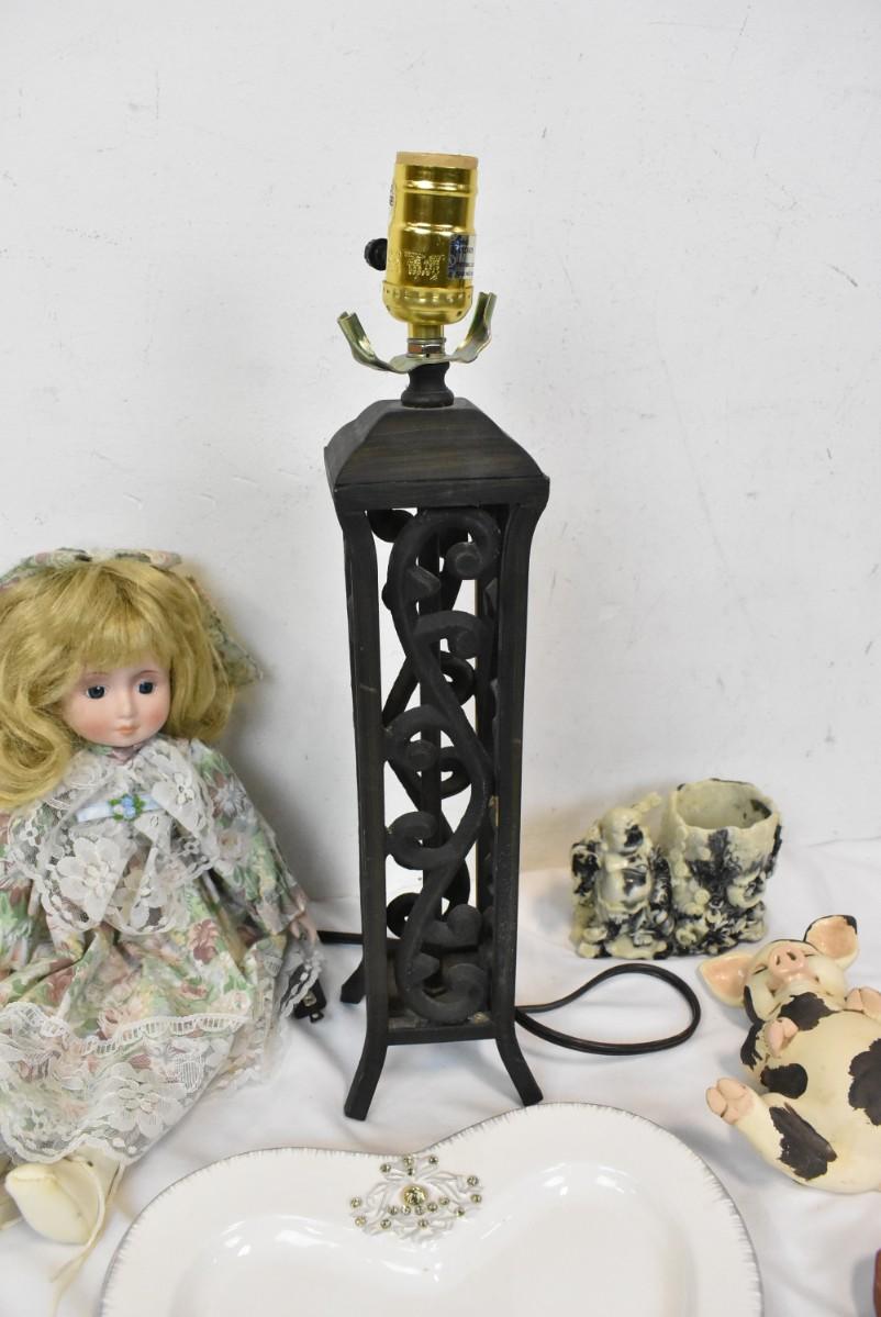 Assorted Decor, Solid Metal Lamp, Ceramic Pig, Heart Plate