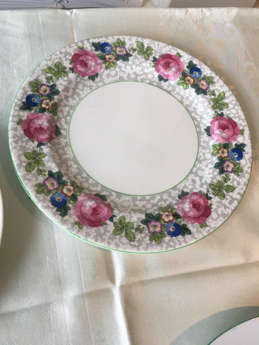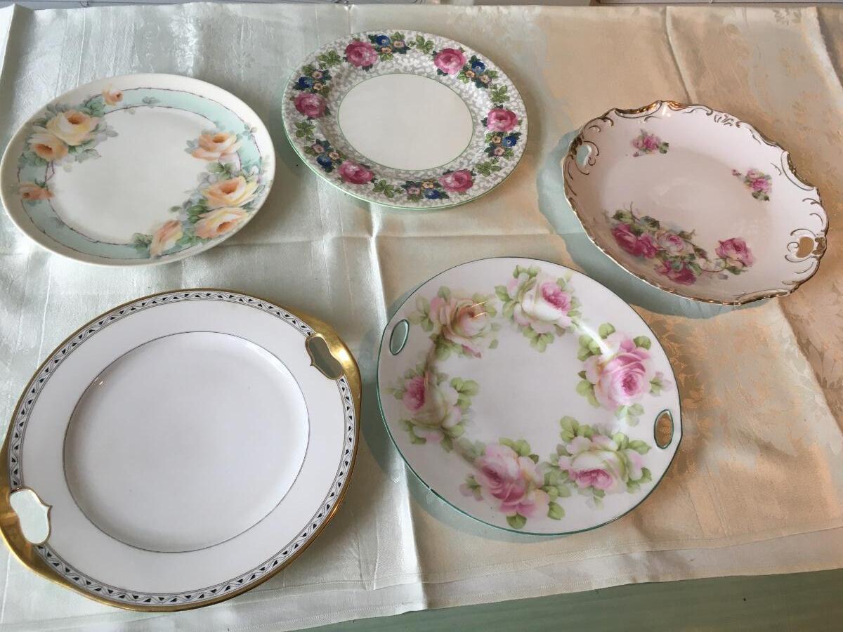 A collection of plates, all but one with floral pattern. Made by various makers. No signs of damage aside from normal wear.