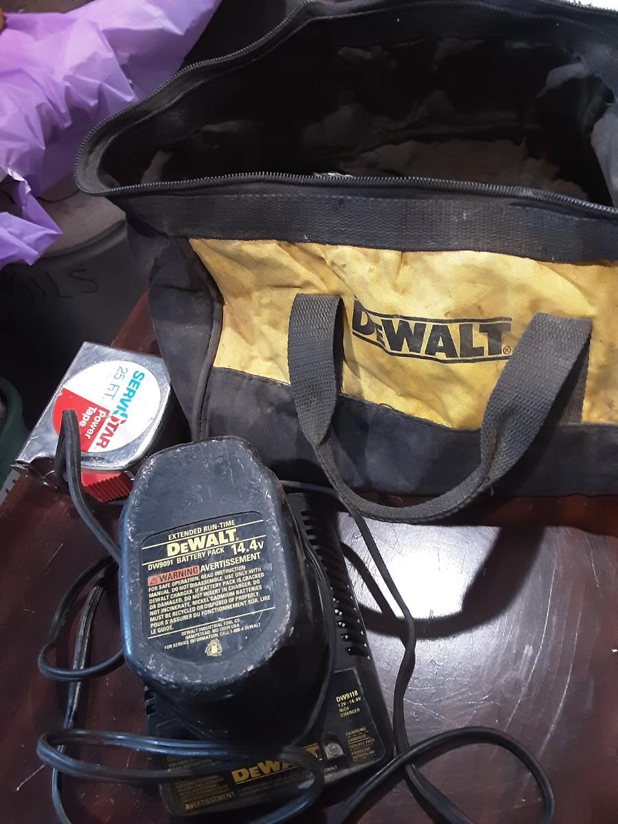 lot 140 -SDewalt battery and charger,  saw blades in toolbag as shown