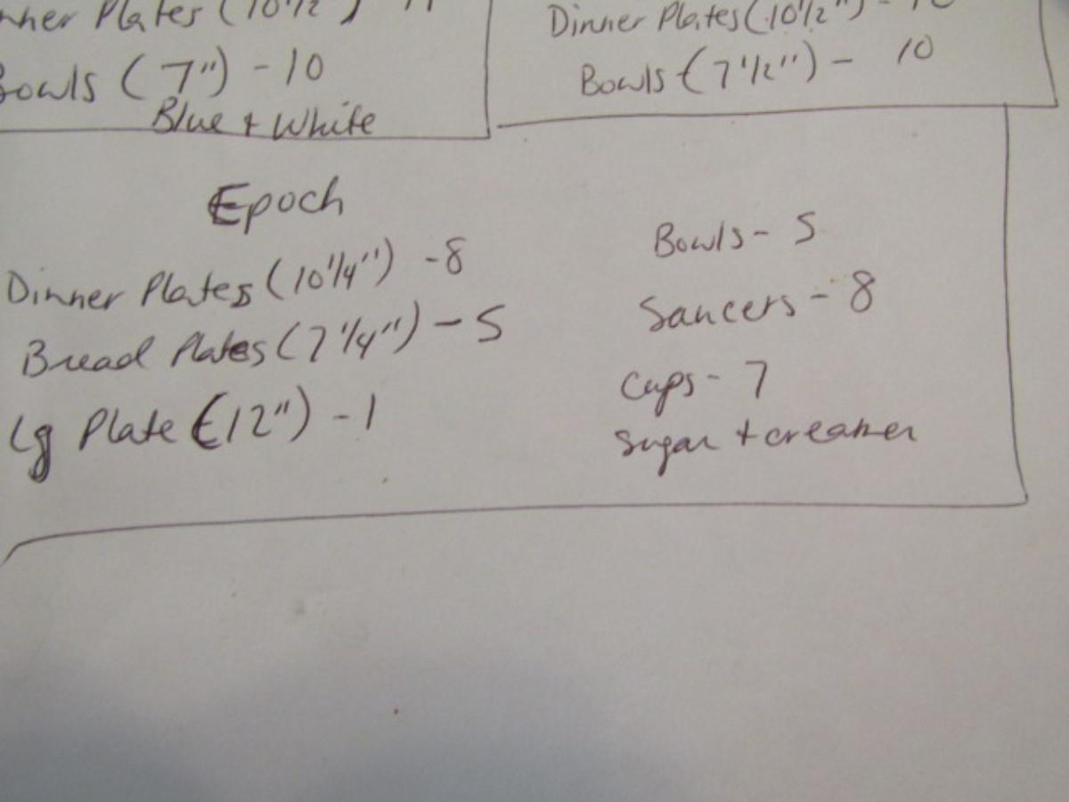 Assorted Dinnerware by Epoch- Approx 36 Pieces