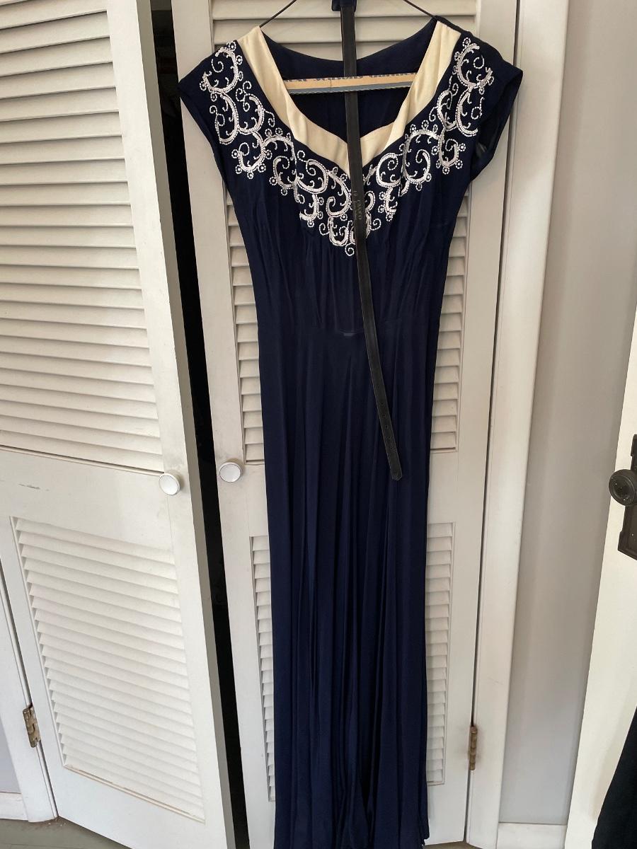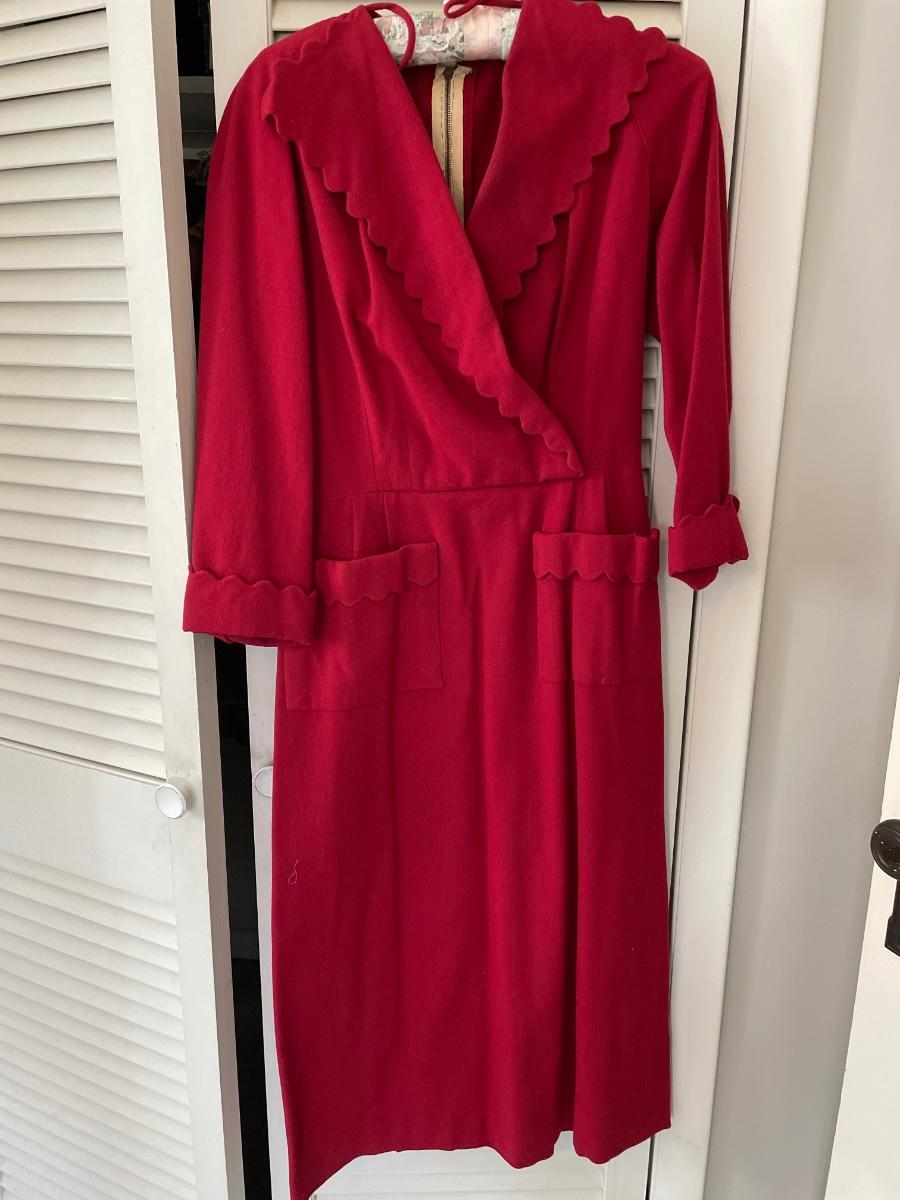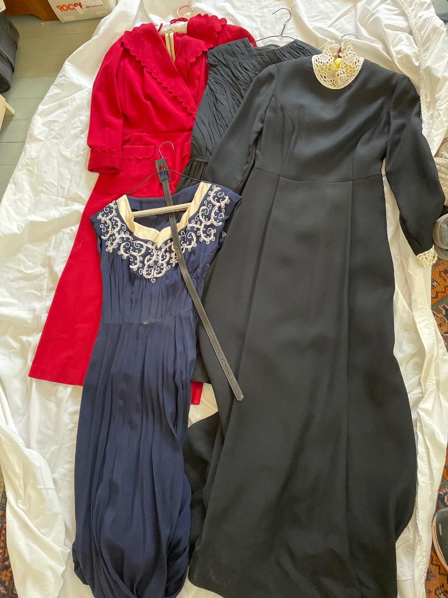 Assorted selection of four dresses. Includes handmade and a black dressy Ann Fogerty. Unsized.