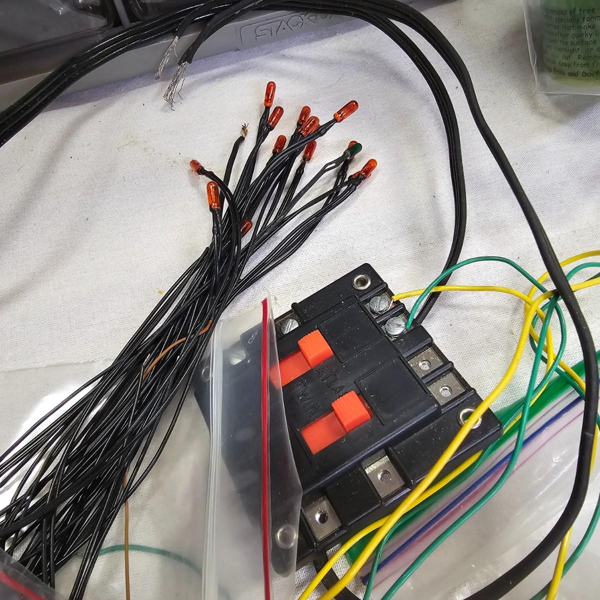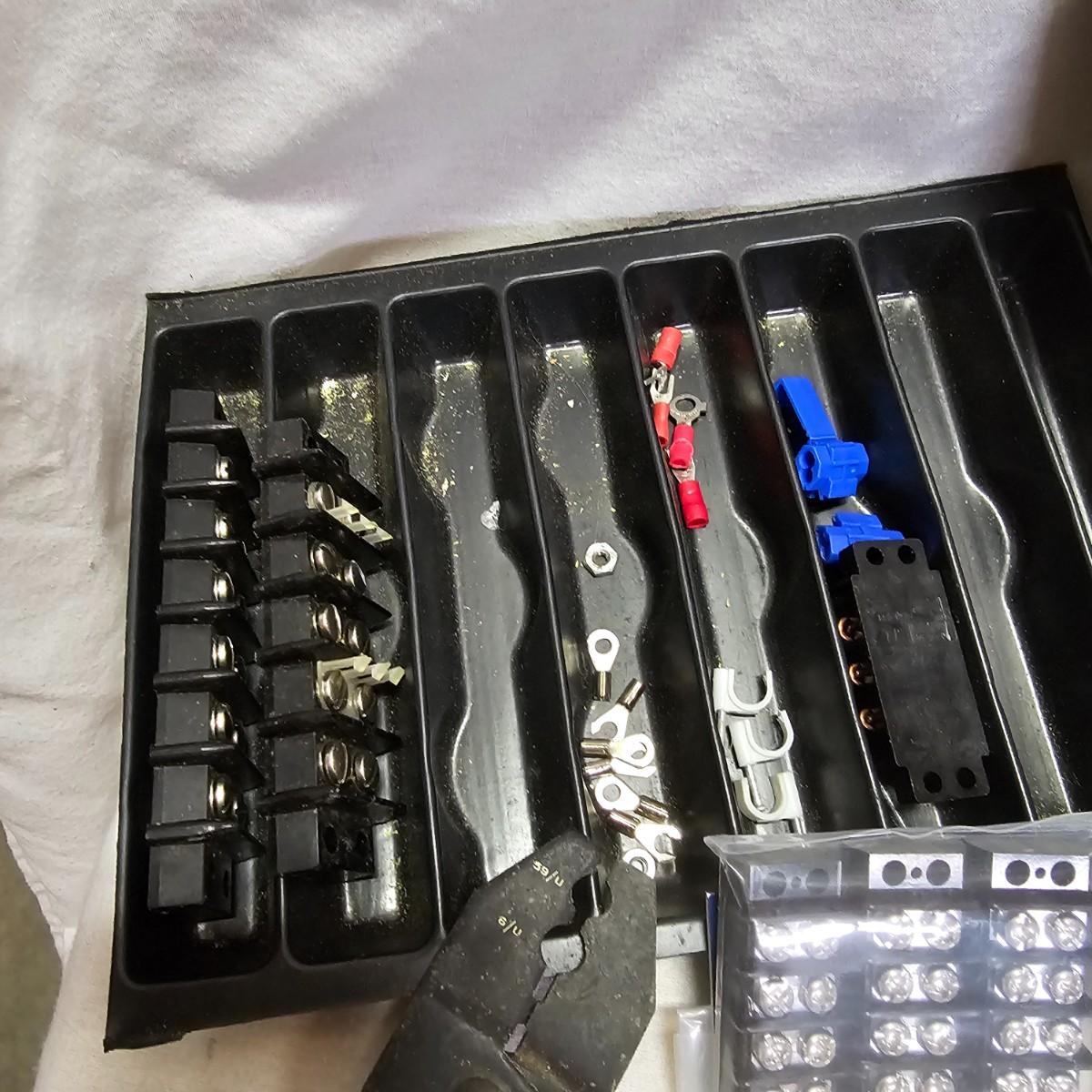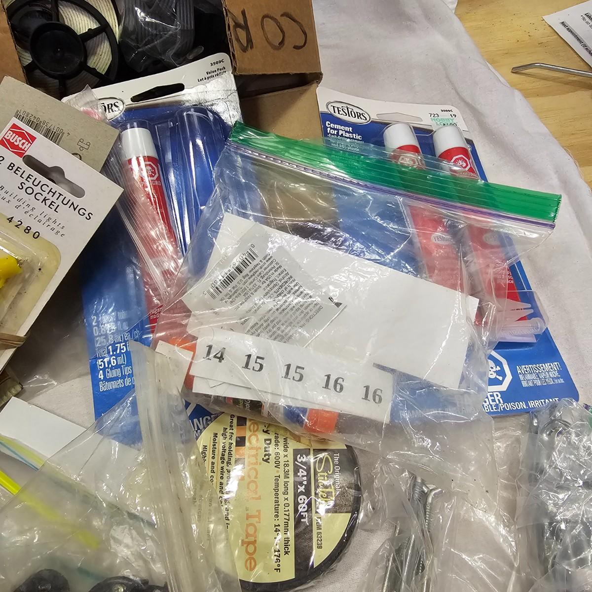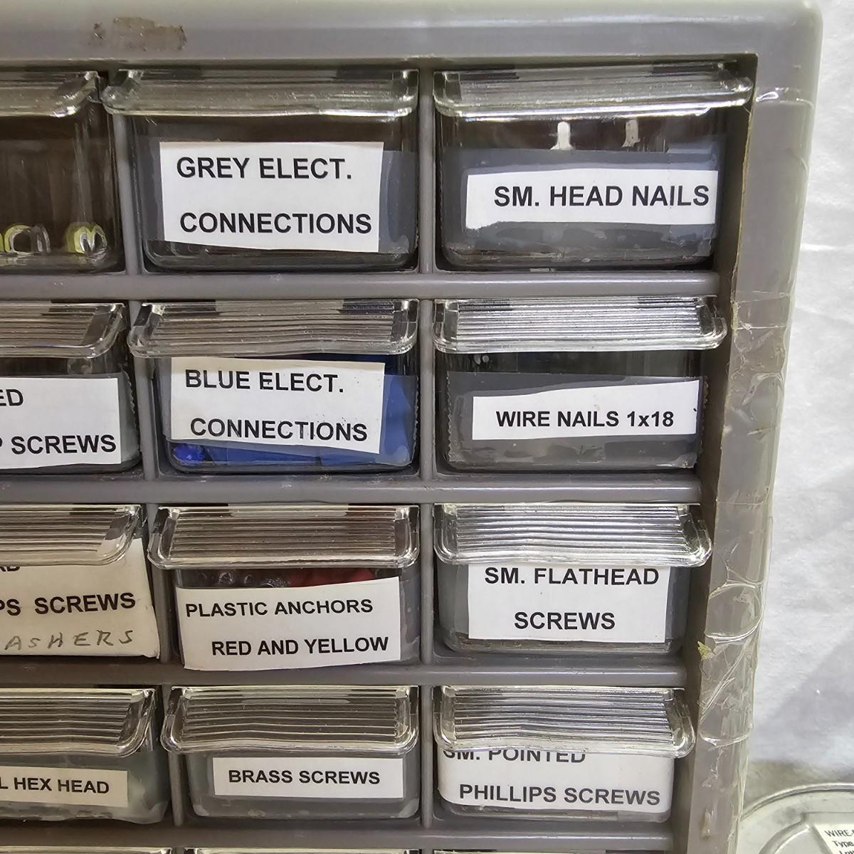 A little bit of everything. Screws, terminal strips, spools of wire, connectors, mini bulbs and more. Two boxes full and a set of pull out drawers that has screws, pins, nails, etc. Drawer units measures 15" x 6.5" x 18"H. See photos for details. Local pickup only. Please note that any price tag seen on an item was not put there by Sterling Transitions and does not reflect the current value of the item.