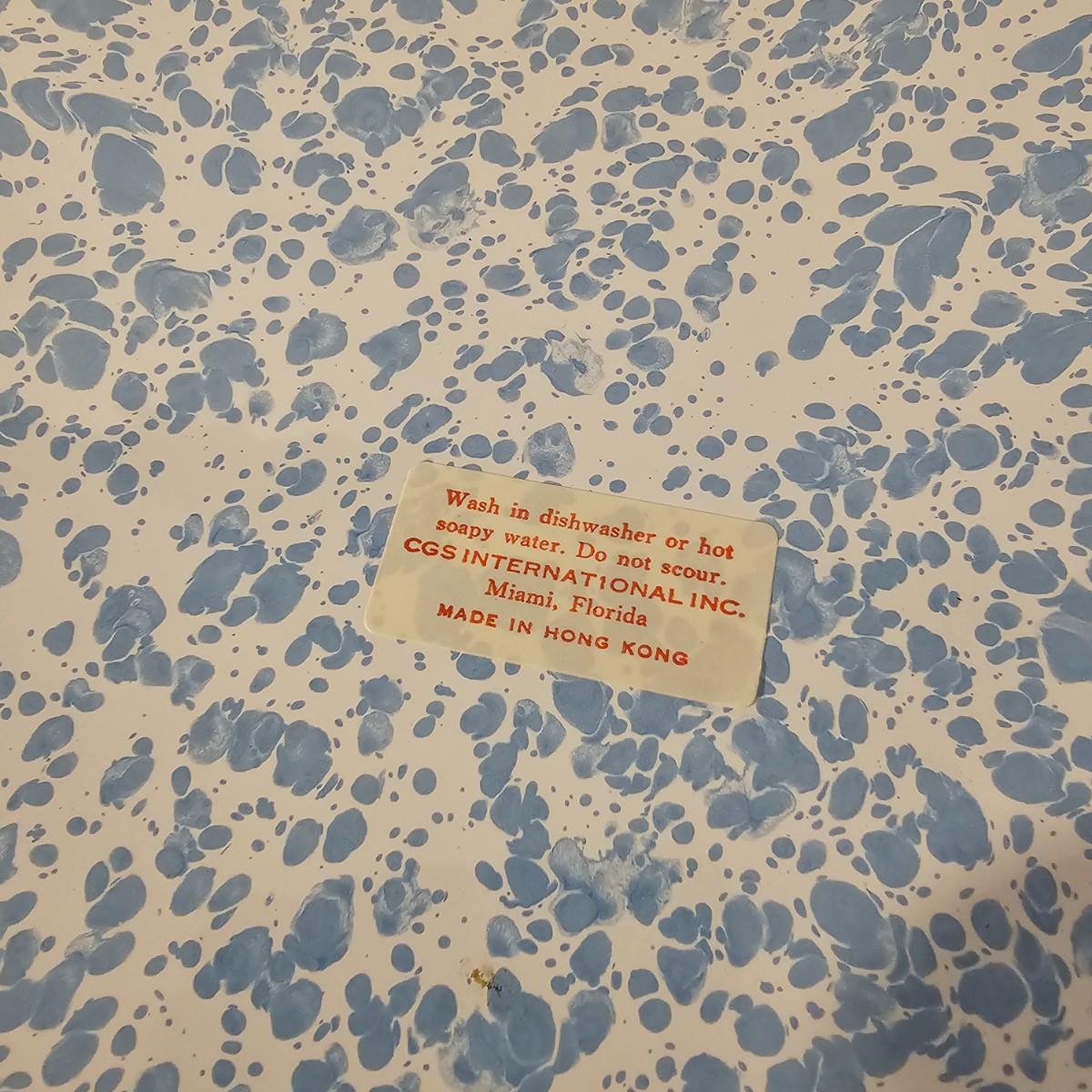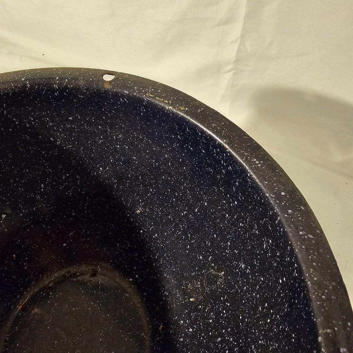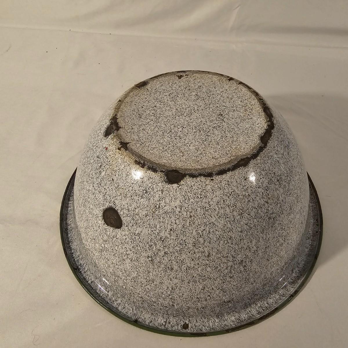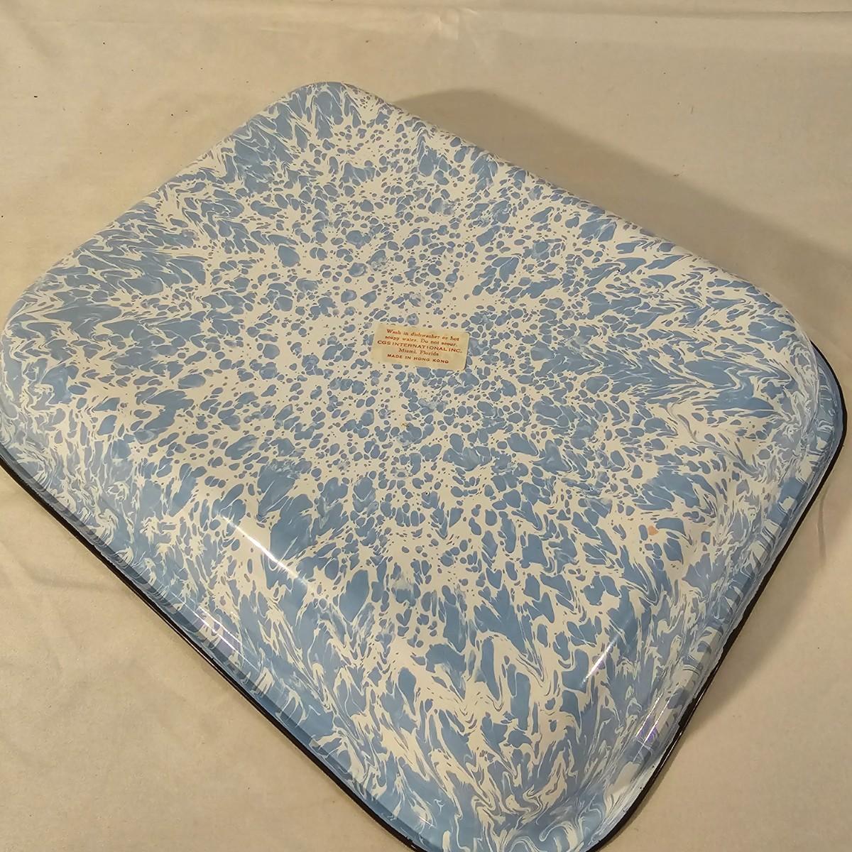 Various sizes of enameled steel ware for mixing, serving, and more. Large round brown bowl is 16"D x 5"H, blue one is 14.5"D x 4"H. Long blue rectangle pan is 16.5" x 10" x 2.5"H. Some used and some new items. See photos for details. Shipping available.