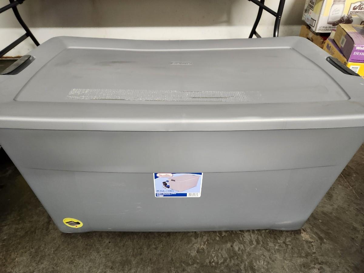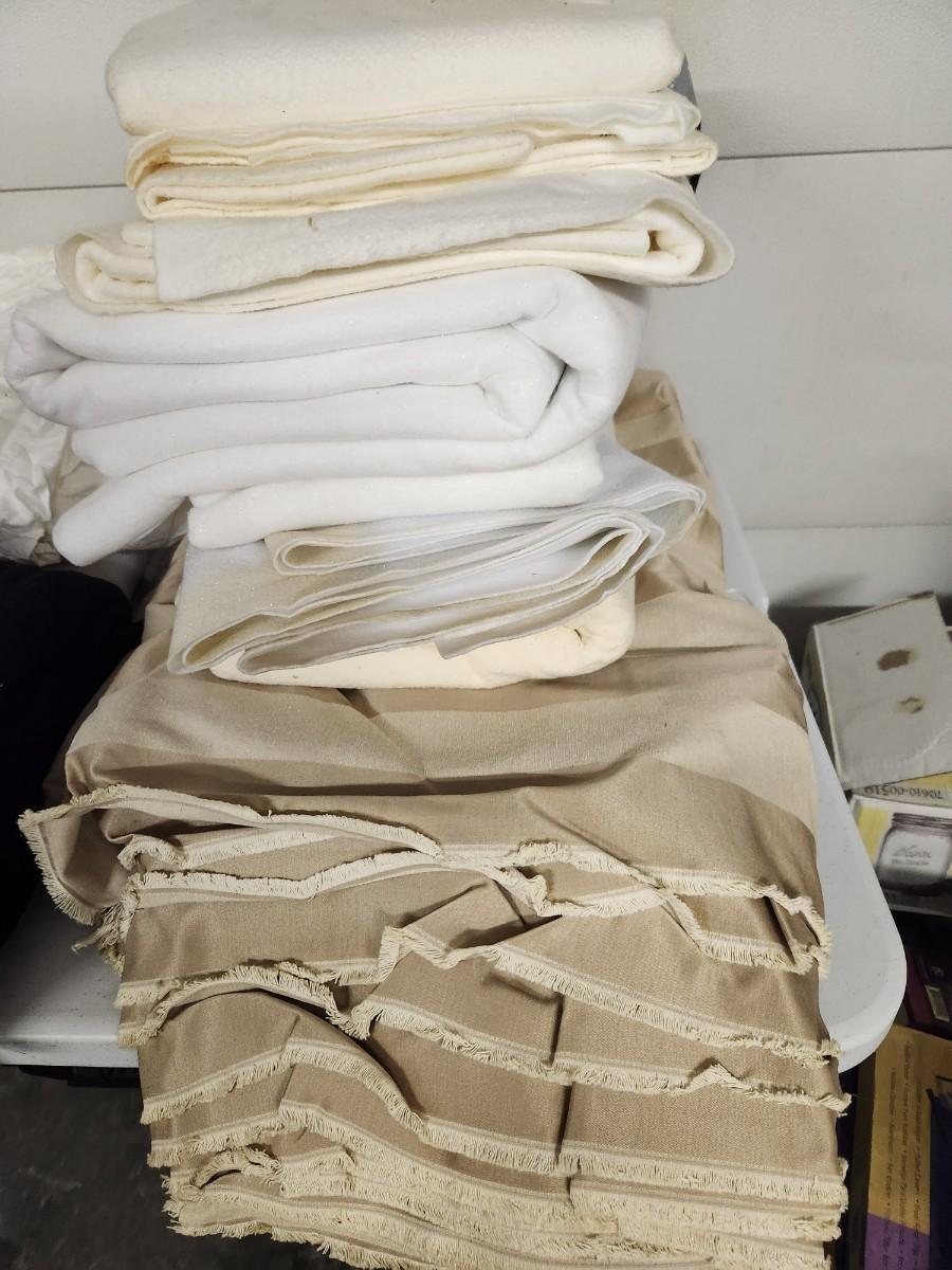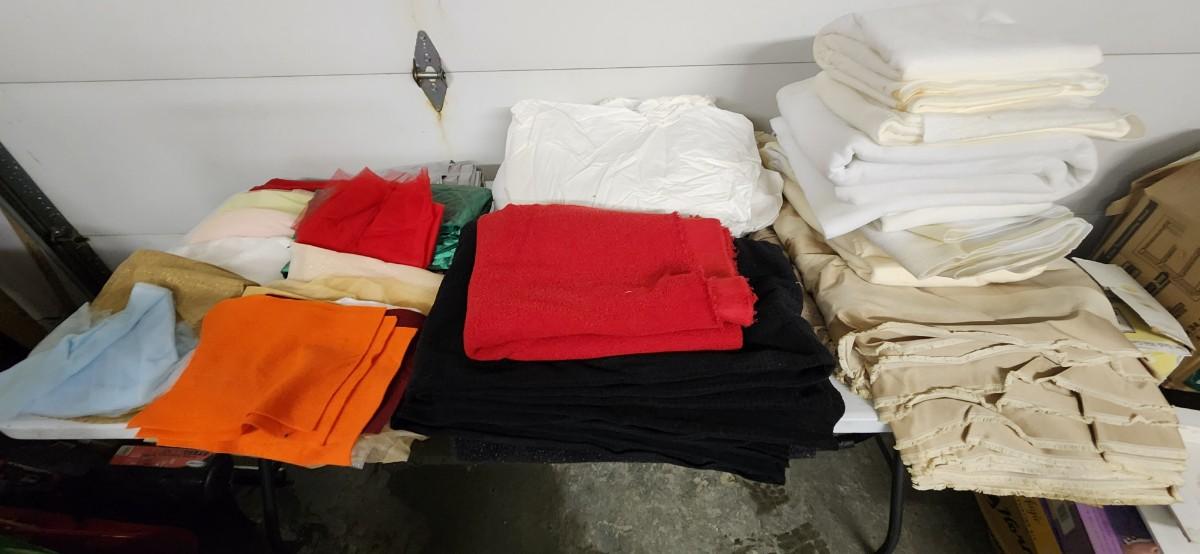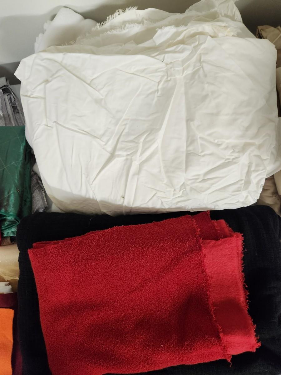 Various fabrics of different materials and sterilte container with wheels.