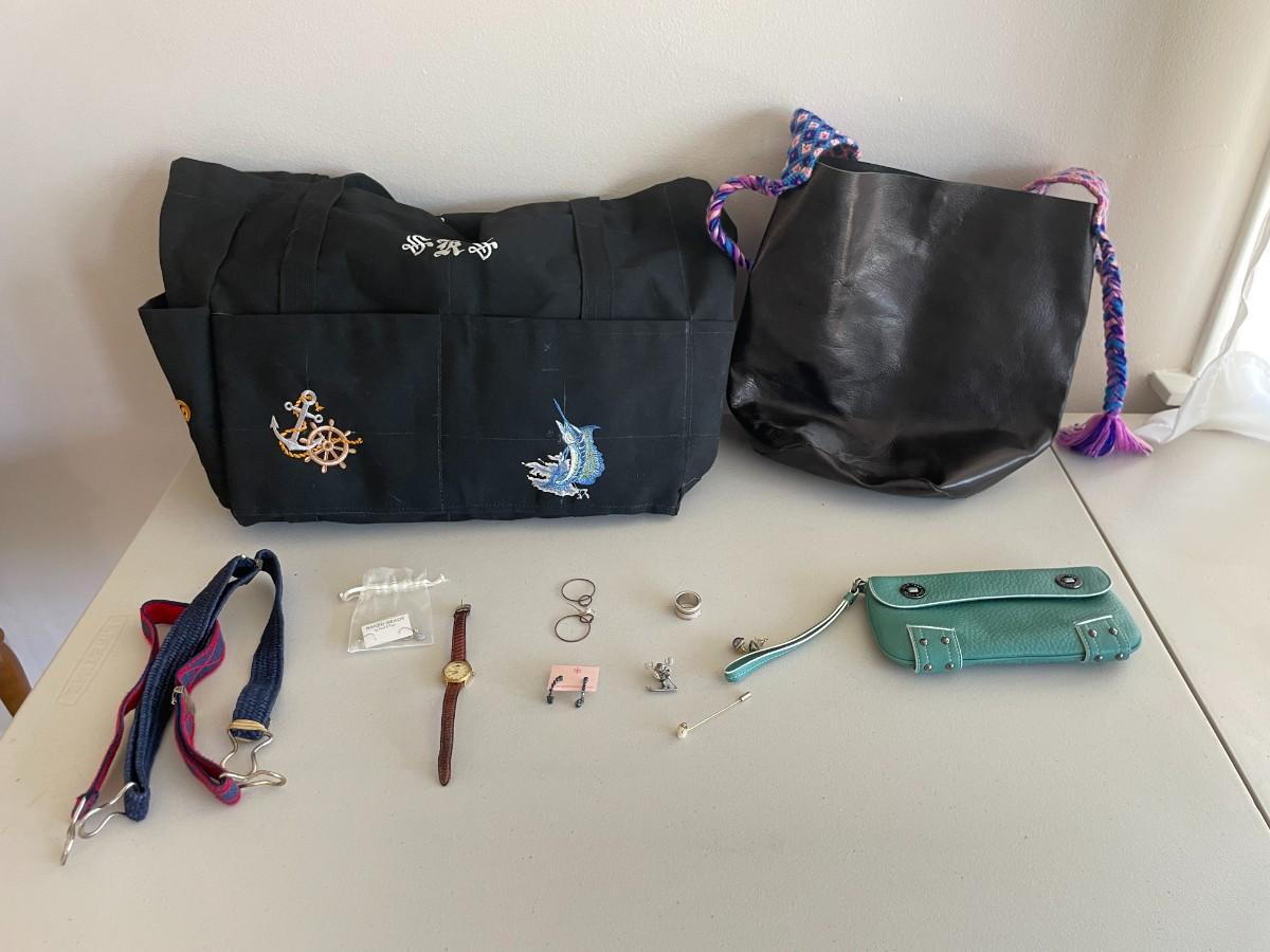 Large tote bags, small clutch, jewelry etc.
