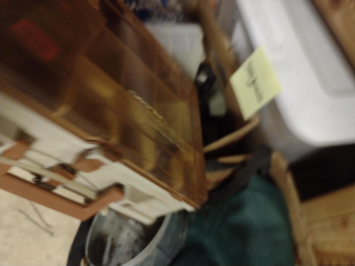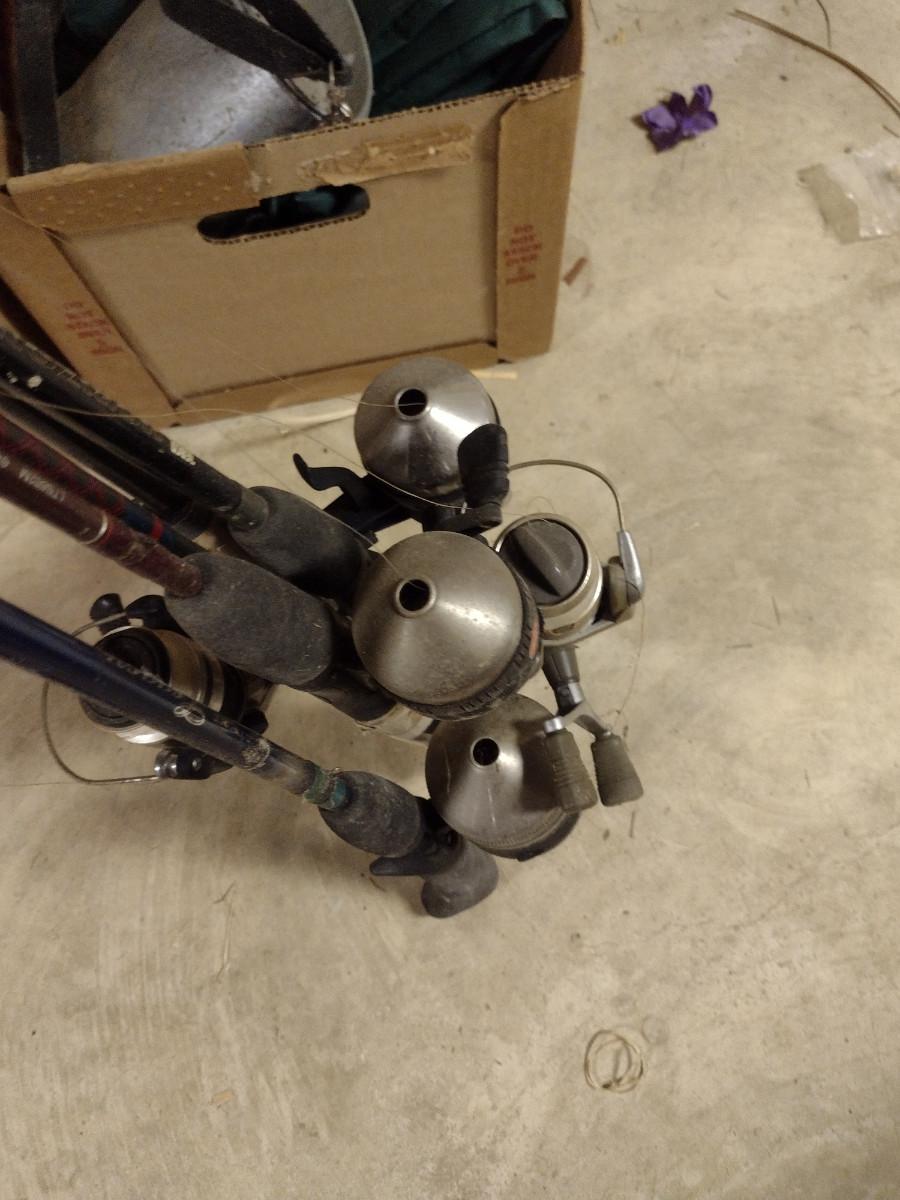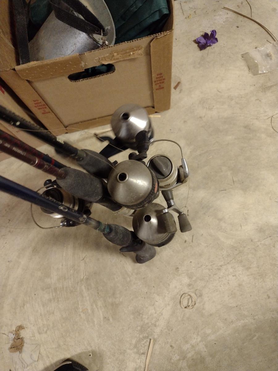 Assorted Fishing Accessories- Poles with Reels, Minnow Bucket, Tackle Boxes (D)