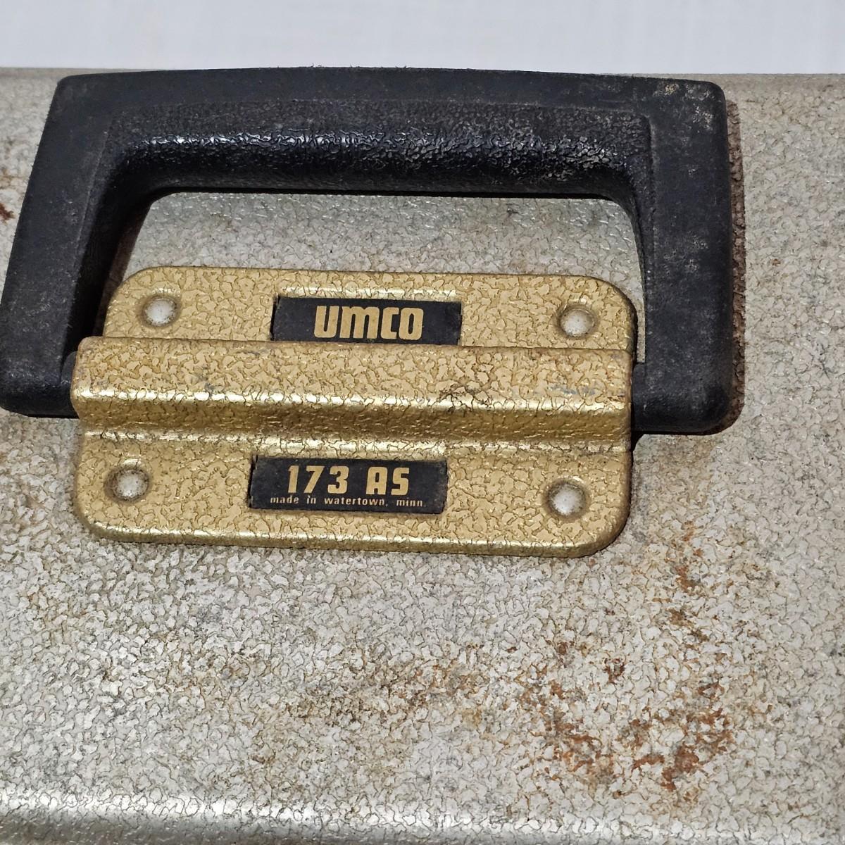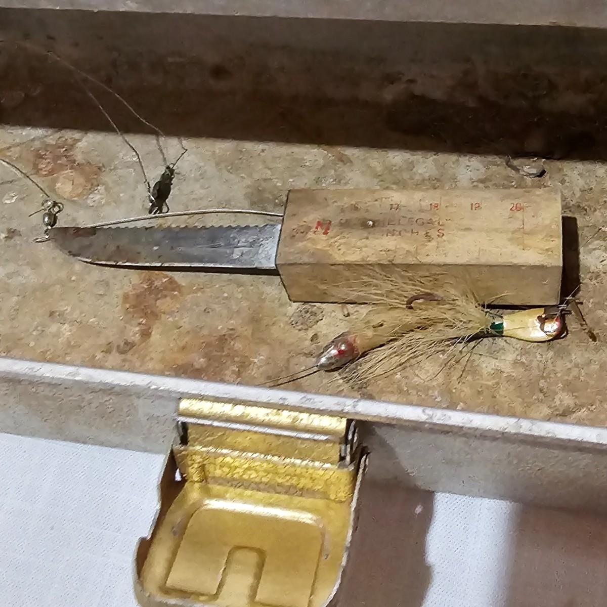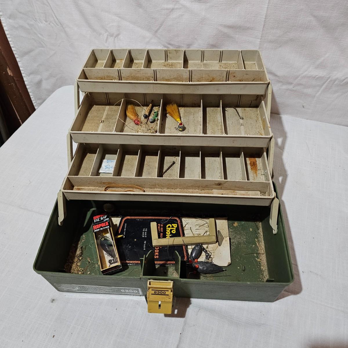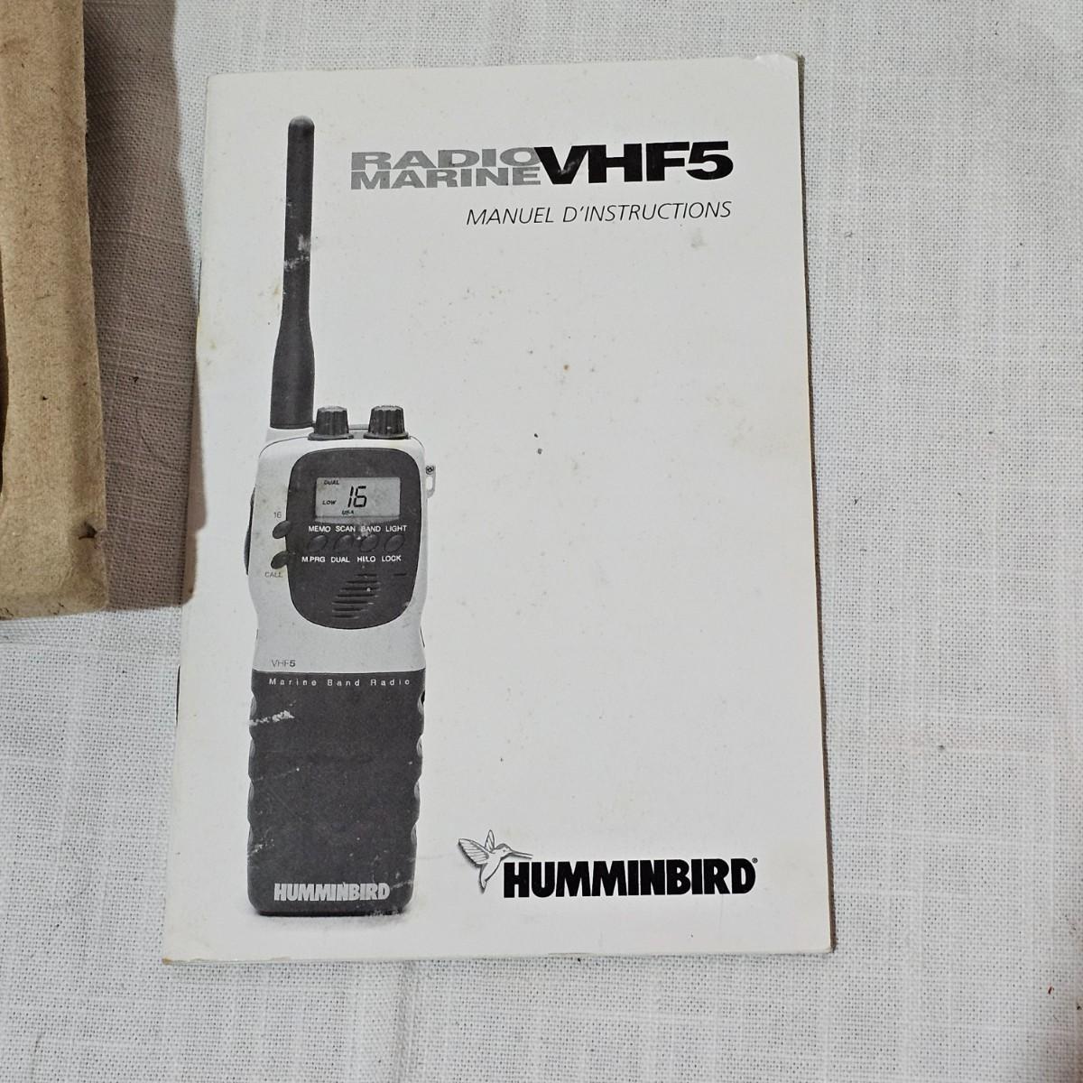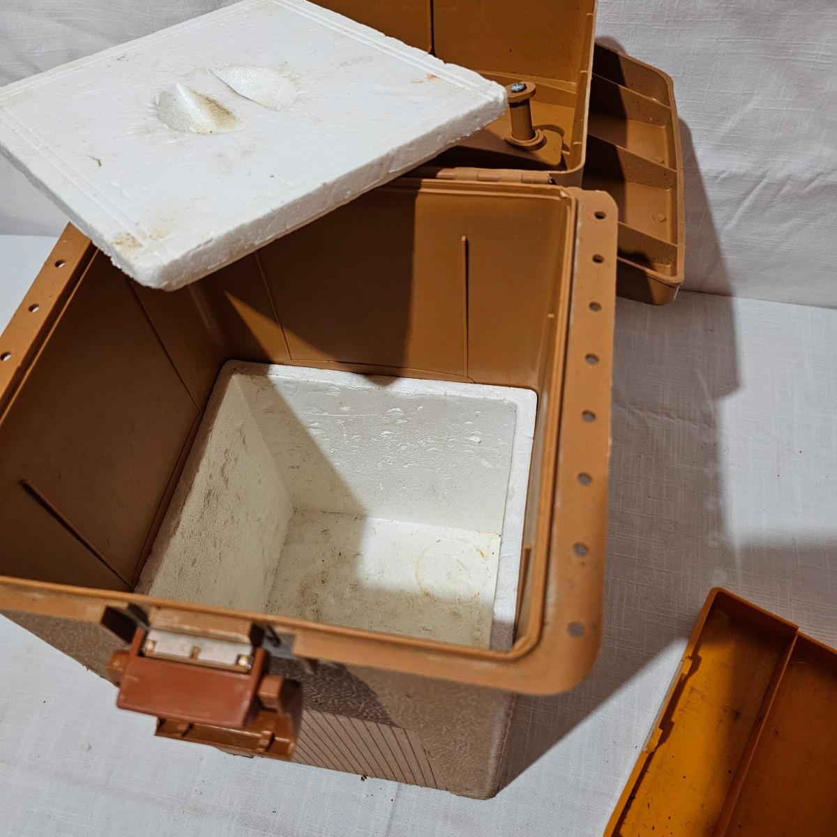 Two rods, two tackle boxes and more in this lot. One Garcia Conolon 6.5' rod with Mitchell Garcia 301A open face reel. One Okuma 6.5' lightweight rod. May be missing one ferrule. Two tackle boxes, one Plano and one Umco with a few assorted vintage lures and plugs. Plano box measures 15" x 7" x 8"H. Two filet knives, one 6" and one 7". Small box of fly fishing lures, assorted. A Fenwick Sport Seat with handle, two inner trays and a small coolong area. 12" x 8" x 15"H. One Humminbird VHF5 marine radio in original box. Unit powered on when charged and turned on. See photos for details. Local pickup only.