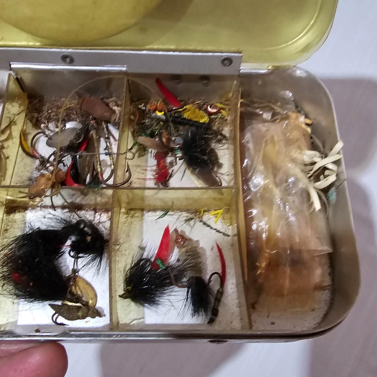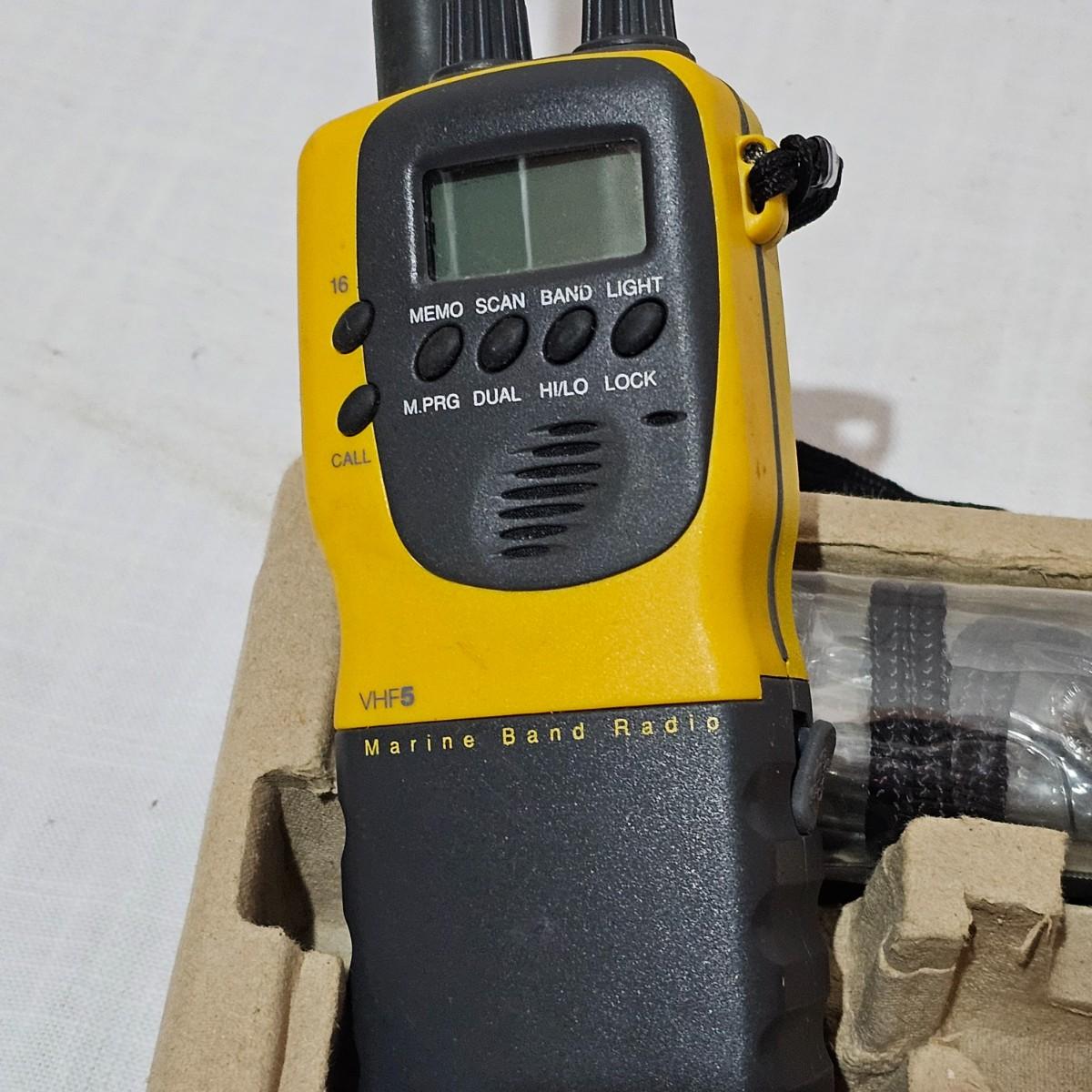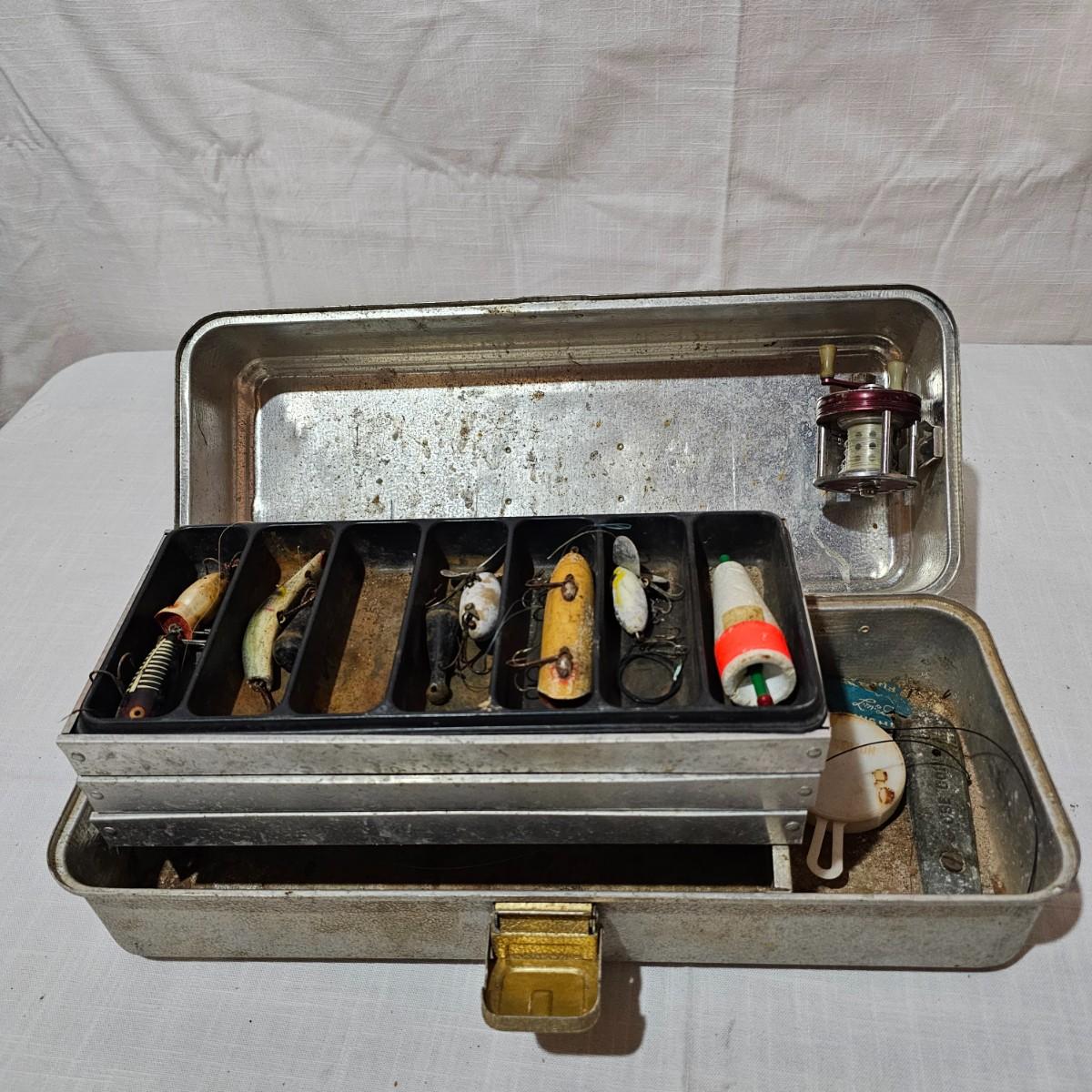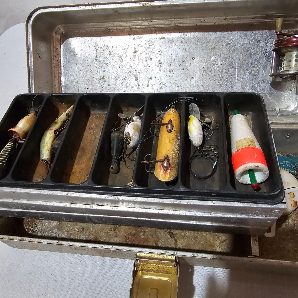Two rods, two tackle boxes and more in this lot. One Garcia Conolon 6.5' rod with Mitchell Garcia 301A open face reel. One Okuma 6.5' lightweight rod. May be missing one ferrule. Two tackle boxes, one Plano and one Umco with a few assorted vintage lures and plugs. Plano box measures 15" x 7" x 8"H. Two filet knives, one 6" and one 7". Small box of fly fishing lures, assorted. A Fenwick Sport Seat with handle, two inner trays and a small coolong area. 12" x 8" x 15"H. One Humminbird VHF5 marine radio in original box. Unit powered on when charged and turned on. See photos for details. Local pickup only.