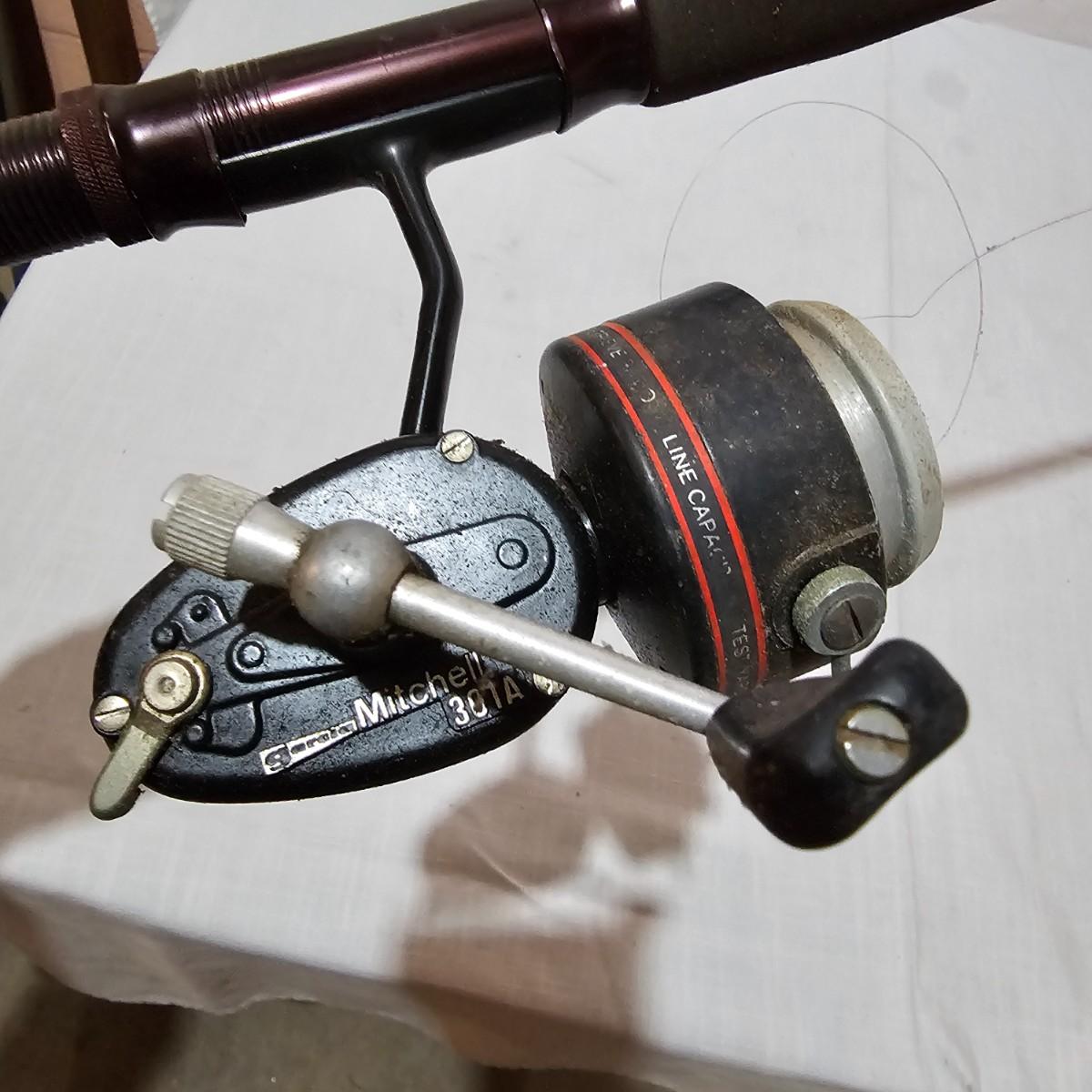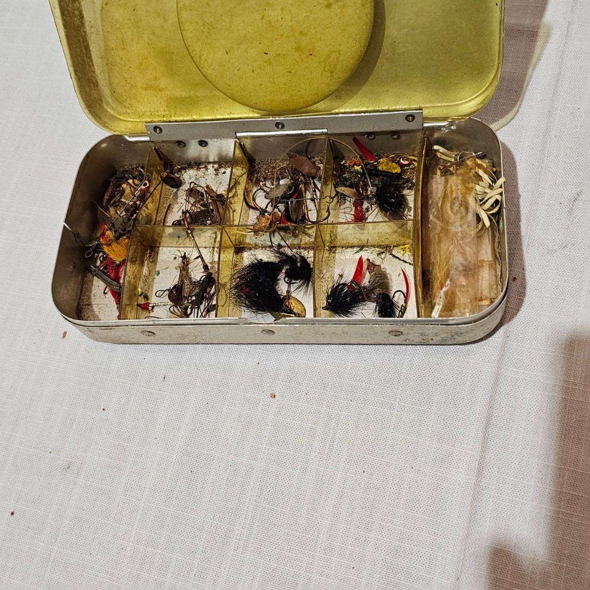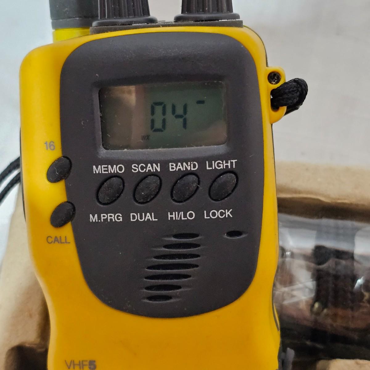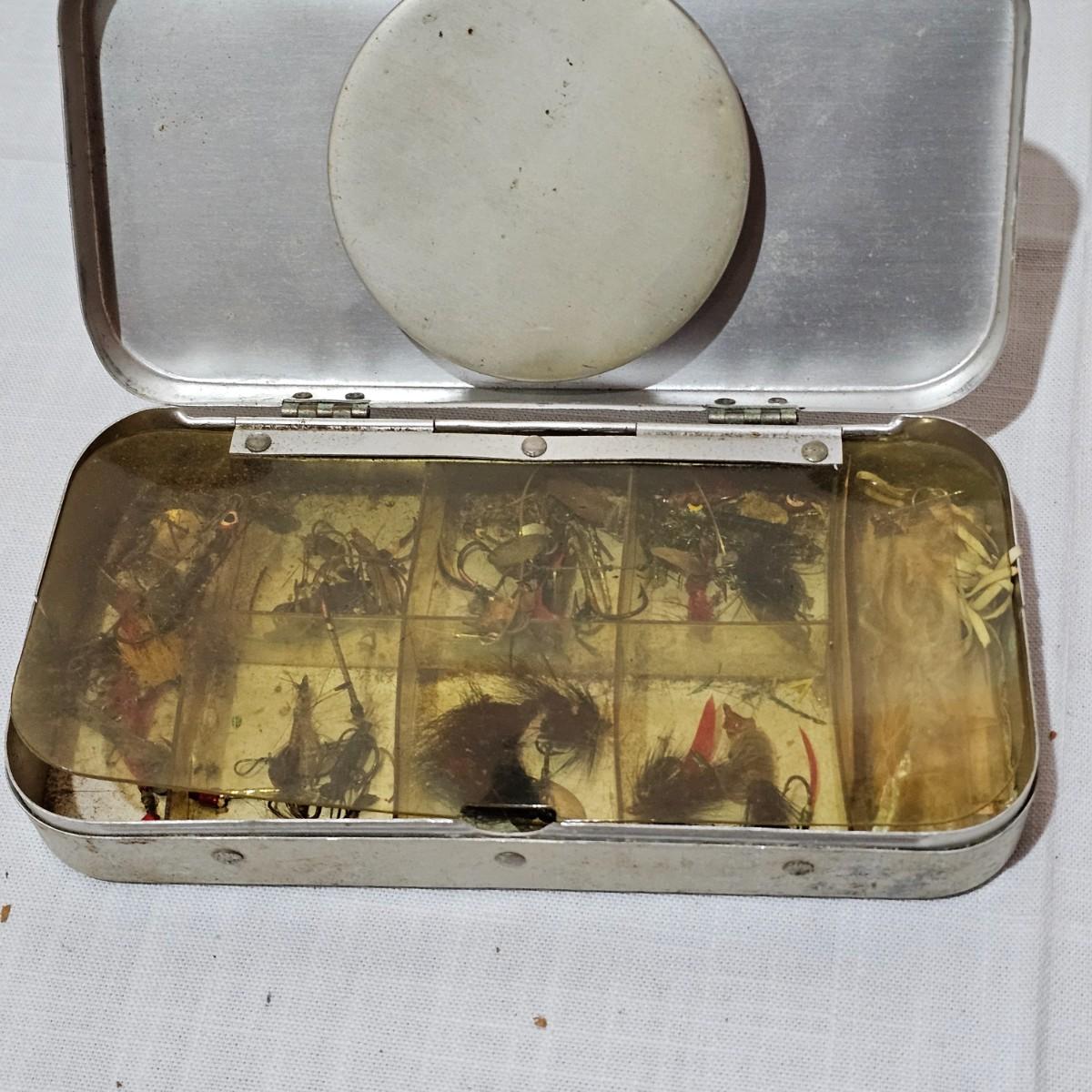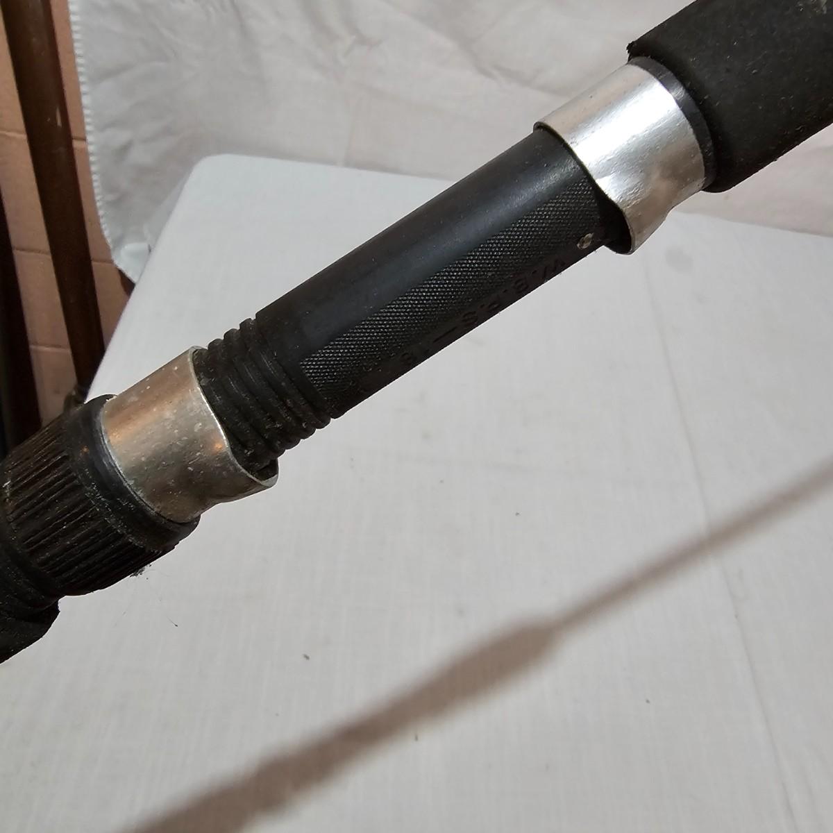 Two rods, two tackle boxes and more in this lot. One Garcia Conolon 6.5' rod with Mitchell Garcia 301A open face reel. One Okuma 6.5' lightweight rod. May be missing one ferrule. Two tackle boxes, one Plano and one Umco with a few assorted vintage lures and plugs. Plano box measures 15" x 7" x 8"H. Two filet knives, one 6" and one 7". Small box of fly fishing lures, assorted. A Fenwick Sport Seat with handle, two inner trays and a small coolong area. 12" x 8" x 15"H. One Humminbird VHF5 marine radio in original box. Unit powered on when charged and turned on. See photos for details. Local pickup only.