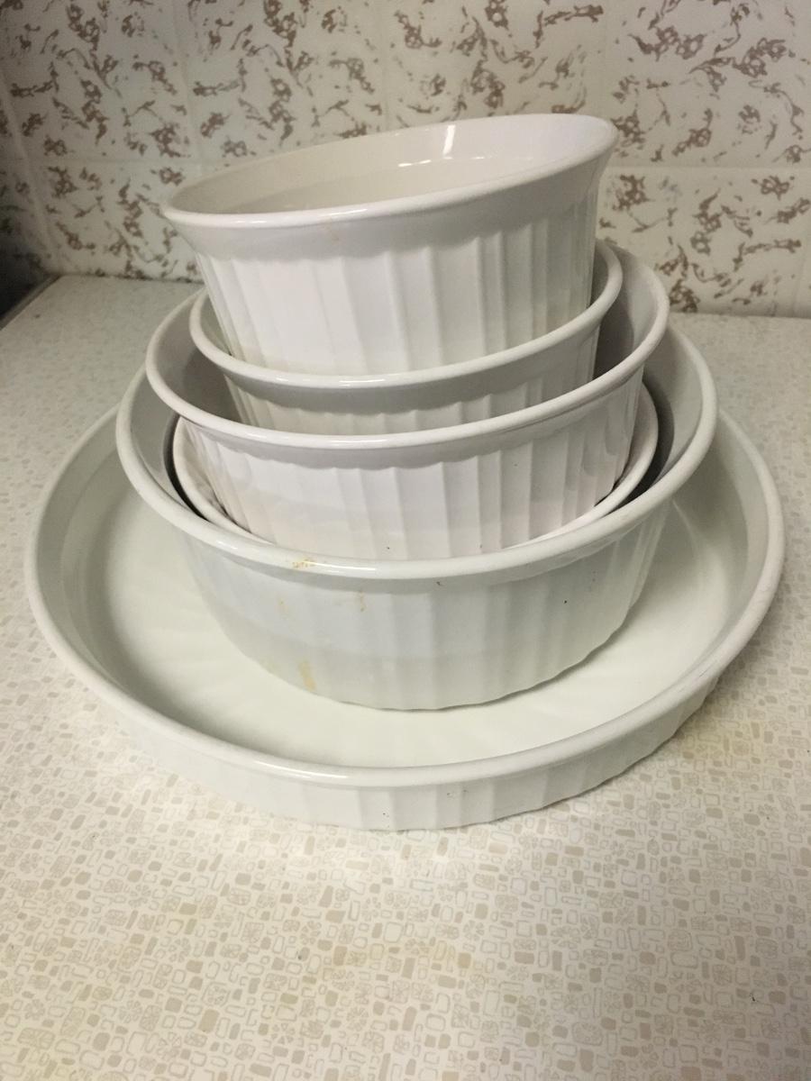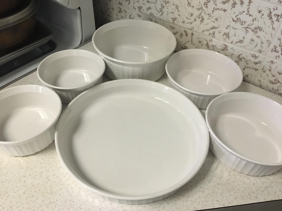 A wide selection of 6 rounds casseroles of varying sizes . Sizes are in photos.