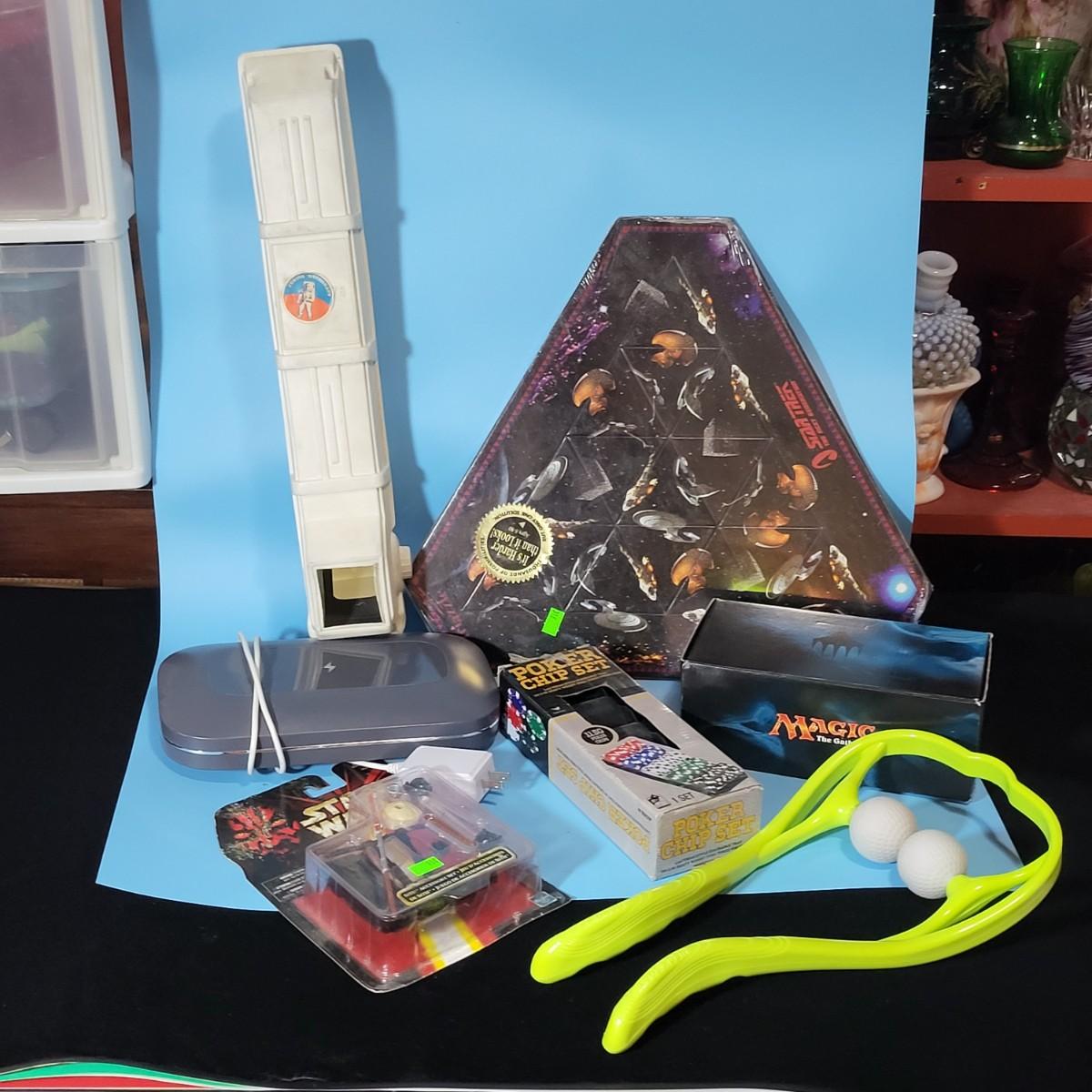 Vintage periscope, Starwars, Cellphone cleaner, Magic Cards, etc.