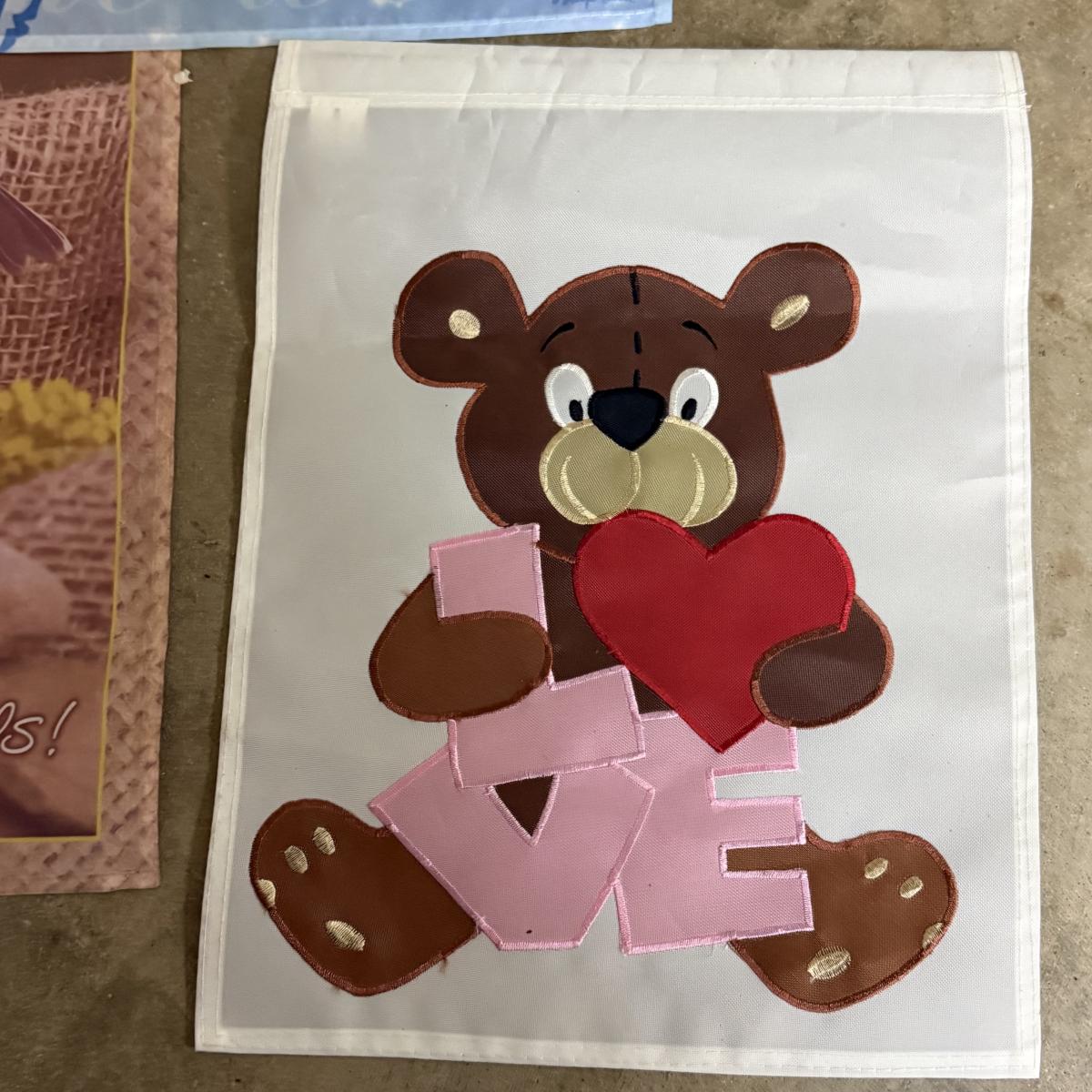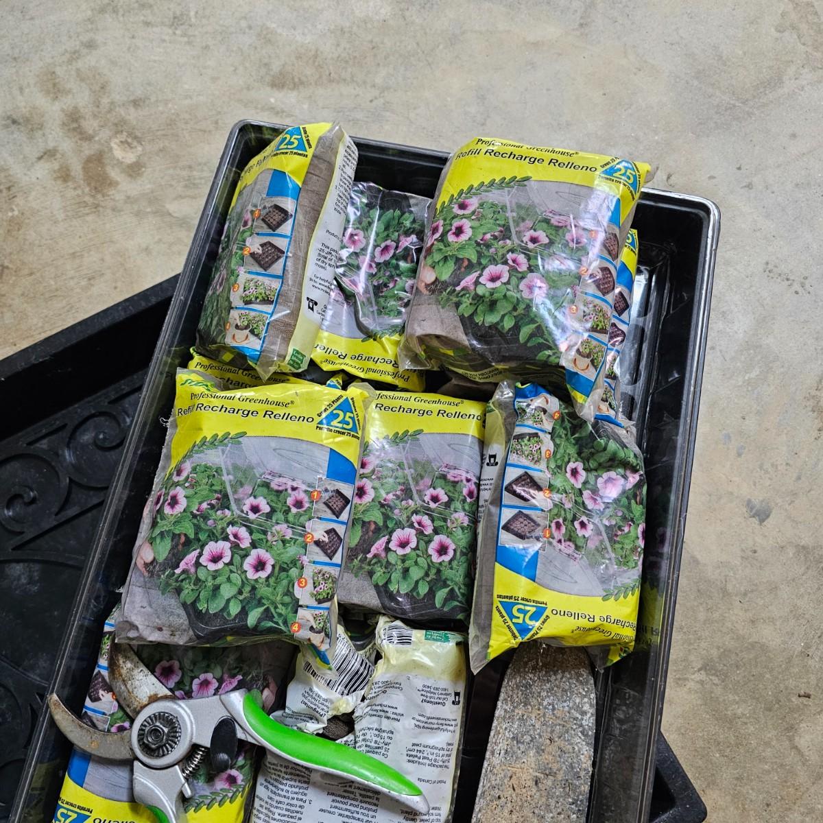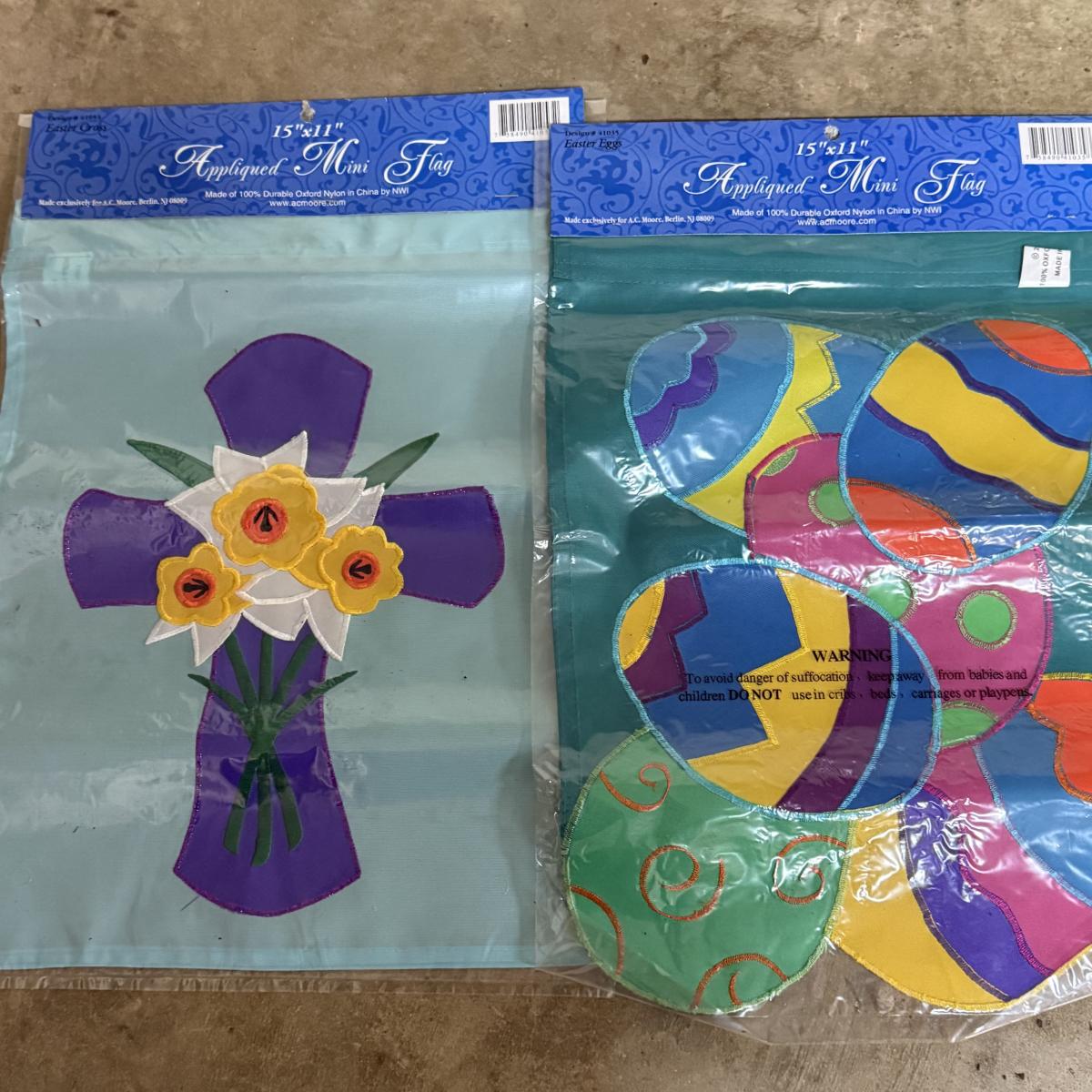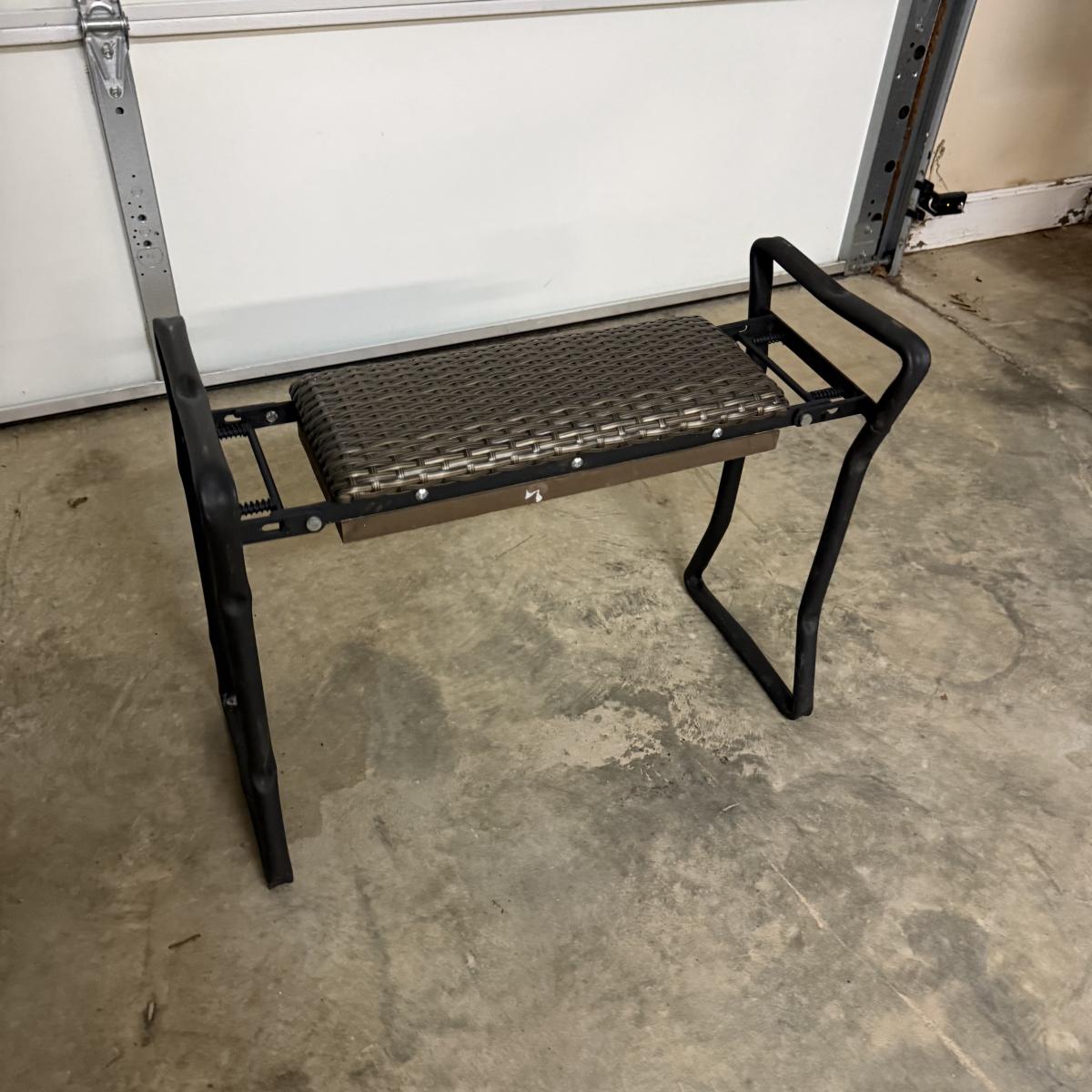 Three books regarding general gardening, local plants and more. Multiple plastic trays, two tomato cages, hand trowels, other tools. A Manor boot tray with wrought iron design. Two 42" flag or banner stakes and flags. Glass bird on stake, 29" H. Foldable kneeling bench/seat, 24" x 10" x 20"H. See photos for details. Local pickup only.