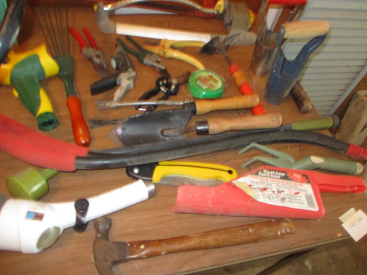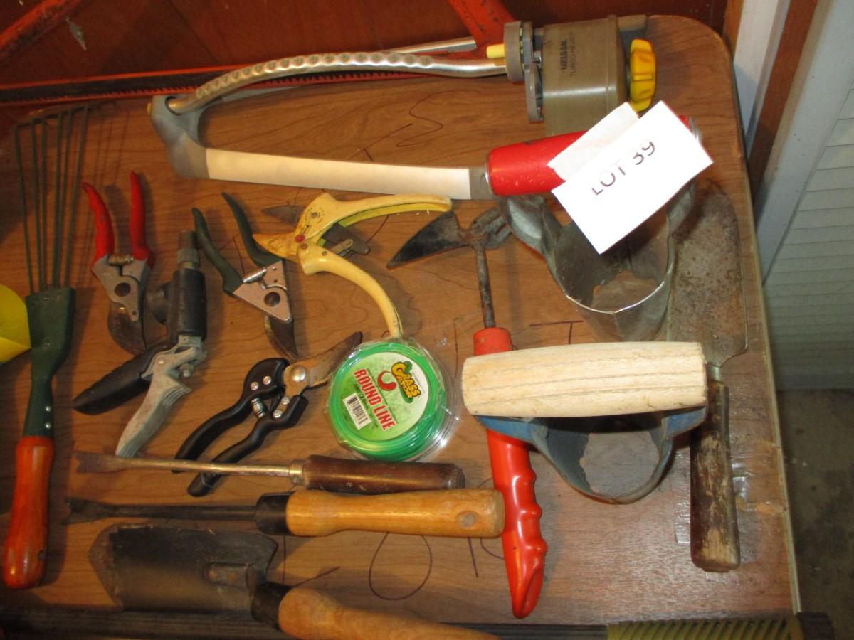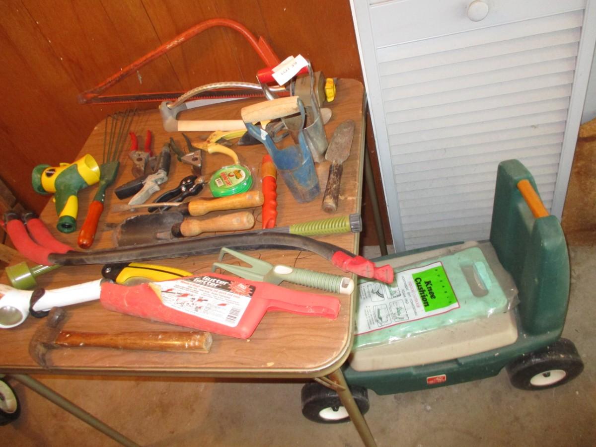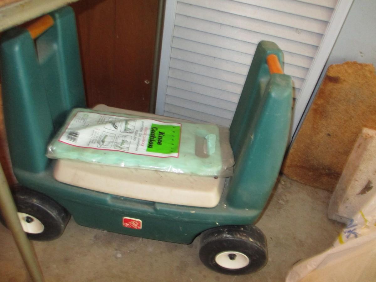 Garden Seat/Storage on wheels, Garden tools, hammer