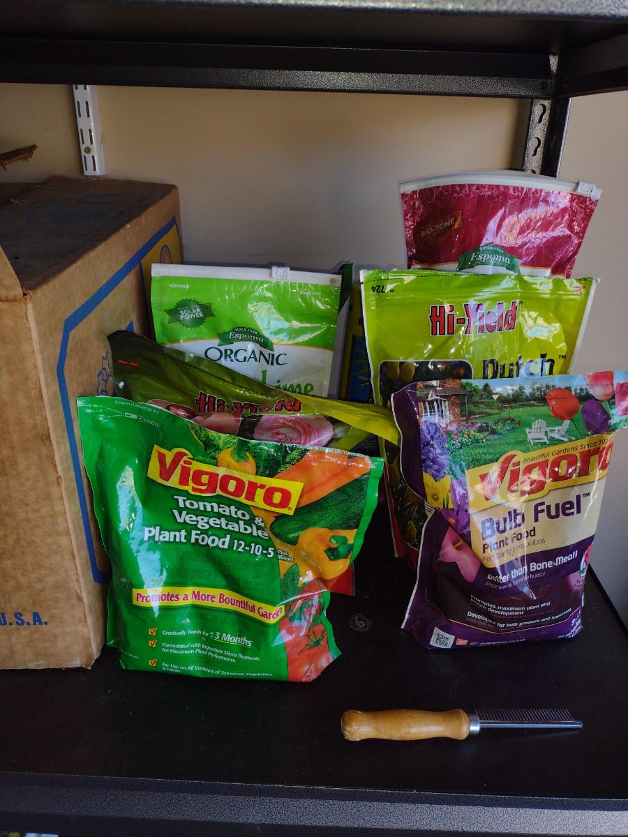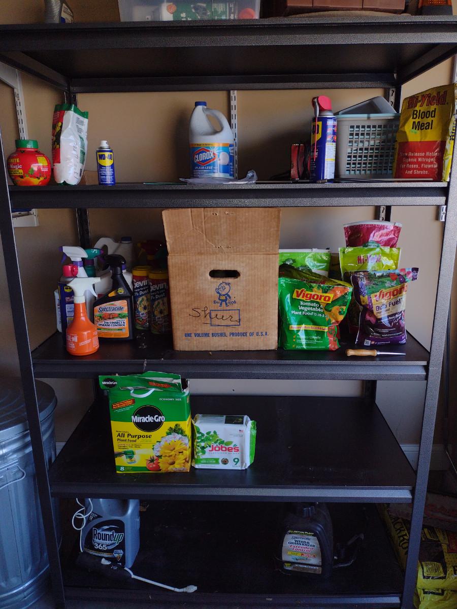 Assorted Gardening Solutions- Fertilizer, Weed Control, etc. Shelf not included.